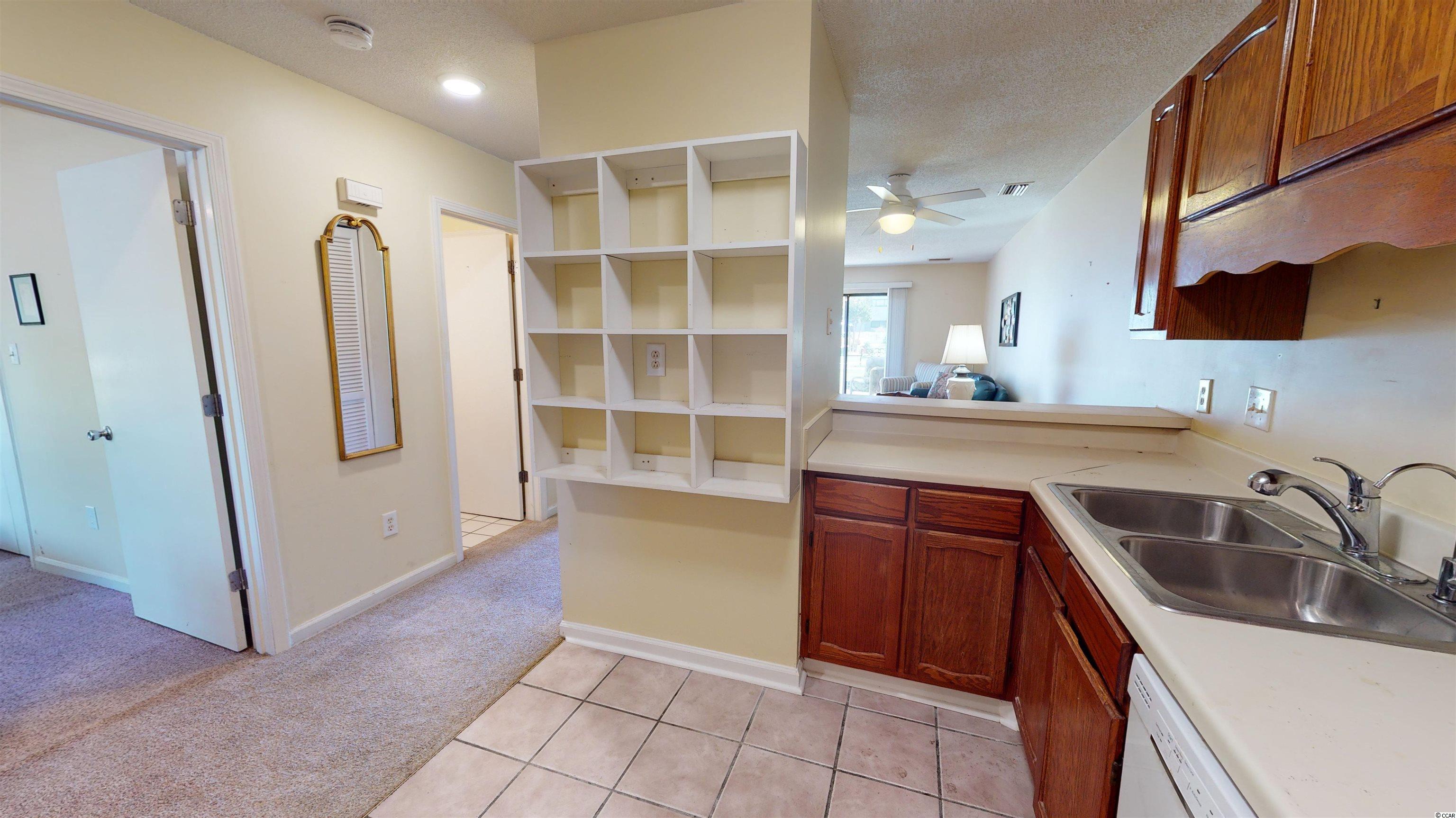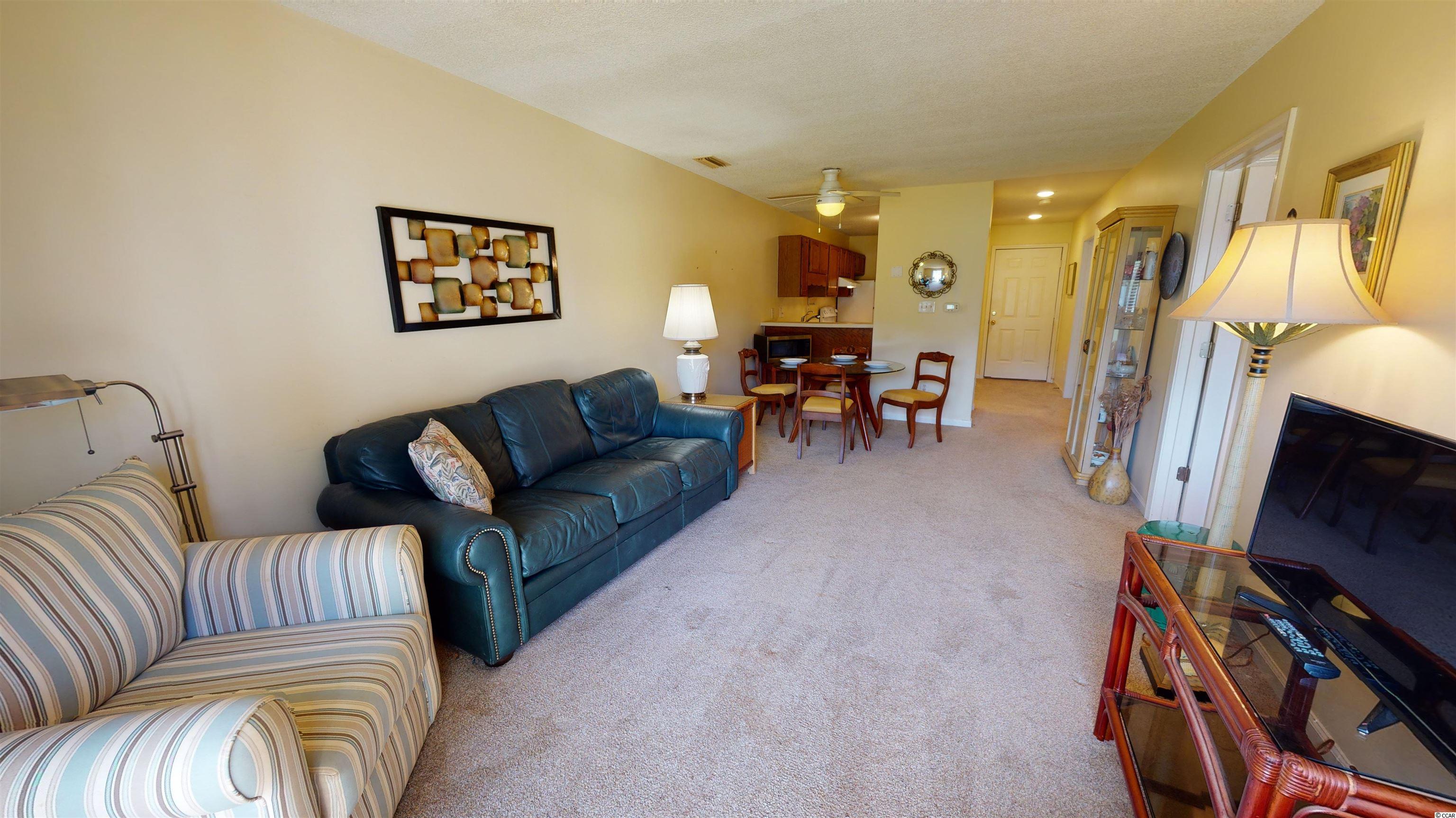 Presenting this vibrant 1st floor, 2 bedroom 2 bath condo located within walking distance to the white sandy beach. This stylish condo features carpet & tile flooring, a classic living/dining room combo that showcases a sliding glass door that opens up to the relaxing patio. The kitchen is equipped with a range, dishwasher, along with ample counter & cabinet spaces. The peaceful master suite offers a double bi-fold door closet, private access to the master bath that includes a single vanity sink, comfort station, and a timeless tub/shower combo. This delightful condo is finished with another bedroom and a full guest bath. This condo affords you easy access to the beach and golfing along with all of the other activities and happenings in Myrtle Beach including fun eateries, award winning off-Broadway shows, public fishing piers, and intriguing shopping adventures along the GrandStrand. Conveniently located to your everyday needs, including grocery stores, banks, post offices, medical centers, doctors offices, and pharmacies. Check out our state of the art 3-D Virtual Tour.