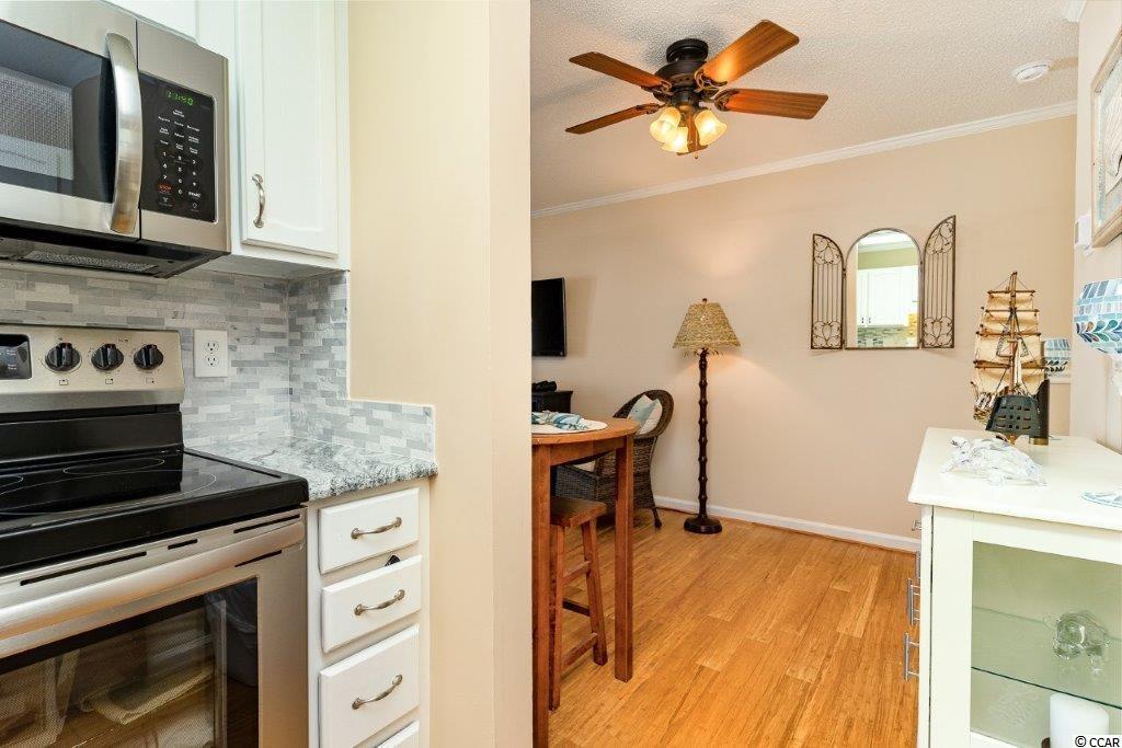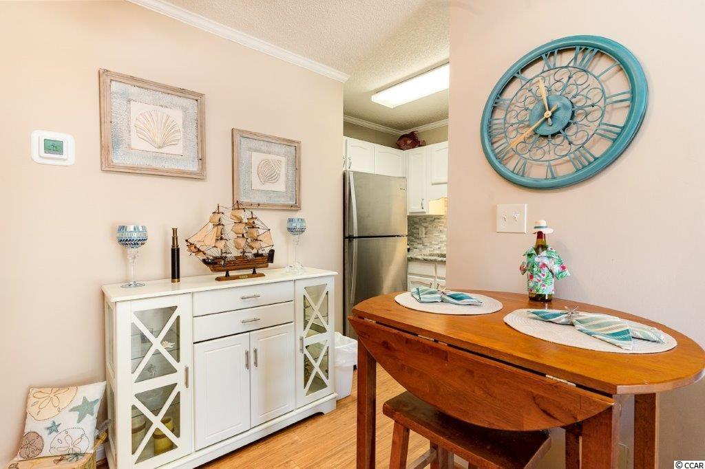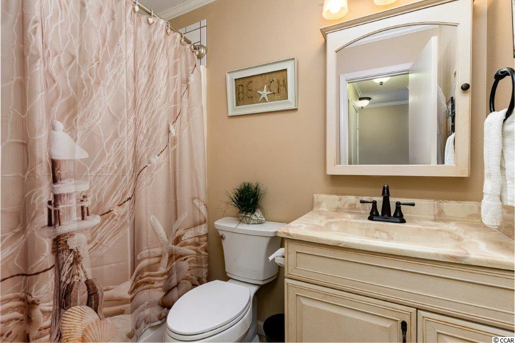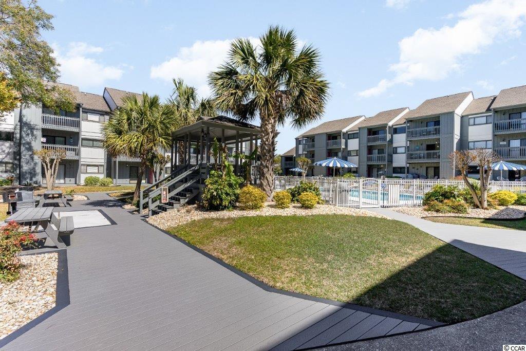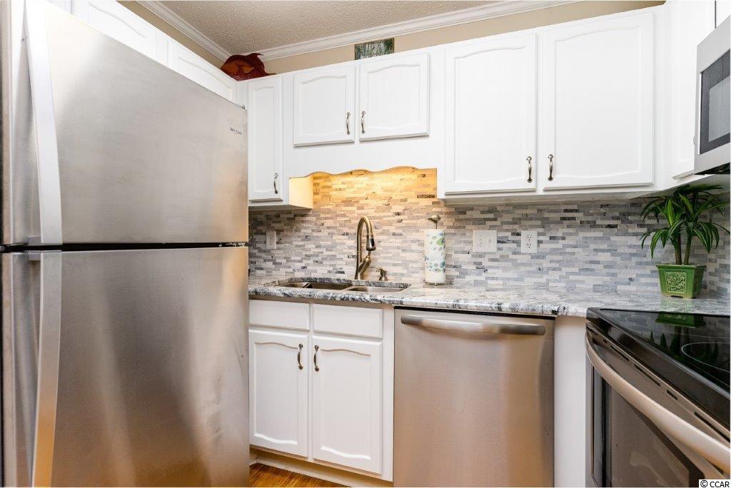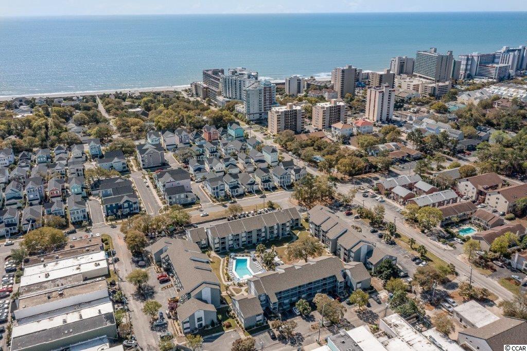 Newly fully renovated , 1.5 blocks to the beach and in the best area of Myrtle Beach! Walk to Publix, Food Lion, fine dining and many shopping options. The unit is essentially a brand new unit with complete redo in last 2.5 years with great attention to detail -Everything is new- Heat pump, all appliances, fireplace , water heater, bathroom and kitchen redone as well. New staggered height cabinets in kitchen with hidden hinges, soft close doors and stainless handles to match new stainless range, dishwasher, microwave and refrigerator. New high rise Delta kitchen faucet with new stainless deep double bowl sink. New granite countertops with glass backsplash. Ultra-High end SONY BRAVIA XBR TV in LR along with high end Insulated, black out curtains. New furniture in living room and new bedding and curtains in bedroom. Just about everything is new including the toilet and balcony bar height chairs. New paint throughout with new crown and shoe molding. This unit is absolutely turn key and you will notice the difference and attention to detail when you see it . Units at Watermark are much coveted because of their prime location and low HOA dues. There are only nine of these 750 SF 1 bedroom unit at Watermark. They have larger living rooms than the 2 and 3 bedroom units and thus have larger balconies. Never rented and only used sparingly by current owner. Mostly furnished -all window treatments and full size washer and dryer convey. Some wall art and some dcor will not convey. Owner allowed pets and golf carts are allowed. Large rear balcony with attached storage closet. Overlooks pool and courtyard which includes a BBQ area and gazebo.