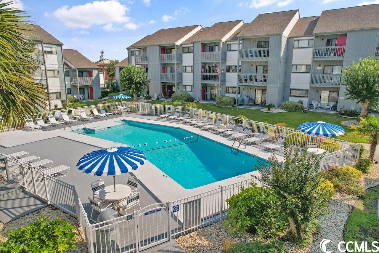 Welcome to your home at the beach! This gem is located at the northern end of Myrtle Beach on the east side of Business 17. Quick walk or golf cart ride to the beach or to shopping and dining. Conveniently positioned between Barefoot Landing and Broadway at the Beach for entertainment. Enjoy a ride to your favorite eatery on the public transit. This 1 bedroom, 1 bath condo has a beautiful balcony (with storage closet) overlooking the community pool and courtyard. You will love the new kitchen with beautiful granite countertops and ample cabinet space, new windows, washer/dryer, flooring throughout and more. This not only a great condo but a great lifestyle!