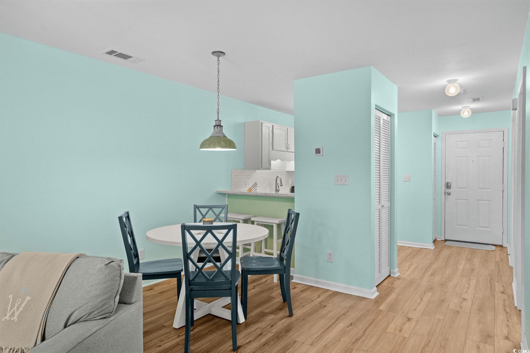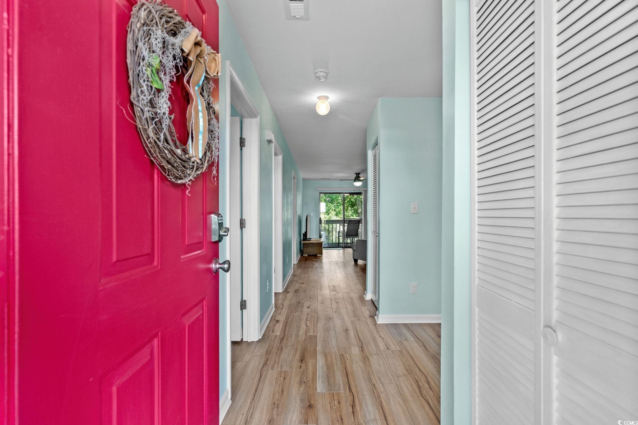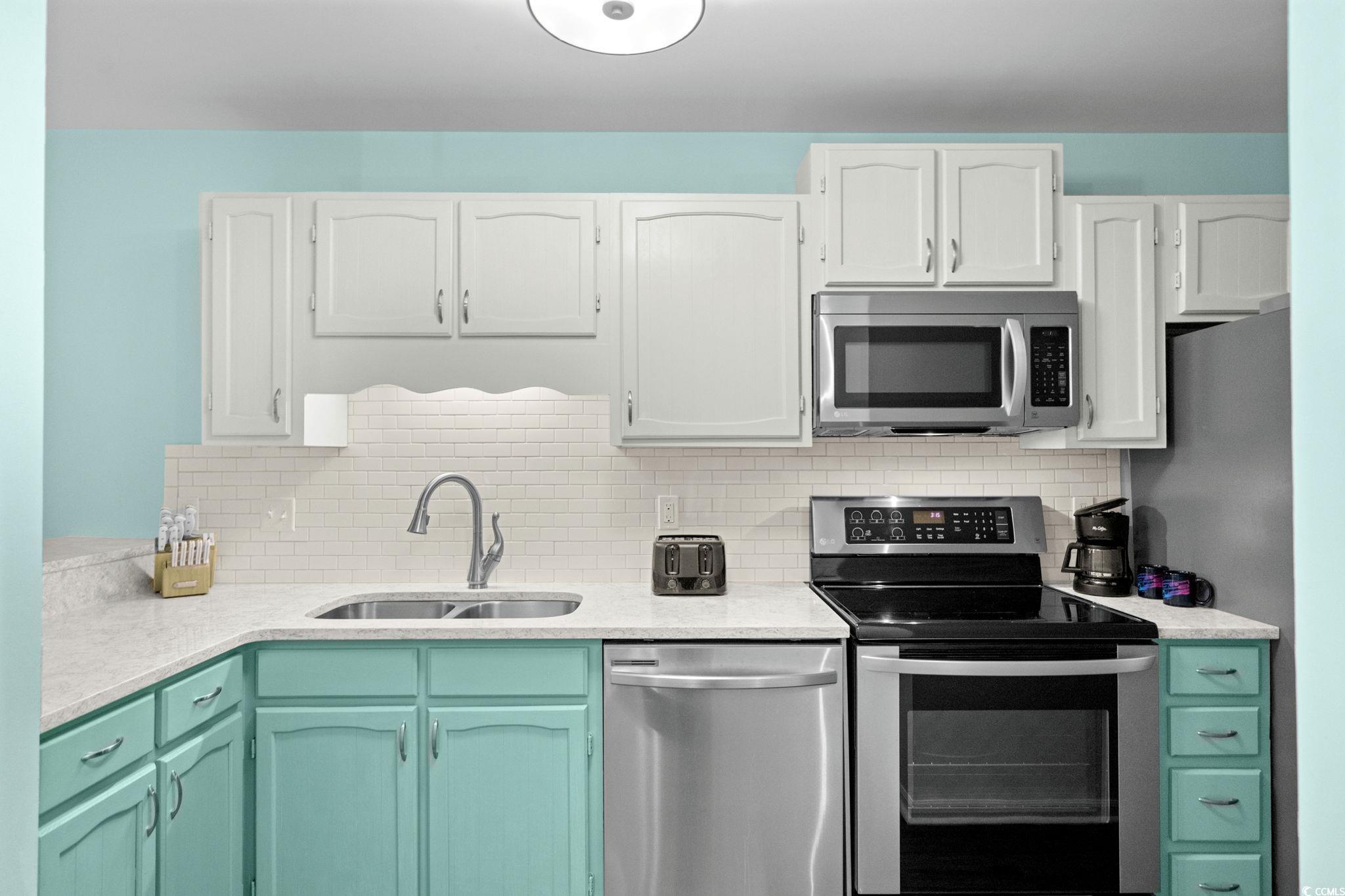 Welcome to this beautifully renovated 2-bedroom, 2-bath condo in the sought-after Watermark community, ideally located east of Business 17 and just blocks from the beach access! Situated on the 3rd floor, this fully furnished (all brand new furniture) unit offers an open, coastal feel with smooth ceilings and LVP flooring throughout. The updated kitchen features quartz countertops, stainless steel appliances, and a breakfast bar, perfect for casual dining. Both bathrooms have been modernized with sleek walk-in showers, and the convenience of in-unit laundry adds to the home's functionality. Enjoy your morning coffee or evening breeze on the tree-lined balcony overlooking the peaceful courtyard and sparkling poolplus there's a handy storage closet just off the balcony. Watermark offers a low HOA that includes water, sewer, trash, cable and internet, with amenities like a pool, BBQ area, and gazebo. Golf carts are welcome, and while short-term rentals are not allowed, the communitys quiet charm makes it ideal for a primary residence or second home. You'll love being within walking or golf cart distance to dining, shopping, medical offices, and more!