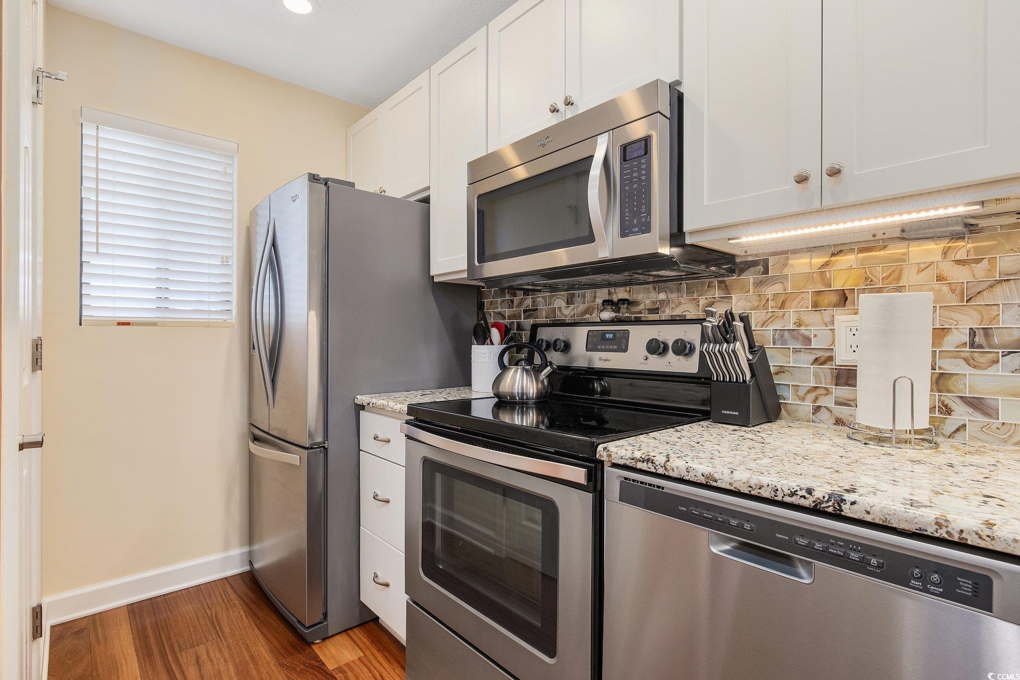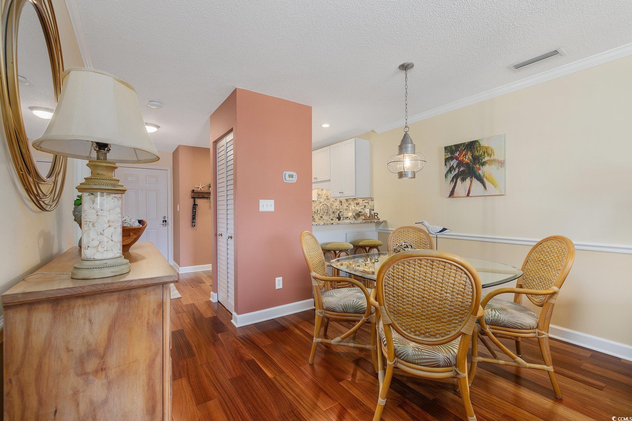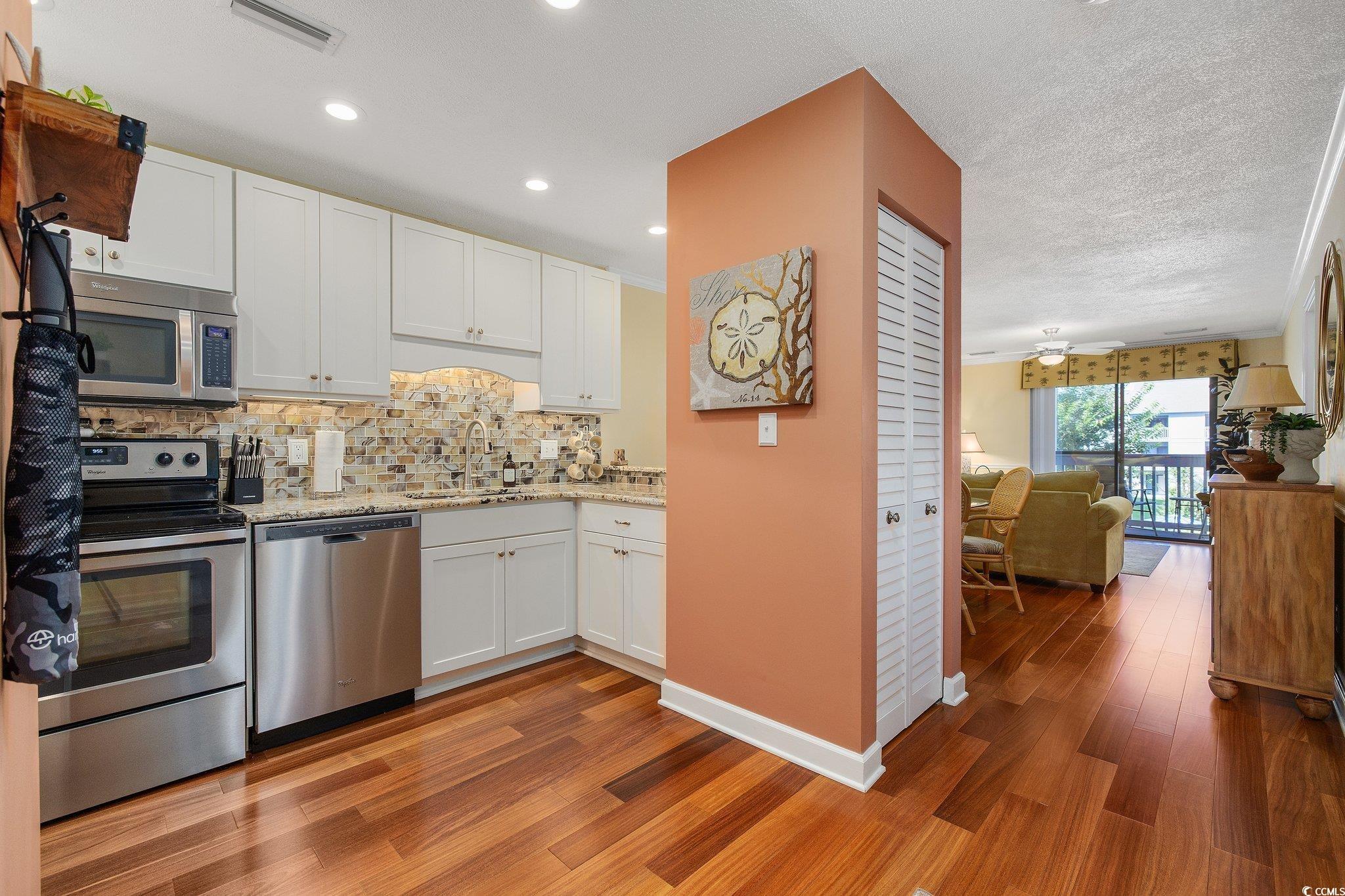 Welcome to Watermark, a highly desirable community in the heart of Myrtle Beach. Step into this immaculate turnkey 2 bedroom, 2 bath beach condo. Sold furnished, including linens & dish-ware to tv's, with its very own Tommy Bahama decor throughout. Brazilian wood floors that add the perfect touch to the condo. The crisp looking kitchen with all stainless Steele appliances and a backsplash that compliments the countertops. Owners suite with an ensuite full bathroom and the second bedroom with a spacious full bathroom for guest. Both bedrooms include a ceiling fan and both bathrooms have tiled showers. Enjoy a beautiful day on your outdoor balcony that overlooks the courtyard, pool, deck, and BBQ area. Have the convenience of being just blocks away from the residential beach access at 79th Ave N. Minimal HOA with cable and internet included. Schedule a showing today!