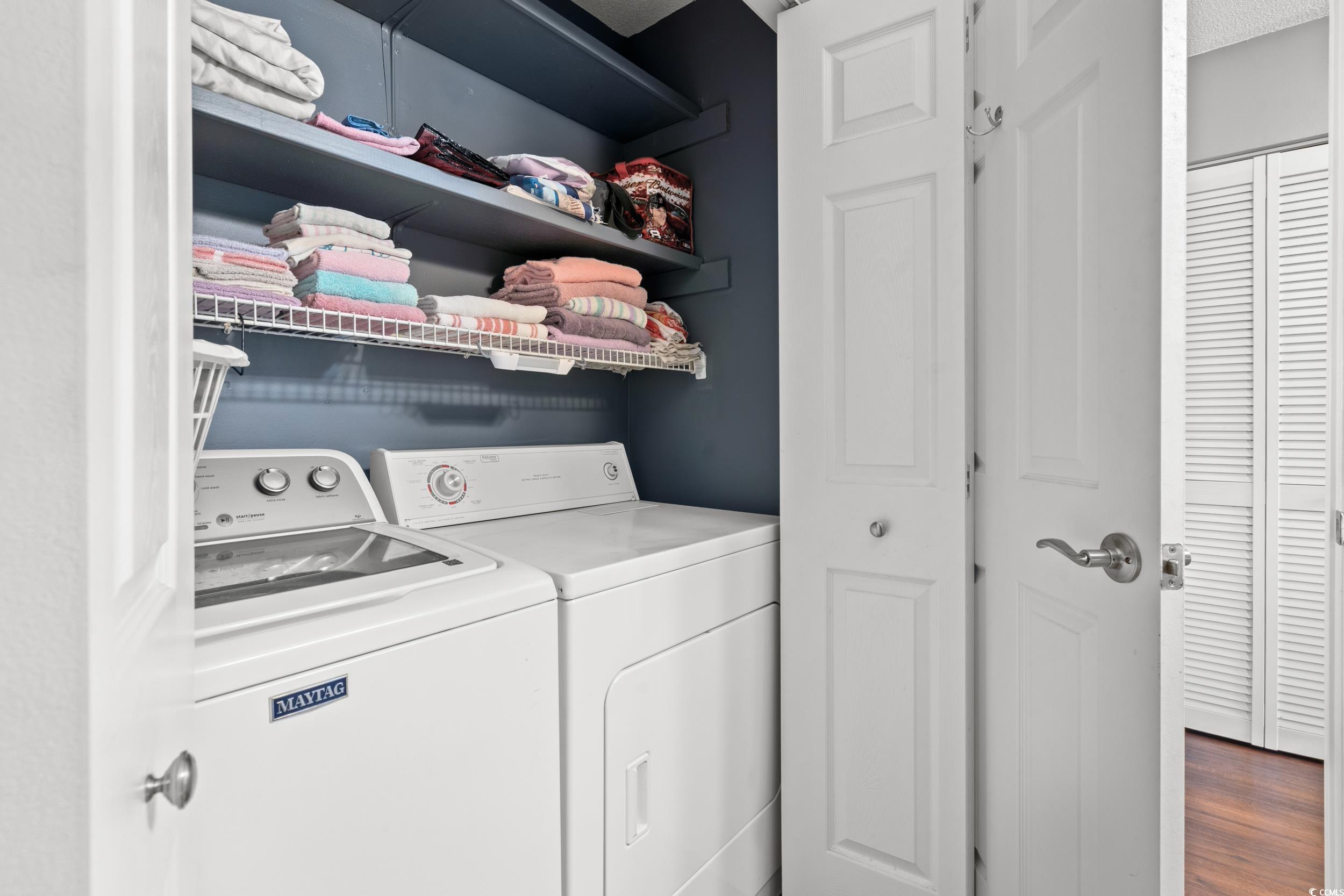 Welcome to 7700 Porcher Dr Unit 3205, a beautifully maintained 2-bedroom, 2-bathroom condo located in the highly desirable Watermark community, just two blocks from the beach in the heart of Myrtle Beach. This spacious second-floor unit offers a bright and open floor plan with plenty of natural light and coastal charm throughout. Step inside to find a well-appointed kitchen with ample cabinet space and a convenient pass-through to the dining area. The large living room opens up to a private balcony perfect for enjoying your morning coffee or relaxing after a day at the beach. Both bedrooms are generously sized, and the primary suite features an en-suite bath. Watermark is a charming, low-rise complex tucked away in a peaceful, tree-lined setting, yet it's just minutes from everything Myrtle Beach has to offer, shopping, dining, entertainment, golf, and more. Whether you're looking for a full-time residence, a vacation getaway, or an investment property, this condo is a perfect fit. Dont miss your chance to own a slice of paradise just steps from the Atlantic Ocean!