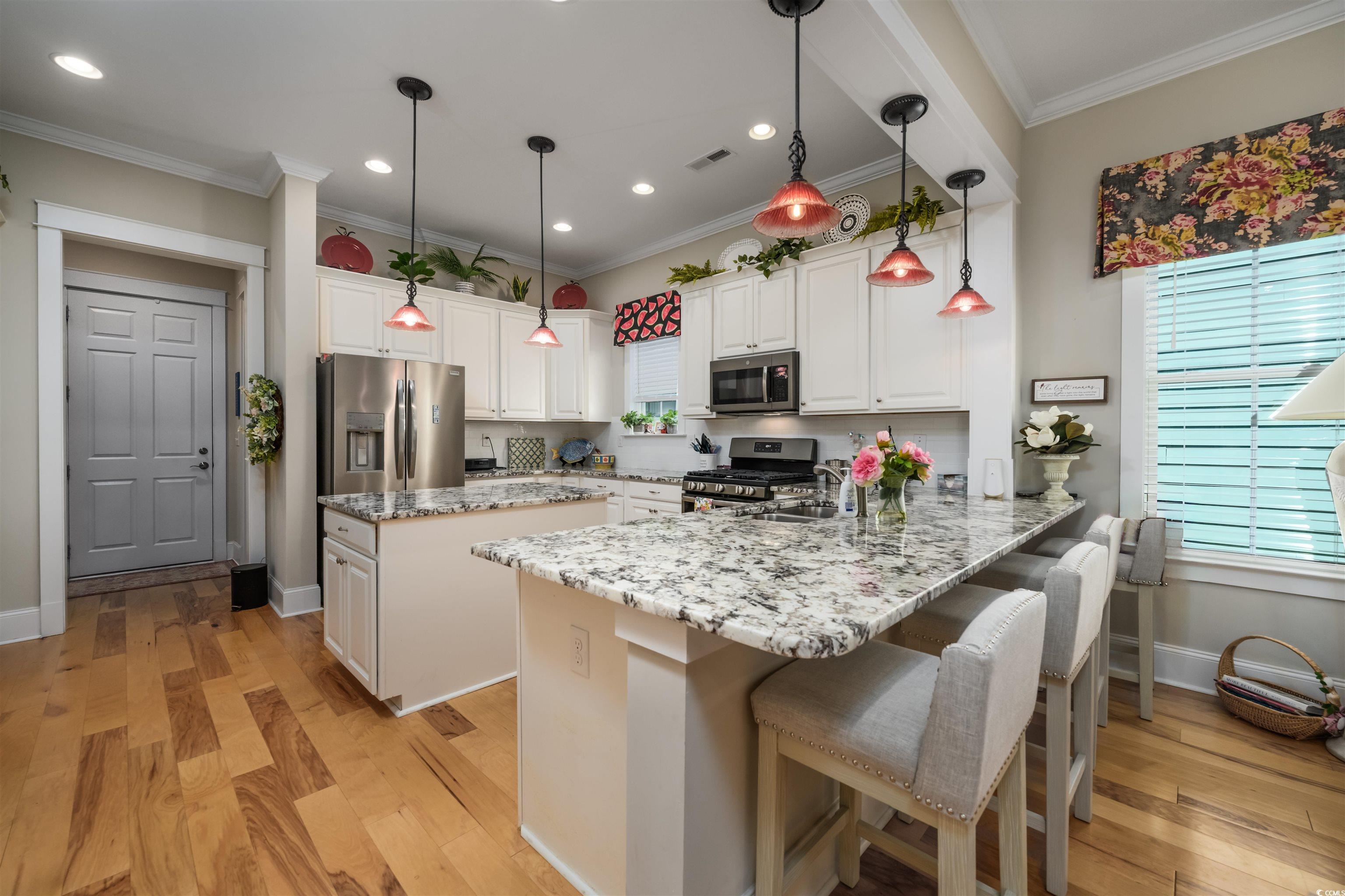 This is the coastal living you have been dreaming of. This coastal cottage is just a short walk to the ocean, and is centrally located to all that Myrtle Beach has to offer. Single-story homes are rare in this area, especially with an attached two-car garage, so don't miss out on this one. You will enjoy relaxing on your front porch or lounging on your fenced courtyard. The home features wood, tile and carpeted flooring, custom closets, as well as natural gas oven & stove, fireplace and tankless-water heater, and a master suite that includes a sitting area in the bedroom, a large bathroom with a large shower with built-in bench, as well as a huge walk-in closet with custom shelving and storage. The home has an extra room which is currently being used for crafts and scrap booking, and the custom cabinetry will convey with the home. The laundry room is equipped with Speed Queen washer and dryer, which convey with the home purchase. Enjoy entertaining friends and family--the home has a nice open floor plan which incorporates the living room with fireplace, kitchen and formal dining area---with 10 ft ceilings throughout the home. The exterior living space includes a nice front porch, as well as fenced courtyard. When you are ready to venture away from home you will only be a short distance from the beach, shopping, restaurants, golf and all that the Myrtle Beach area has to offer. The seller had pictures and wall hangings removed and had related holes patched and has now had the interior sheetrock sections of the walls repainted (not the interior of the garage). Speed Queen Washer and Dryer Conveys with the home purchase. The seller just had a new kitchen faucet and garbage disposal installed. Pet Restrictions: Number limited--see master deed Dog Breeds NOT ALLOWED include Pitt Bull, Doberman and Great Danes. Book your showing today, before this one gets away!