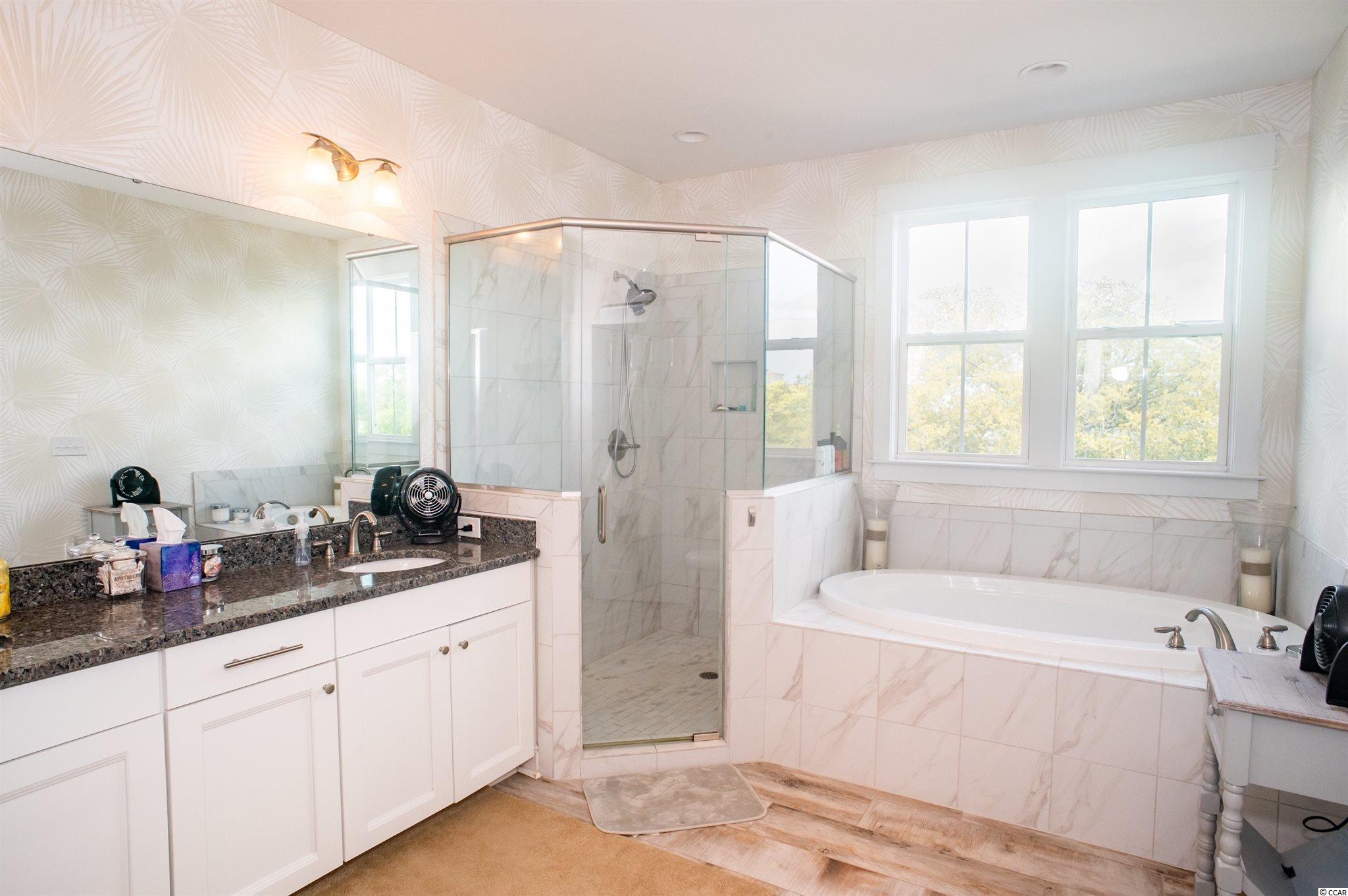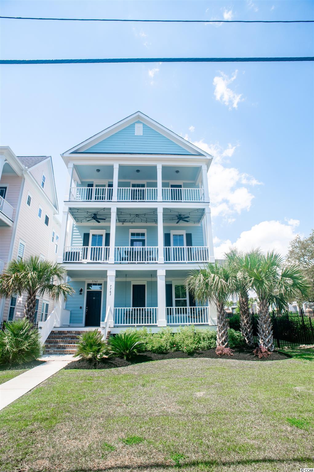 Throw a towel over your shoulder and walk to the beach from this gem of a home located directly on North Ocean Blvd! This three-story home has everything you could want in a beach house or multigenerational home. It boasts high-end finishes including upgraded tile and hardwoods throughout. High ceilings are accented by tall windows with plantation shutters. The elevator services all floors and is conveniently located next to the garage entrance. The first level features two spacious bedrooms, large closets, and an upgraded bathroom with frameless glass shower enclosure and granite countertops. Feel the salty ocean breezes from the first-floor porch swingsone of three that span the entire front width of the home. This home also offers full-size washer/dryer laundry rooms on both the first and third floors. The second floor is dedicated to living space with a large open kitchen featuring a center island cooktop, huge farmhouse sink, soft close cabinet doors and drawers, separate wet bar area with wine fridge, and upgraded Kenmore Elite appliances. The center island has custom pull-outs for easy access to pots and pans along with a clever spice drawer at your fingertips. Next to the kitchen is a big pantry with plenty of space to store supplies. The kitchen opens to the living room spanning the entire front of the home with a gas fireplace and windows all the way around, spilling in the warm sunshine. Spend time around a family meal on the expansive middle porch with fans and bistro lighting. The third floor of the home features a spacious 16 X 19-foot master suite with tray ceiling and two more bedrooms that share a jack and jill bathroom. The master suite is an amazing space with an 8 X 16-foot walk-in closet with custom closet organizer, master bath with both a garden tub and a step-in tiled frameless glass shower surround, and granite counters. Enter the third-floor porch from the master for a peekaboo ocean view. The home also features a large fenced-in side yard on the north side of the property with relaxing paver patio bordering the neighborhood green space. Other features include extended driveway space and a whole-home standby generator to make sure you are never without power. Added gutters, water pressure/softening system, and sprinkler system cover your water management needs. This is the largest lot in Papillon bordering green space with windows overlooking it. 7767 North Ocean Boulevard is truly and wonderful home and the perfect place to enjoy the beach life!
