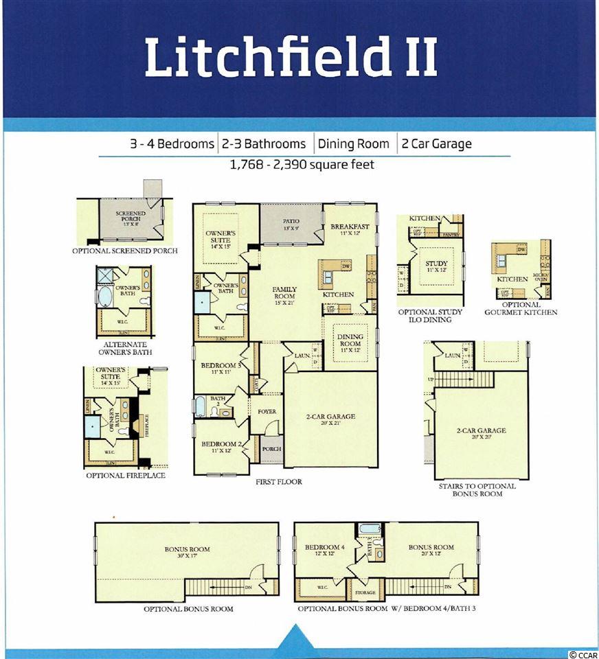 NOW SELLING PHASE III with water and private wooded homesites This home, the Litchfield II, is perfect for buyers! It has a large front and back porch, and most notably an upgraded kitchen. Built with an open concept design. The kitchen features a tiled backsplash, granite countertops, stainless appliances, including a kitchen range, pantry, upgraded cabinetry, recessed lighting and laminate floors. The living room has an abundant number of windows and laminate flooring that extends throughout the kitchen and formal dining room. The baths and laundry room all feature ceramic tile flooring. The master suite features an oversized walk-in closet, a beautiful master bath including a walk-in shower, private water closet and upgraded cabinets. This "" WiFi SMART HOME"" is connected!!! Lock or unlock your doors, and control the temperature of your home and see who is ringing your doorbell, from your smart phone! We are the BEST VALUE for single family homes in Market Common! Our home owners will enjoy a RESORT STYLE pool, walking trails, Pickle Ball court, and a short golf cart ride to the beach. Low HOA. This community is in a Fantastic location close to Market Commons with shopping, restaurants, Myrtle Beach State Park, Brookgreen Gardens, golf and beaches. Homeowners are Living like they are on vacation at BELLE HARBOR!**Photos are of similar home in another community. Buyer responsible for verification of all measurements.