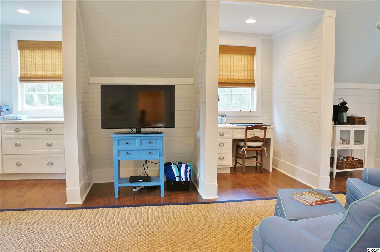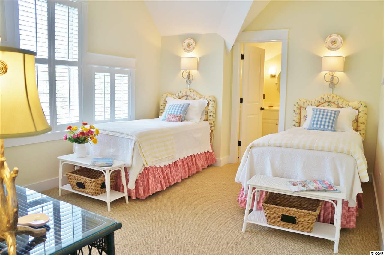 If you saw the house several years ago you should see it now. Not only is it impeccably maintained but there were extensive upgrades and remodel in 2014. A Custom Version of Coastal Living Magazines Cottage of the Year. A cozy retreat with seaside architecture. The 36 X 10 front porch is a sign of southern hospitality. Central living and dining areas are capped by coffered ceilings, Caribbean hardwood floors and gas fireplace. A new kitchen offers a beautiful island with walnut top, cabinets with custom drawers and shelving, Quartz counters, marble backsplash, stainless appliances and beverage center with wine chiller. The master suite is separated from the main house by a private 18 X 9 vestibule. It is a small cottage all to itself and includes wainscoting, 13 X 7 rocking chair front porch and dual walk in closets. The master bath incorporates dual sinks, granite counters, custom tile shower with door-less entry, claw foot soaking tub with integrated massage and private water closet. The family room has a gas fireplace, wainscoting and beaded ceilings, and is open to the kitchen and courtyard. Two full guest suites upstairs include private baths with tile showers and luxurious wool carpeting. The fourth bedroom of the main house offers a unique flex space and includes full bath with walk-in shower, private 13 X 8 porch and additional 9 x 9 loft area. The detached Carriage House has a private entrance, hardwood floors, full bath, custom wood walls and ceilings and personal HVAC. Outside has paver patios and walkways, courtyard area with grill connectivity, brick and iron fencing, extensive manicured landscaping and landscape lighting. Additional enhancements include: Rinnai tankless water heater, plantation shutters, all IPE exterior decking, transom windows, new roof 2016, new HVAC systems fall 2014 and Hardi-plank exterior. Community features include gated access, community pool, private golf course, full service marina to intracoastal waterway, walking and bike trails and private beach access to Litchfield by the Sea. A unique, warm and inviting year round retreat.