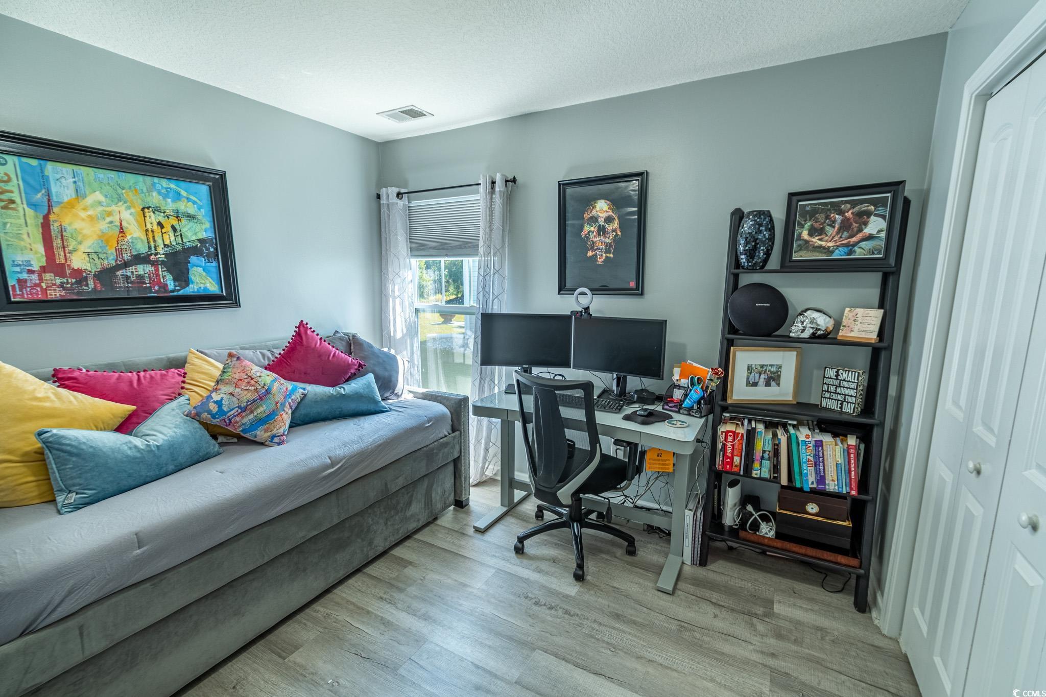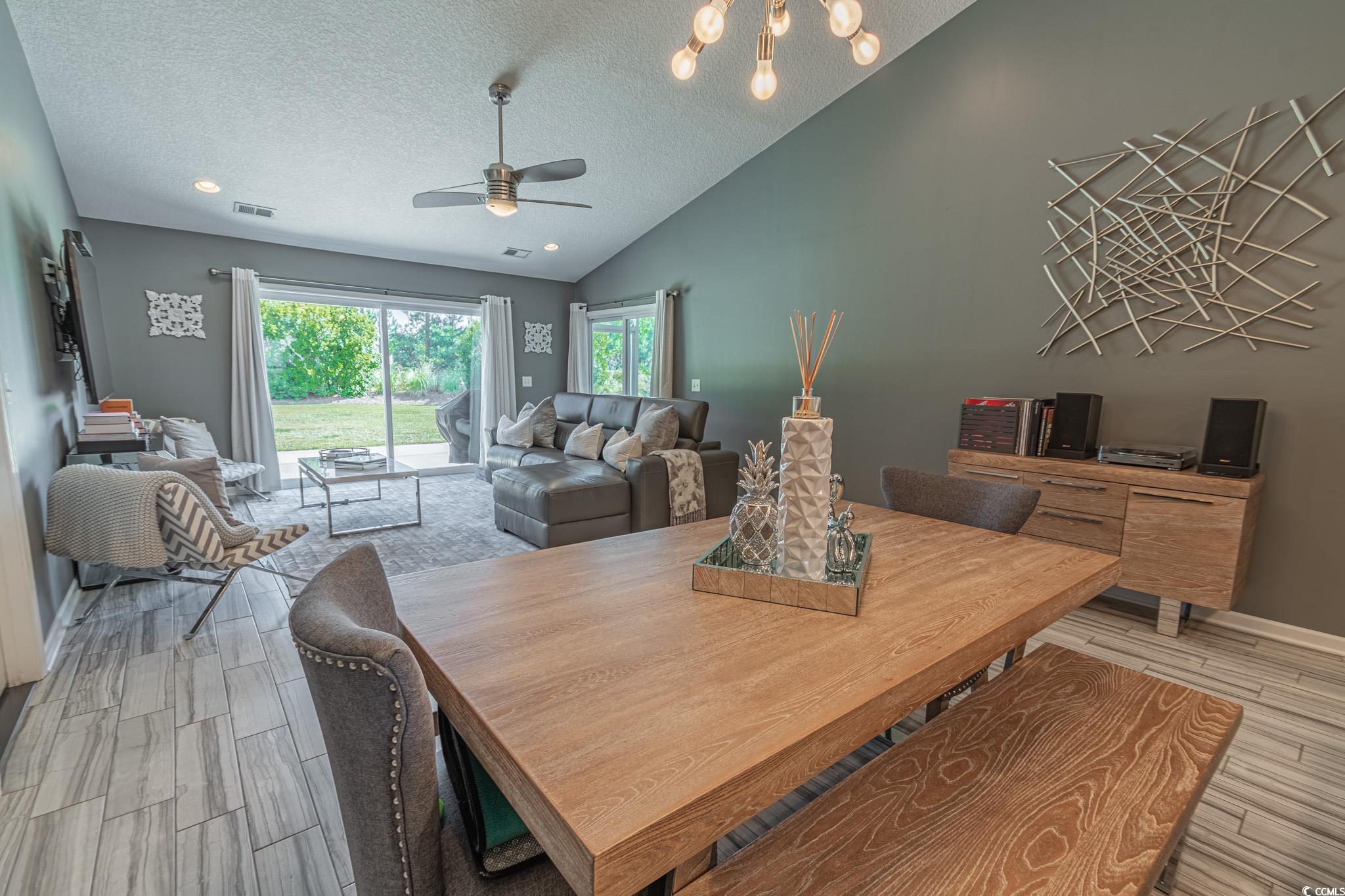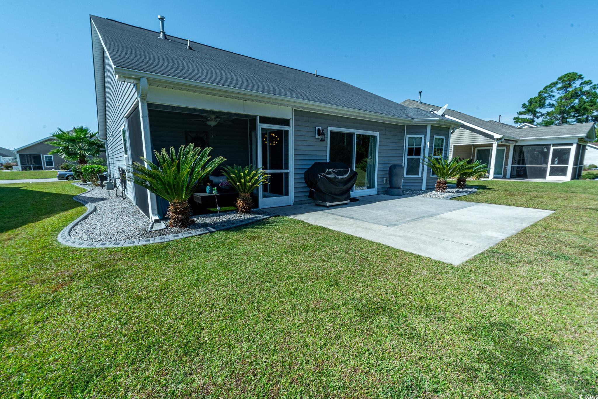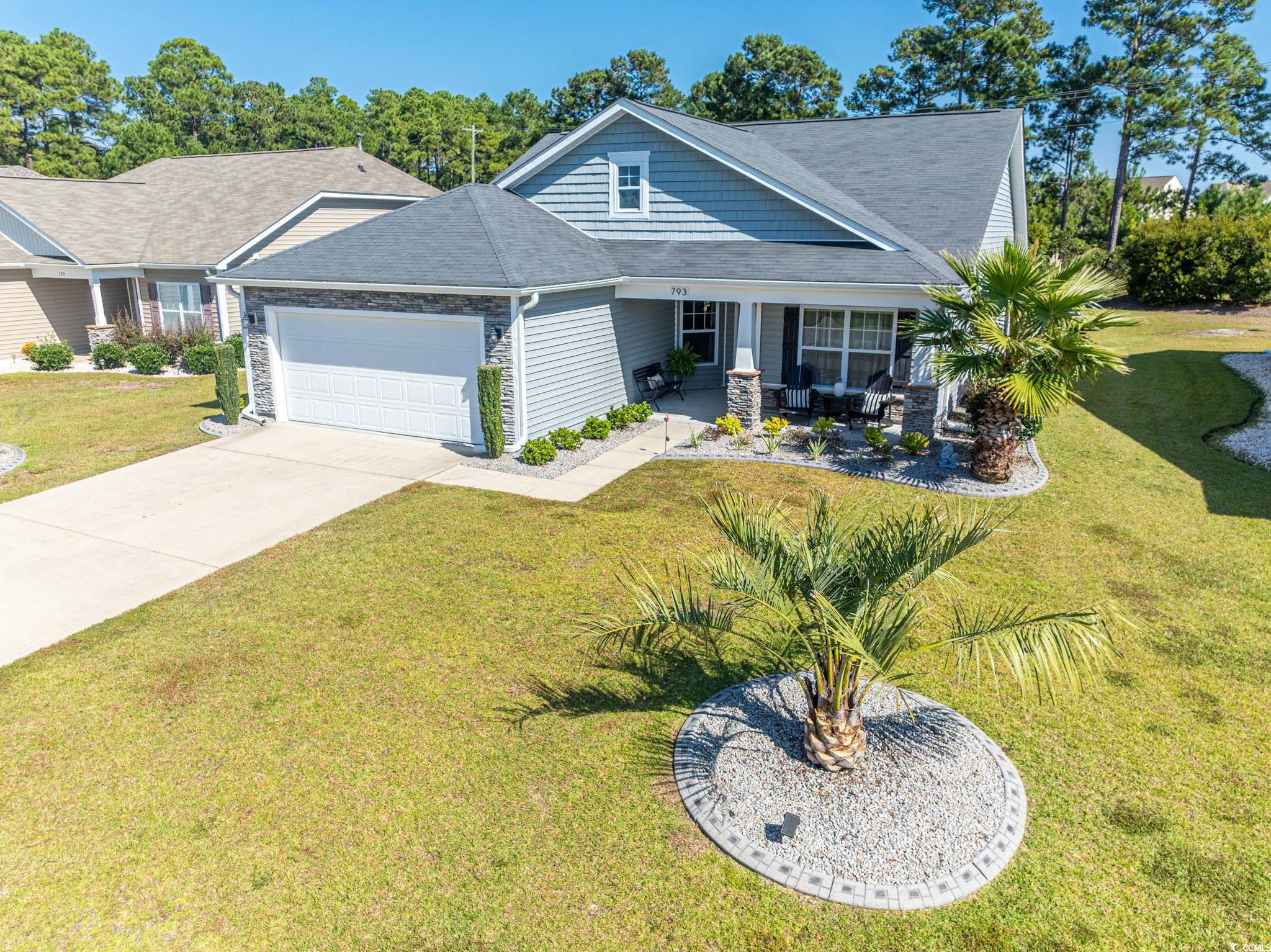 Welcome to this stunning three-bedroom, two-bath home in the desirable Summerlyn community of Carolina Forest. The split-bedroom floor plan offers a blend of style and functionality, featuring tile wood flooring, laminate, and carpet throughout. The kitchen is a chef's delight, with granite countertops, stainless steel appliances, staggered cabinets with crown molding, and a convenient breakfast bar. The open living and dining area boasts vaulted ceilings, recessed lighting, and a ceiling fan, creating a spacious and inviting atmosphere. Two sliding glass doors provide access to the backyardone leading to the screened-in porch and the other to a large patio, perfect for outdoor living. The primary suite is a luxurious retreat, complete with a tray ceiling and fan, a private bath with a double vanity, a custom tile walk-in shower with dual showerheads, a linen closet, and an oversized walk-in closet with custom shelving. The additional two bedrooms share a well-appointed hall bathroom with a vanity and tub/shower combination. Other highlights include a laundry room with a sink and cabinetry, epoxy flooring in the garage, curbscapes with decorative landscape rock, and an electric vehicle charging hookup. Summerlyn is a natural gas community offering a neighborhood pool, playground, and proximity to the Carolina Forest Recreation Center. Its conveniently located near shopping, dining, entertainment, and just a short drive to the beach. Zoned for the highly-rated Carolina Forest school district. Square footage is approximate and should be verified by the buyer.