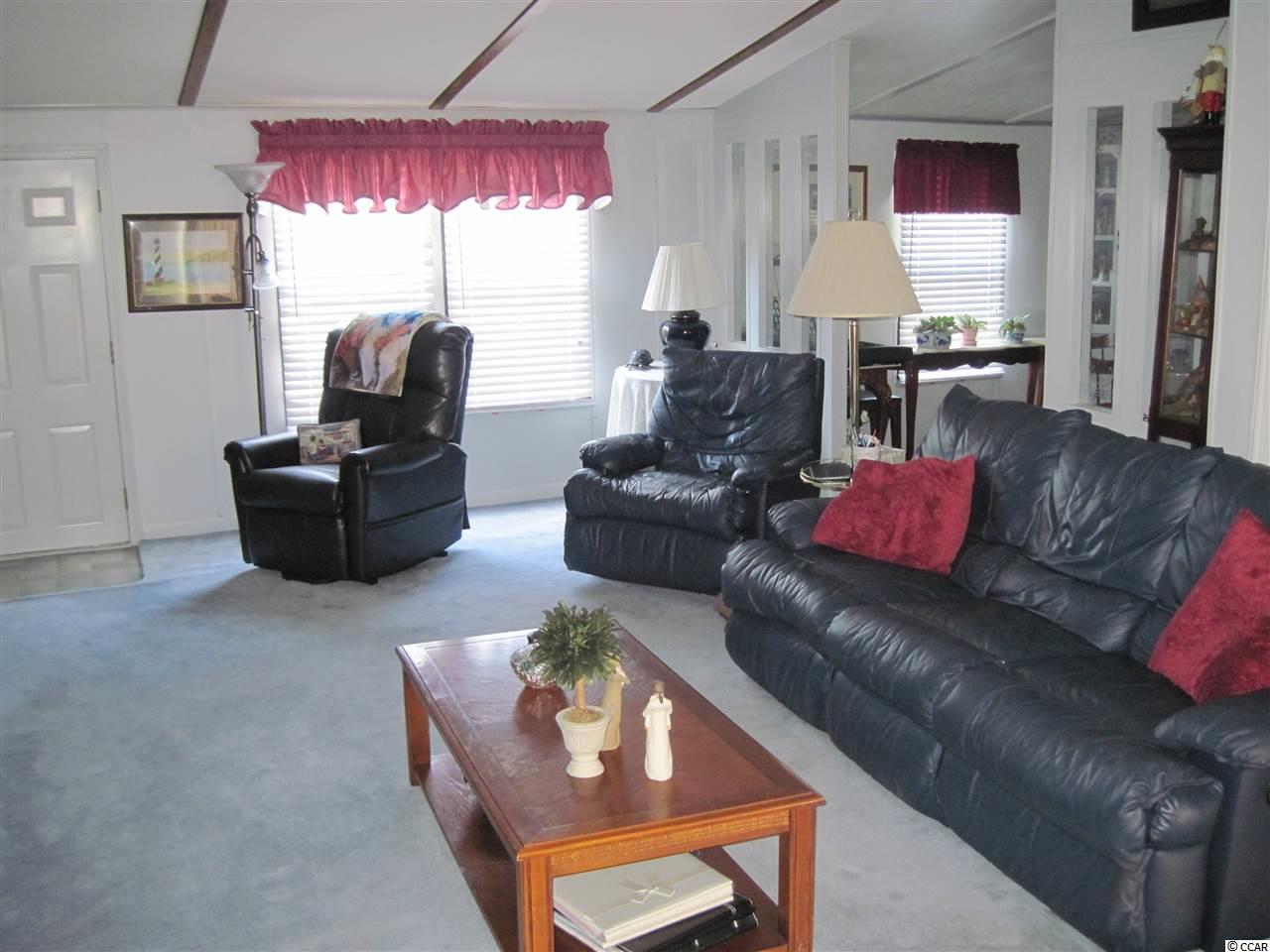 3 BR 3 BA manufactured home in Captain's Cove MHP, a quiet community for folks 55 & older, located in Murrells Inlet, SC, approx. 15 minutes South of Myrtle Beach. Community has a clubhouse & pool, and lots of activities for residents who wish to participate. Near Murrells Inlet's famous sound front restaurants & close to Huntington Beach (Oceanfront) State Park & beautiful Brookgreen Gardens. Also near lots of golf courses & many other types of entertainment. Only minutes from a modern hospital & doctors' offices. This is a spacious home (1800 sq ft), on a large beautifully landscaped corner lot. It's an attractive home that has been well maintained. It's had a lot of upgrades and improvements, to include a modern metal roof installed in 2012, a new high capacity heat pump installed in January 2016, an updated kitchen, laminate floors, and lots of other improvements, too many to name. Please call for complete list. Rooms are very large, with ceiling fans in each room. There is a formal dining room and a breakfast bar in kitchen, a separate laundry room, 3 full baths, a screen porch in back, front and rear decks, and outside storg. bldg. Being sold with kitchen appliances, washer & dryer, window treatments and some furniture. Home is one of the nicest in the community. A must see.