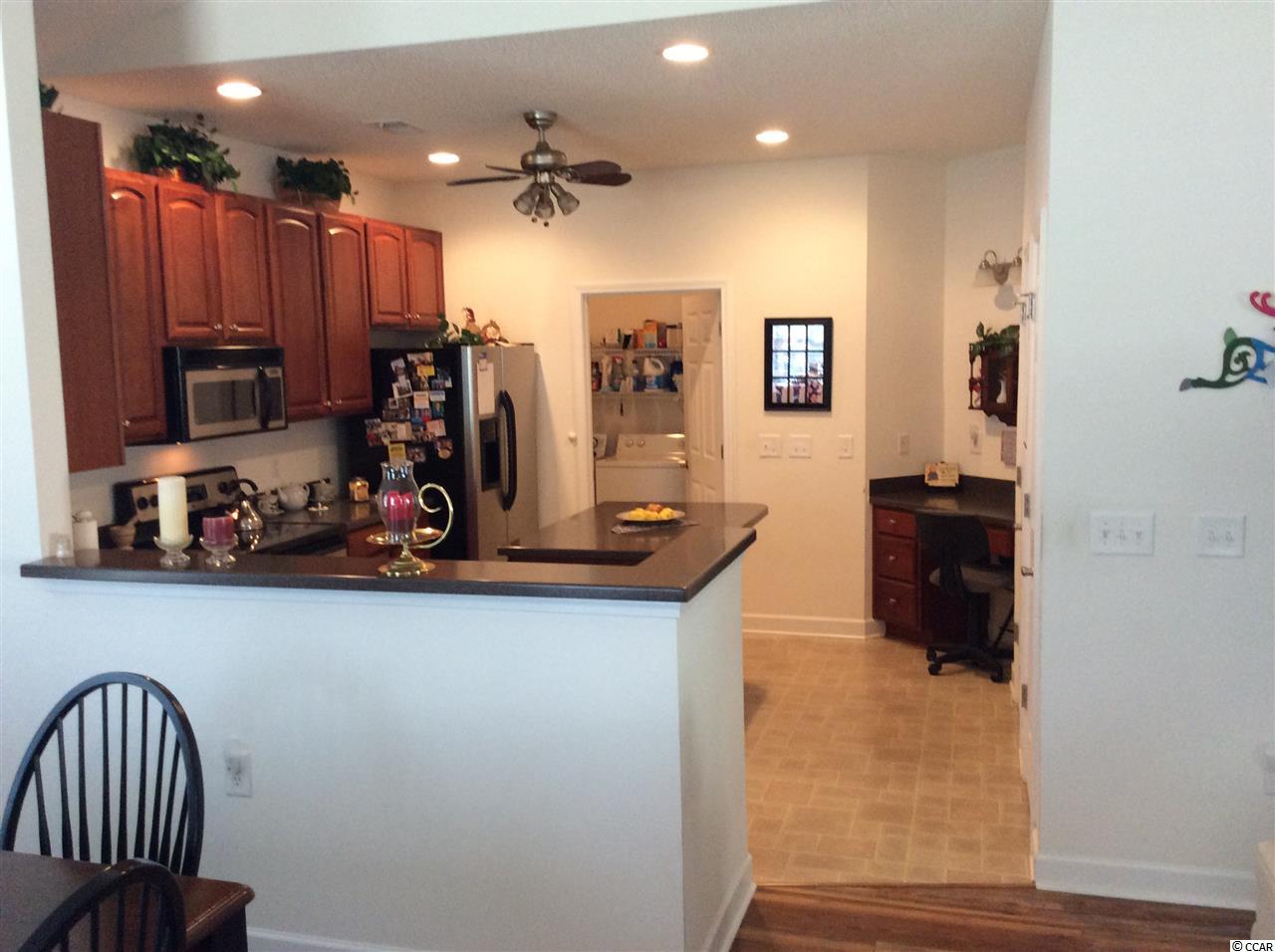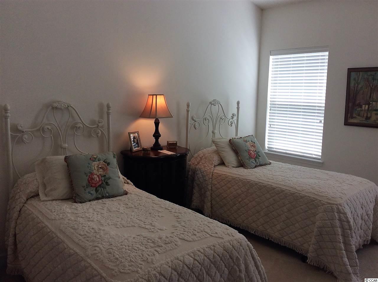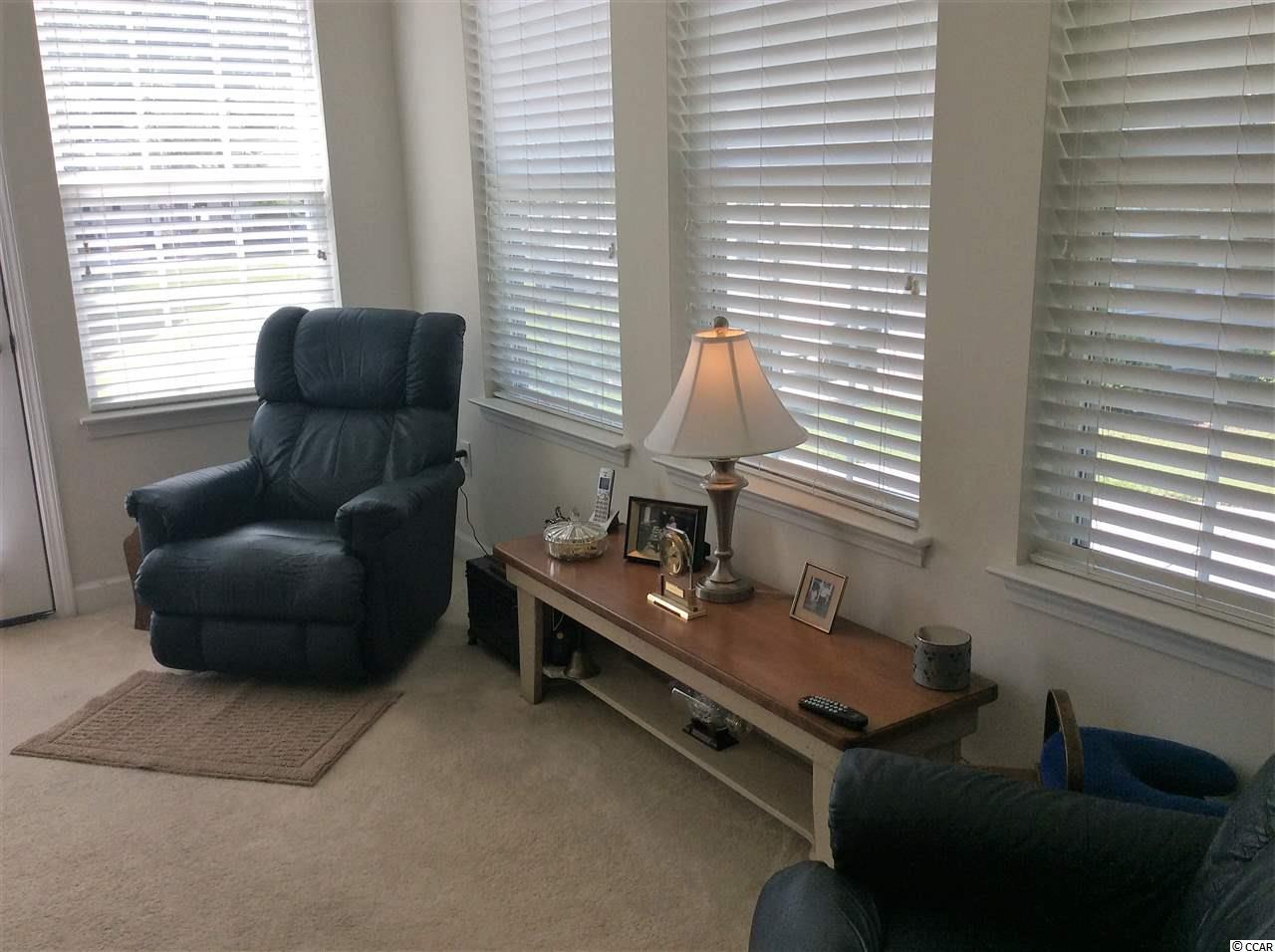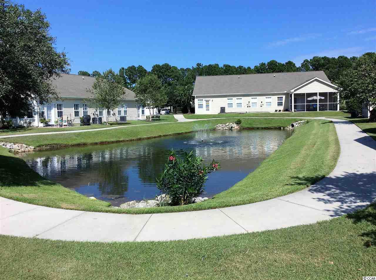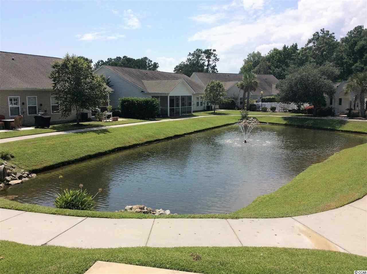 This one owner corner half duplex has one common wall, standard 2 car garage and is adjacent to guest parking spaces. Neutral interior paint color throughout enhances new owners ability to decorate to their tastes. The entrances are from the garage or on the north side of the building. Full view of the pond to the west from bedrooms and sitting area. The community pool is a just a short walk away around the pond. The compact yet spacious home is all on one level. Dining room area just beyond breakfast counter. Kitchen with island, double pantry/storage and breakfast bar. Built in desk. Solid surface counter tops. In the MBR there are double sinks, vanity, shower and soaking tub. A walk in closet in the master and ample closet areas in both bedrooms. Carolina/ Sun room off living room. New Cortec vinyl flooring in living room and dining area. New carpet in MBR. Ample storage throughout. Laundry room just off kitchen before entering 2 car garage.