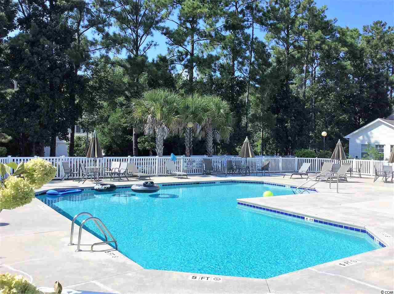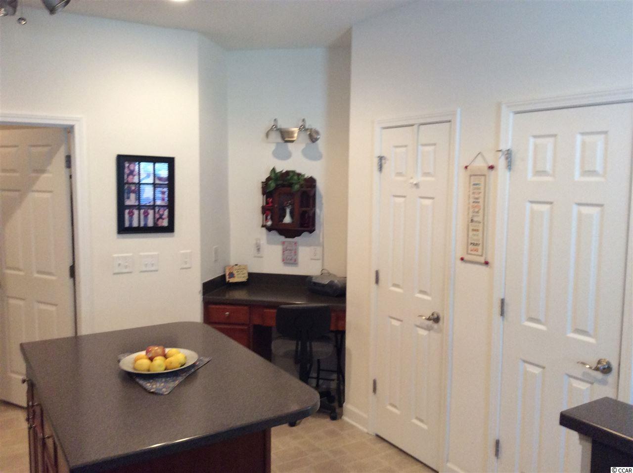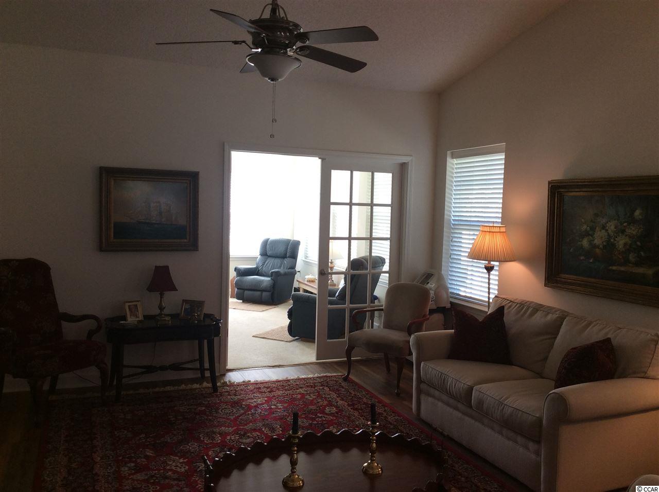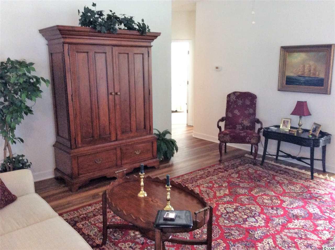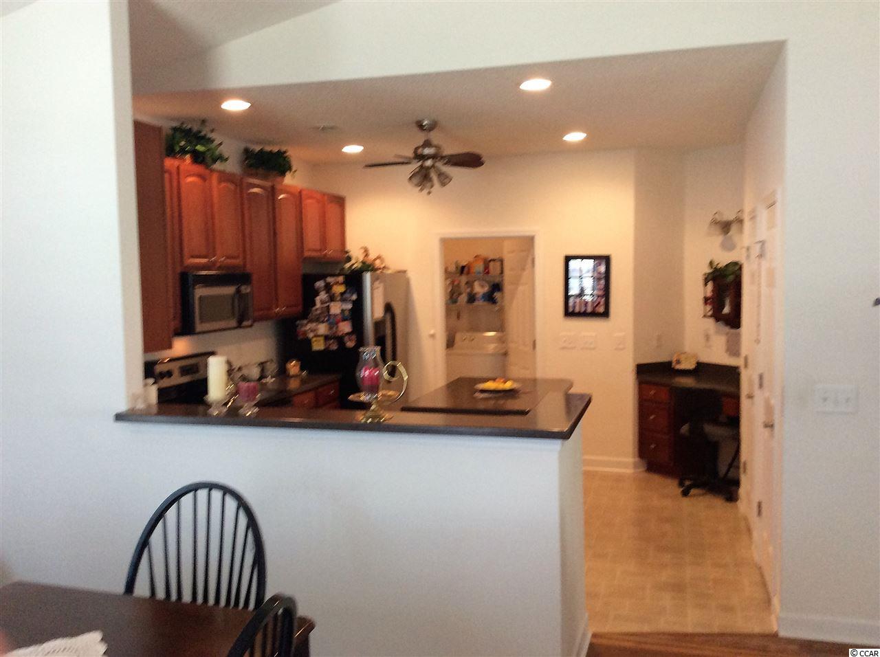 This one owner corner half duplex has one common wall, standard 2 car garage and is adjacent to guest parking spaces. Neutral interior paint color throughout enhances new owners ability to decorate to their tastes. The entrances are from the garage or on the north side of the building. Full view of the pond to the west from bedrooms and sitting area. The community pool is a just a short walk away around the pond. The compact yet spacious home is all on one level. Dining room area just beyond breakfast counter. Kitchen with island, double pantry/storage and breakfast bar. Built in desk. Solid surface counter tops. In the MBR there are double sinks, vanity, shower and soaking tub. A walk in closet in the master and ample closet areas in both bedrooms. Carolina/ Sun room off living room. New Cortec vinyl flooring in living room and dining area. New carpet in MBR. Ample storage throughout. Laundry room just off kitchen before entering 2 car garage.