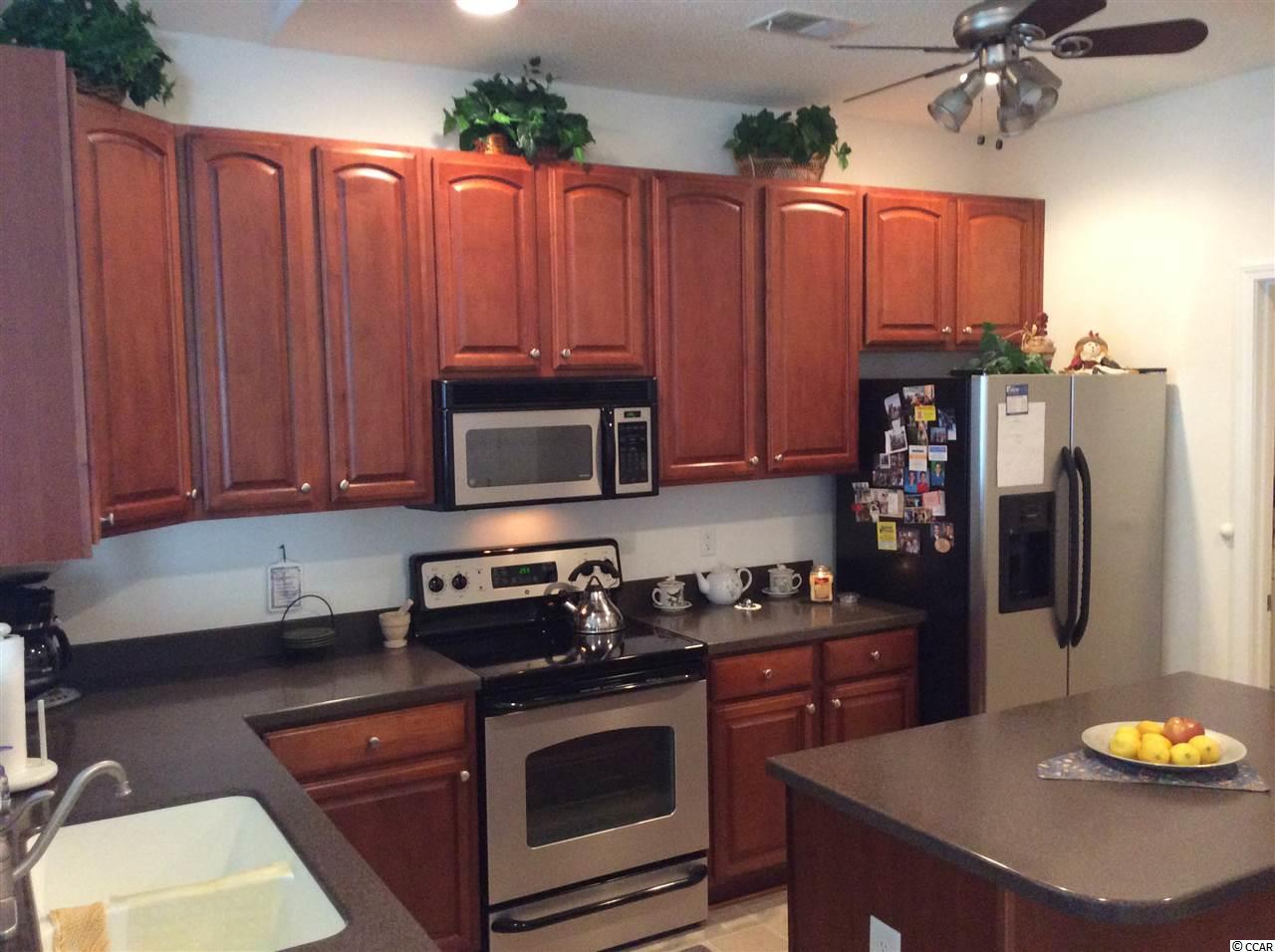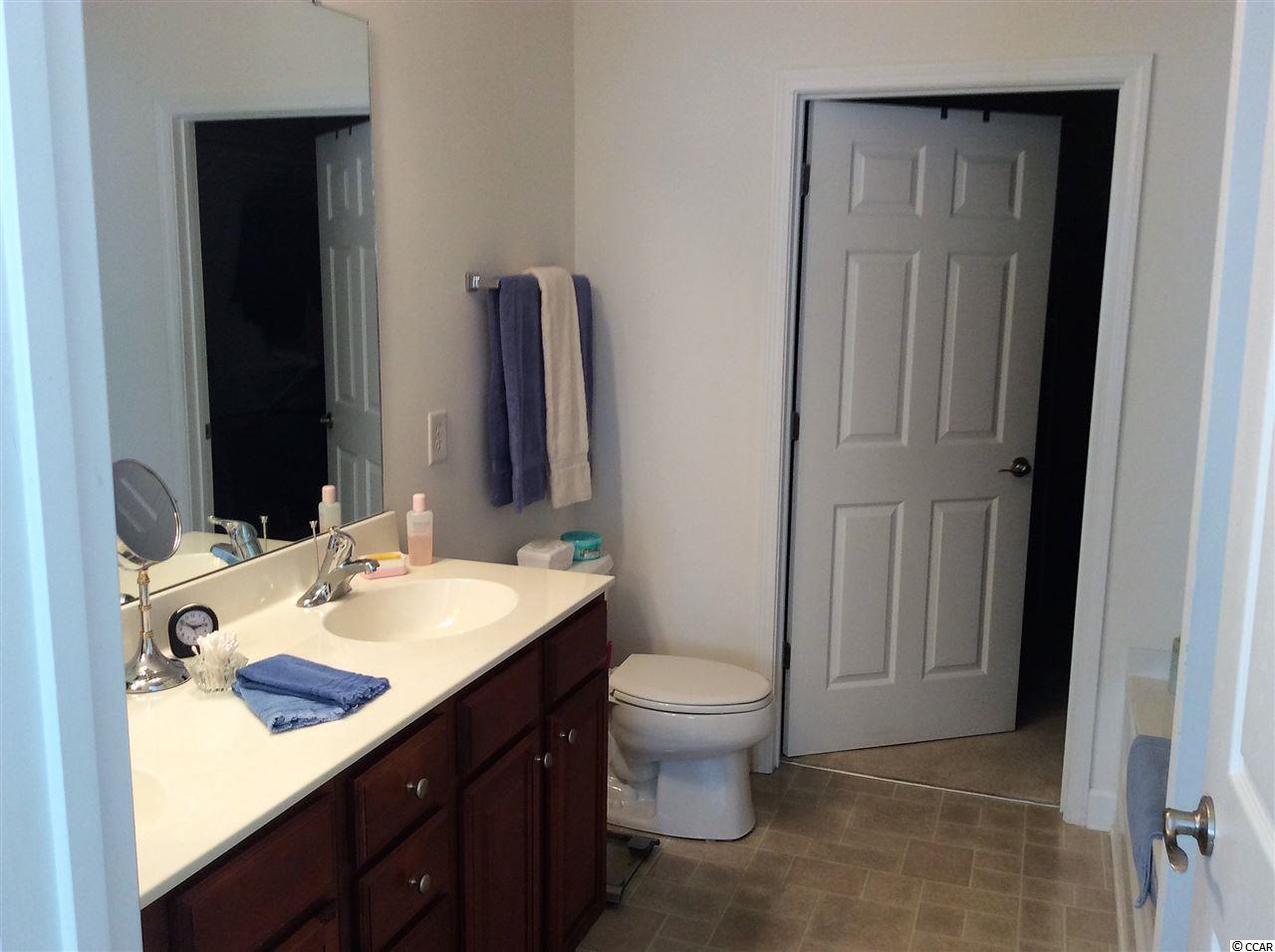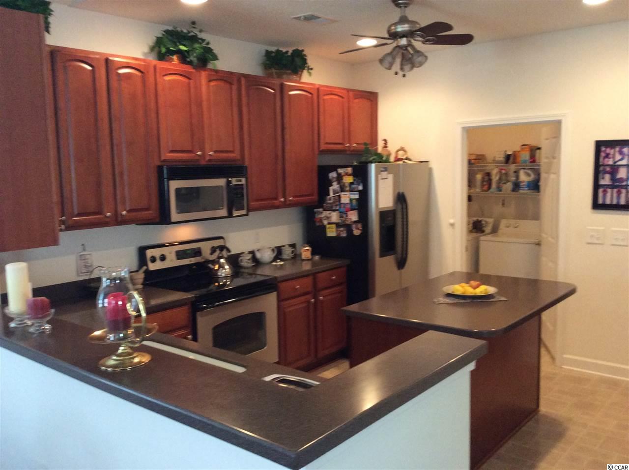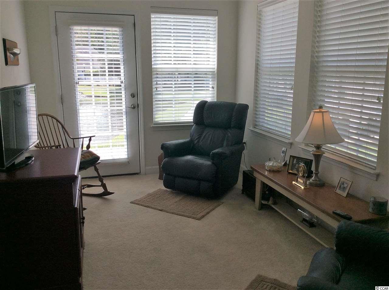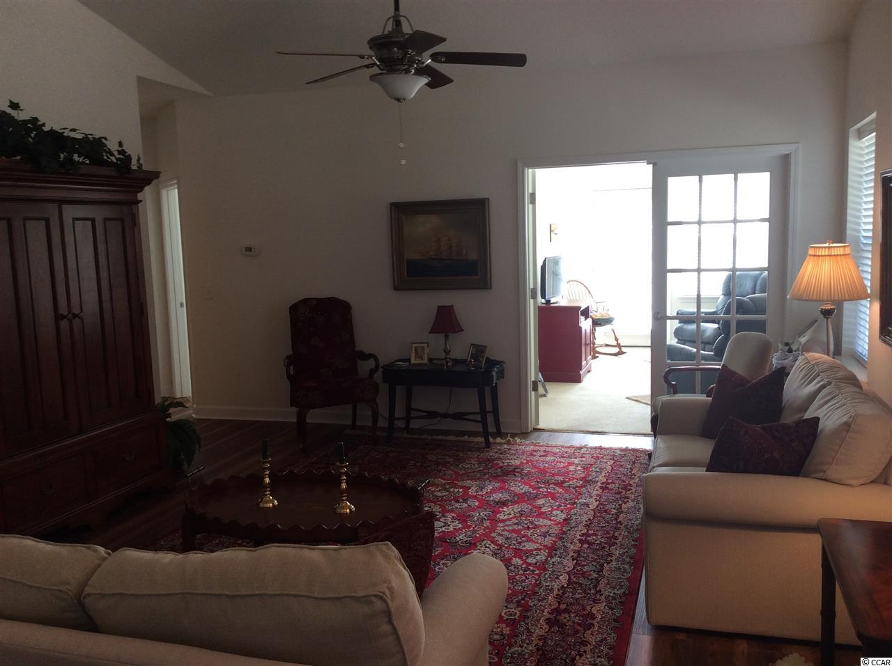 This one owner corner half duplex has one common wall, standard 2 car garage and is adjacent to guest parking spaces. Neutral interior paint color throughout enhances new owners ability to decorate to their tastes. The entrances are from the garage or on the north side of the building. Full view of the pond to the west from bedrooms and sitting area. The community pool is a just a short walk away around the pond. The compact yet spacious home is all on one level. Dining room area just beyond breakfast counter. Kitchen with island, double pantry/storage and breakfast bar. Built in desk. Solid surface counter tops. In the MBR there are double sinks, vanity, shower and soaking tub. A walk in closet in the master and ample closet areas in both bedrooms. Carolina/ Sun room off living room. New Cortec vinyl flooring in living room and dining area. New carpet in MBR. Ample storage throughout. Laundry room just off kitchen before entering 2 car garage.