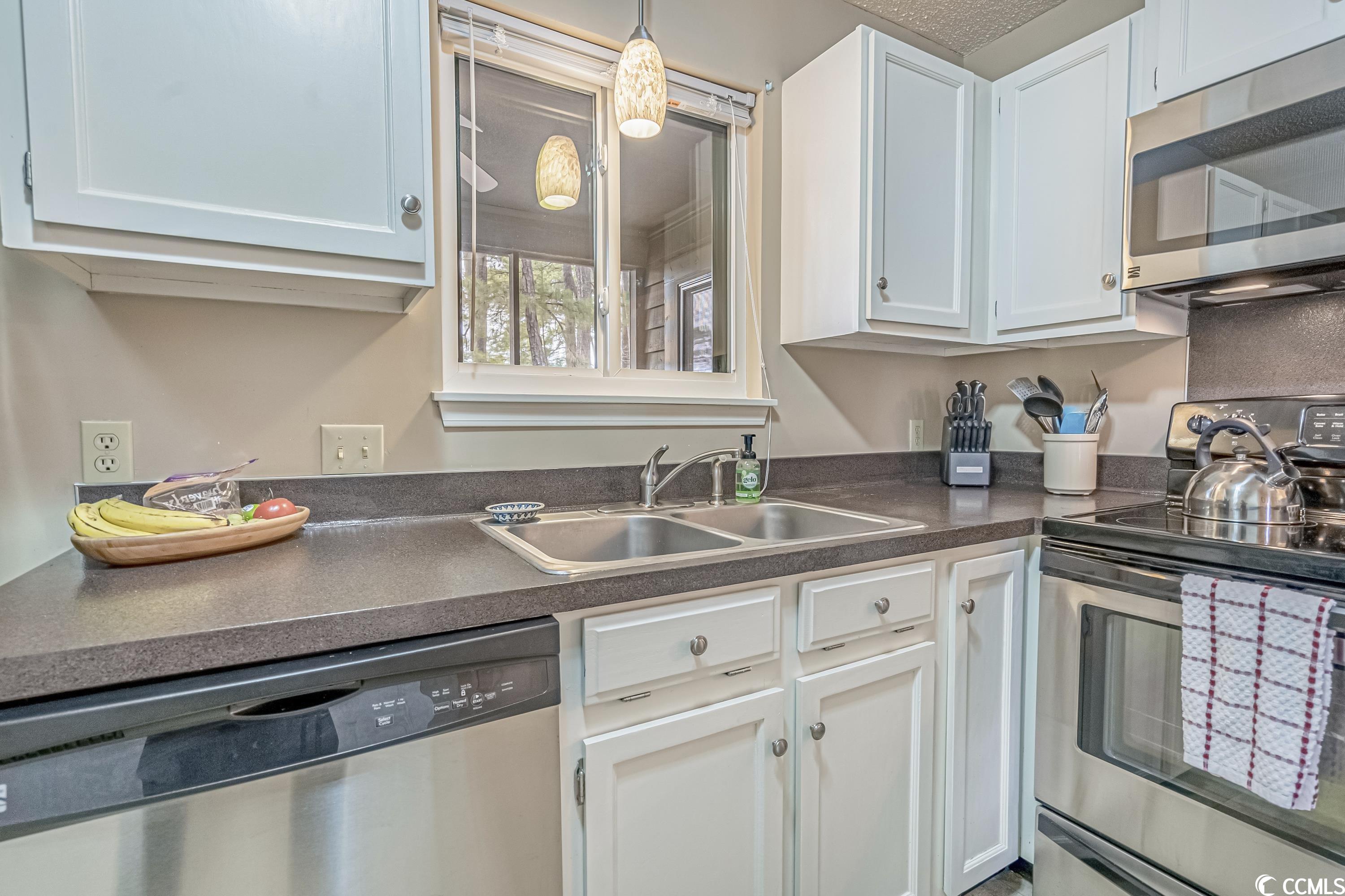 Well-kept 2 bedroom/ 2 bath split floorplan in Indian Wells Golf Villas - Quiet, wooded setting with nice amenities and no short term rentals allowed. Laminate flooring in the main living area. Stainless appliances, white cabinets lots of counter space in the kitchen. Bright and airy with floor to ceiling windows in living area and master bedroom. Master bath has garden tub. Relax on the screened porch that has an inviting eastern exposure (morning sun). The property is conveniently located off the Garden City Connector - Food Lion and other retail just across the street - and just minutes from Garden City and/or Surfside Beach. - 20 minutes to the airport. Lots to do and see within a short drive. Brookgreen Gardens, Myrtle Beach State Park, Huntington Beach State Park