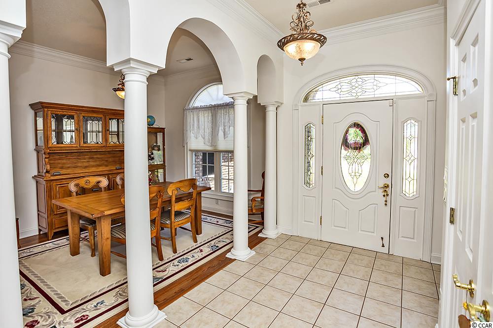 Tremendous Opportunity now available in the prestigious community, Long Bay. This custom 4BR/2.5B all brick home is situated directly on golf course on quiet street. Home offers open floor plan with hardwood flooring throughout, large windows for natural light, cathedral ceilings, updated AC unit, French doors and columns in living area and large Carolina Room with incredible golf course views. Upgraded kitchen boasts breakfast bar, ON-X countertops, breakfast nook and plenty of pantry space. Oversized Master Suite on first floor boasts lighted tray ceiling and Master Bathroom with tiled shower and large walk in closet. The other two Bedrooms located downstairs are very spacious and offer full bathroom in between them, perfect for guests or mother-in-law suite. Home also offers large bonus room upstairs, great for a Den, office, recreation room or another bedroom for guests. Notable Exterior features are large deck overlooking golf course, large lot, well-manicured landscaping, side swing garage, encapsulated crawlspace and the golf course views. Long Bay community is just a short drive to the beach and close to major road systems, school systems and all other attractions the Grand Strand has to offer. Make an Appointment today!