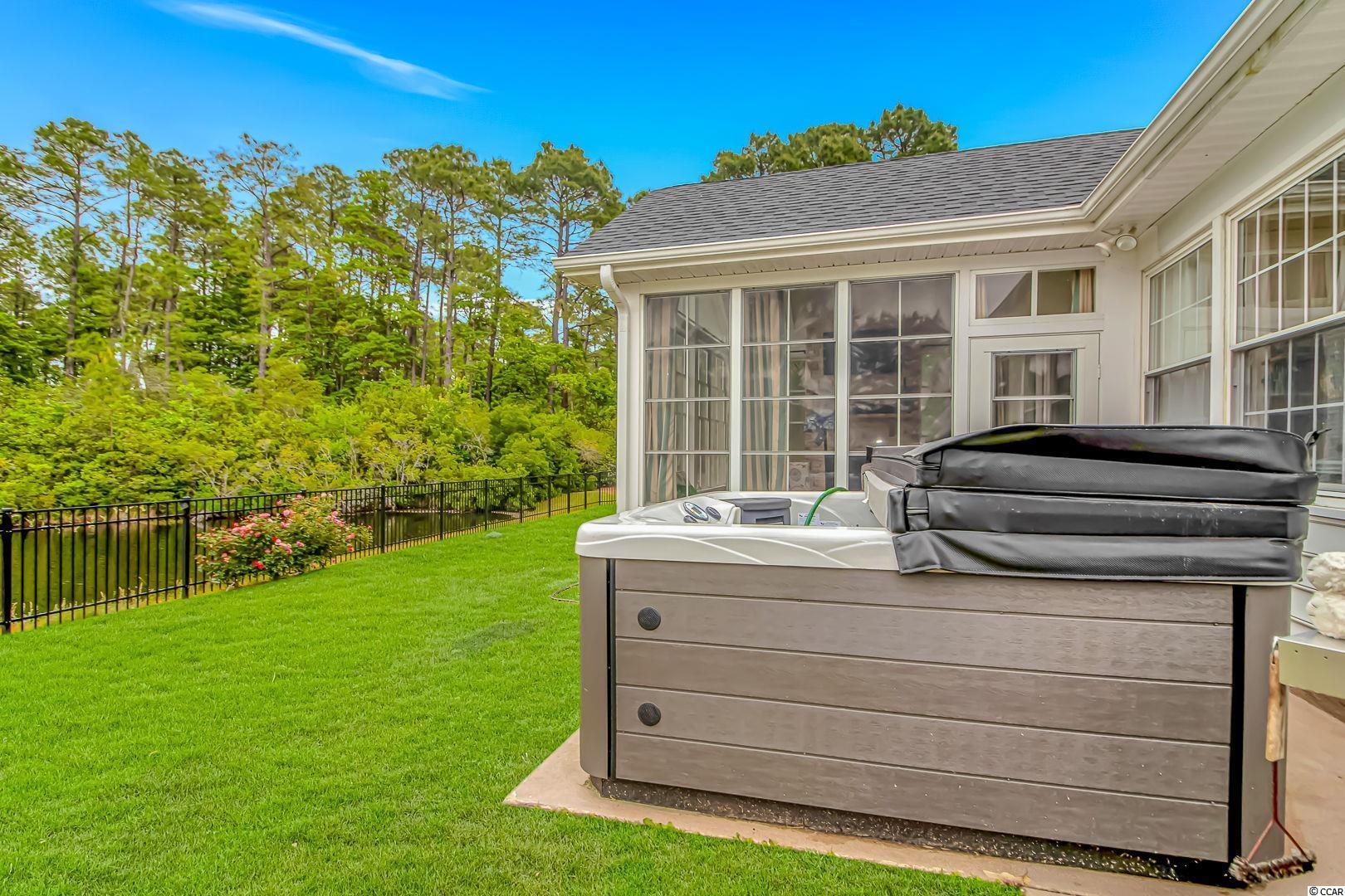 Dont miss out on this fully furnished 4 bedroom 2.5 bath home located in Waterford Plantation. Located on a picturesque pond with a fountain and a beautiful view of the water! Other exterior features include landscaped flower beds with low maintenance rock covering, sprinklers, security system, a fenced in backyard, an extended patio with a gas fire table, and a hot tub! Inside the home you have options with a flex room that could be used for a formal dining room, craft room, office, or guest room. You'll find a beautiful view of the water from the Carolina room. The kitchen has a breakfast bar, nook, pantry, stainless steel appliances, quartz counters, and tile floors. Off the master bedroom, is a four seasons room, also facing the water, with a stone mantle fireplace. The master bath features a large tile shower, quartz counters, double vanity, and ample cabinet space. The main level also has a laundry room with a sink and cabinets. The three guest bedrooms are upstairs along with a guest bathroom, and storage space. Waterford Plantation has great amenities including a community pool and clubhouse. All measurements and square footage are approximate and not guaranteed. Buyer is responsible for all verification.