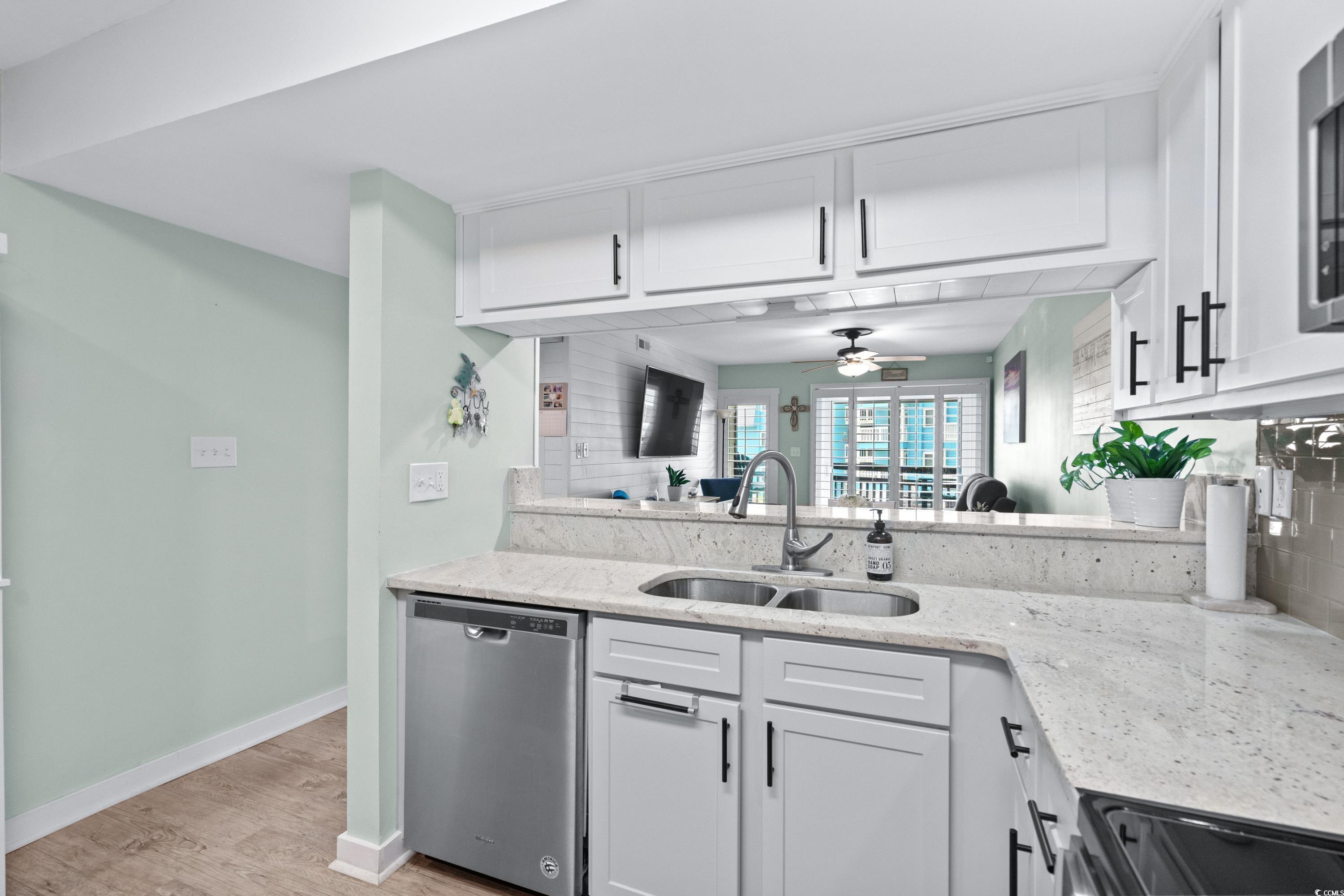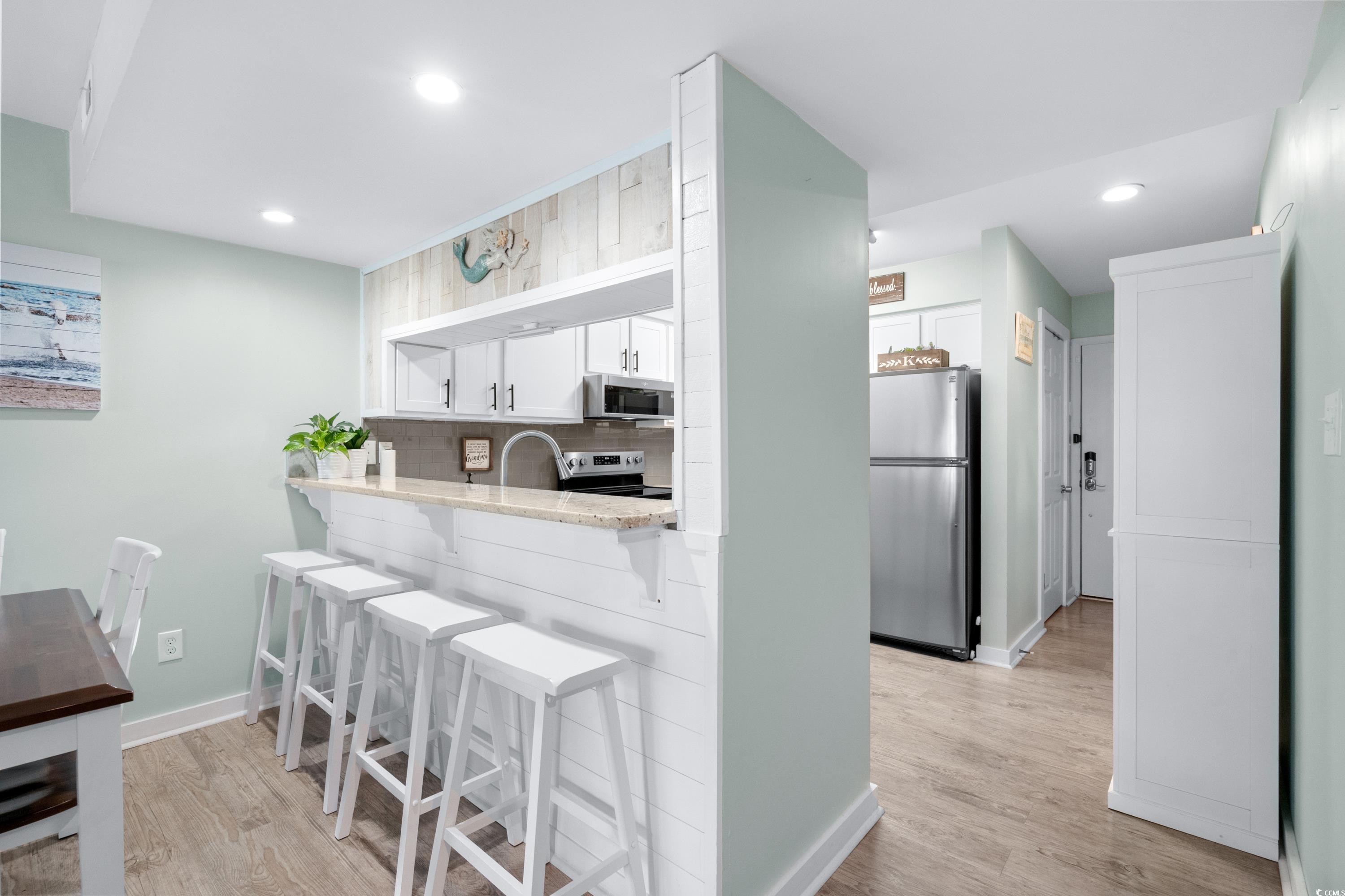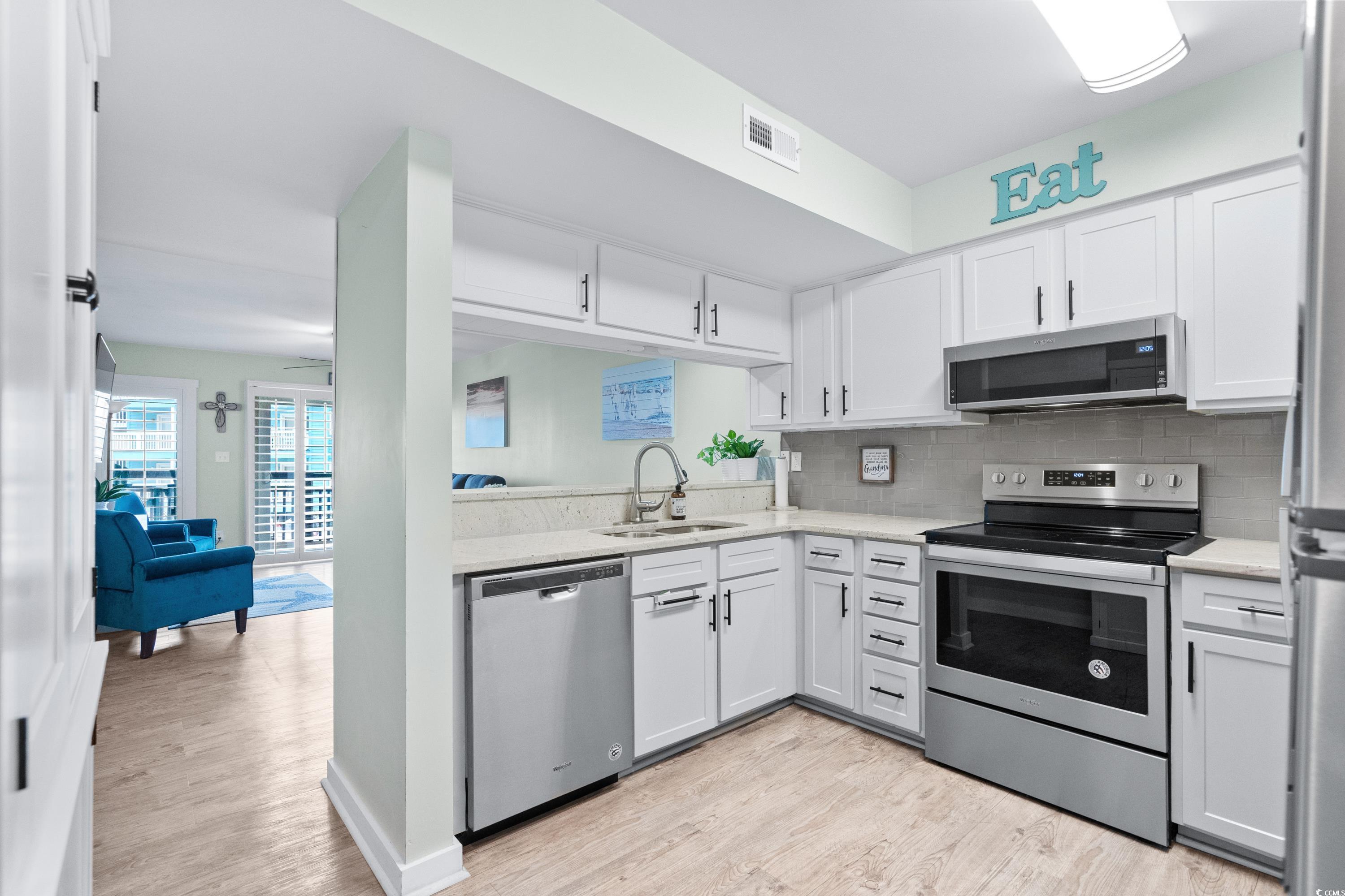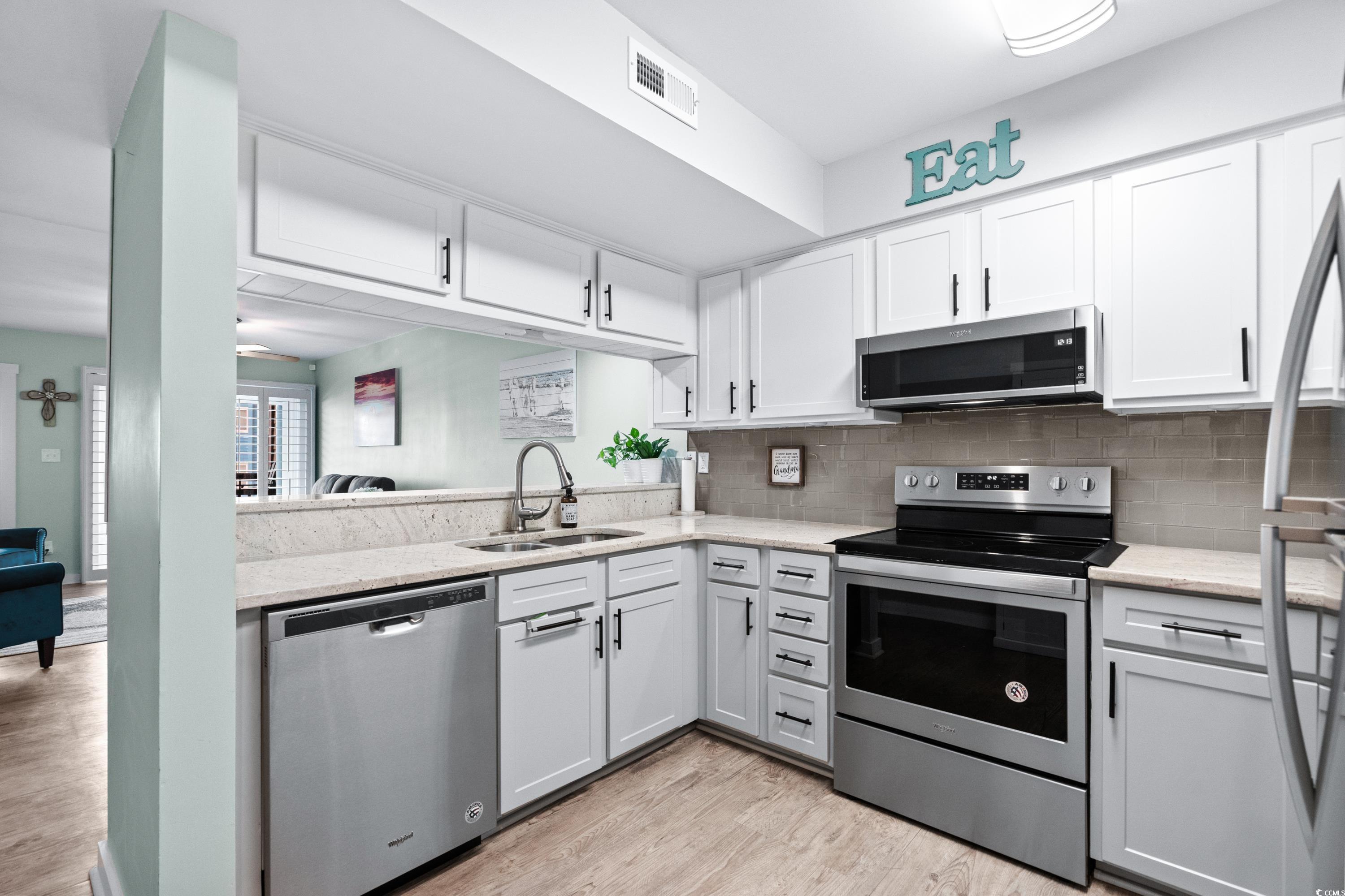 Welcome home to Paradise! Located on the beach in the Garden City area of Murrells Inlet. This one level, 2 bedroom 2 bath first floor condo at the Afterdeck. has been updated with a remodeled kitchen with refinished cabinets, new tile backsplash and granite countertops, smooth ceilings throughout, both bathrooms remodeled with a walk in shower in primary bedroom, LVP flooring,new large balcony, plantation shutters, hurricane proof windows and a new HVAC unit with warranty. The Afterdeck provides an elevator, luggage carts, outside grills, a nice pool with a shower and a storage closet to store your beach chairs and toys. Step from the pool right onto the beautiful beach. Enjoy a short walk on the beach to the. Garden City pier, shopping and the Conch Cafe.