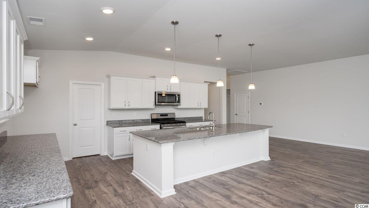 The popular Eaton floor plan is a great one level, open concept home with a show stopper kitchen! Granite counter tops, 36"" white painted cabinets, stainless Whirlpool appliances including a gas range, 9' ceilings, and lots of windows! Beautiful laminate wood flooring flows throughout the main living areas giving the look of wood with easy care and cleanup. Luxury primary bedroom with tray ceiling and en suite bath featuring a large double vanity, 5' shower, and two linen closets. Sliding glass doors off the living area lead to the spacious rear covered porch with water views. This is America's Smart Home! Ask an agent today about our industry leading smart home package that is included in all of our homes. *Photos and virtual tour are of a similar Eaton home. (Home and community information, including pricing, included features, terms, availability and amenities, are subject to change prior to sale at any time without notice or obligation. Square footages are approximate. Pictures, photographs, colors, features, and sizes are for illustration purposes only and will vary from the homes as built. Equal housing opportunity builder.)
