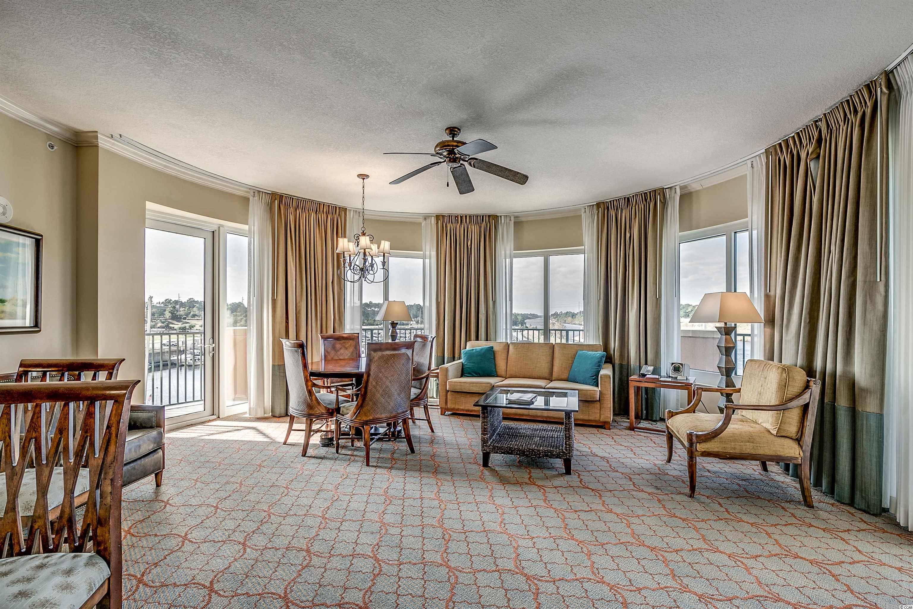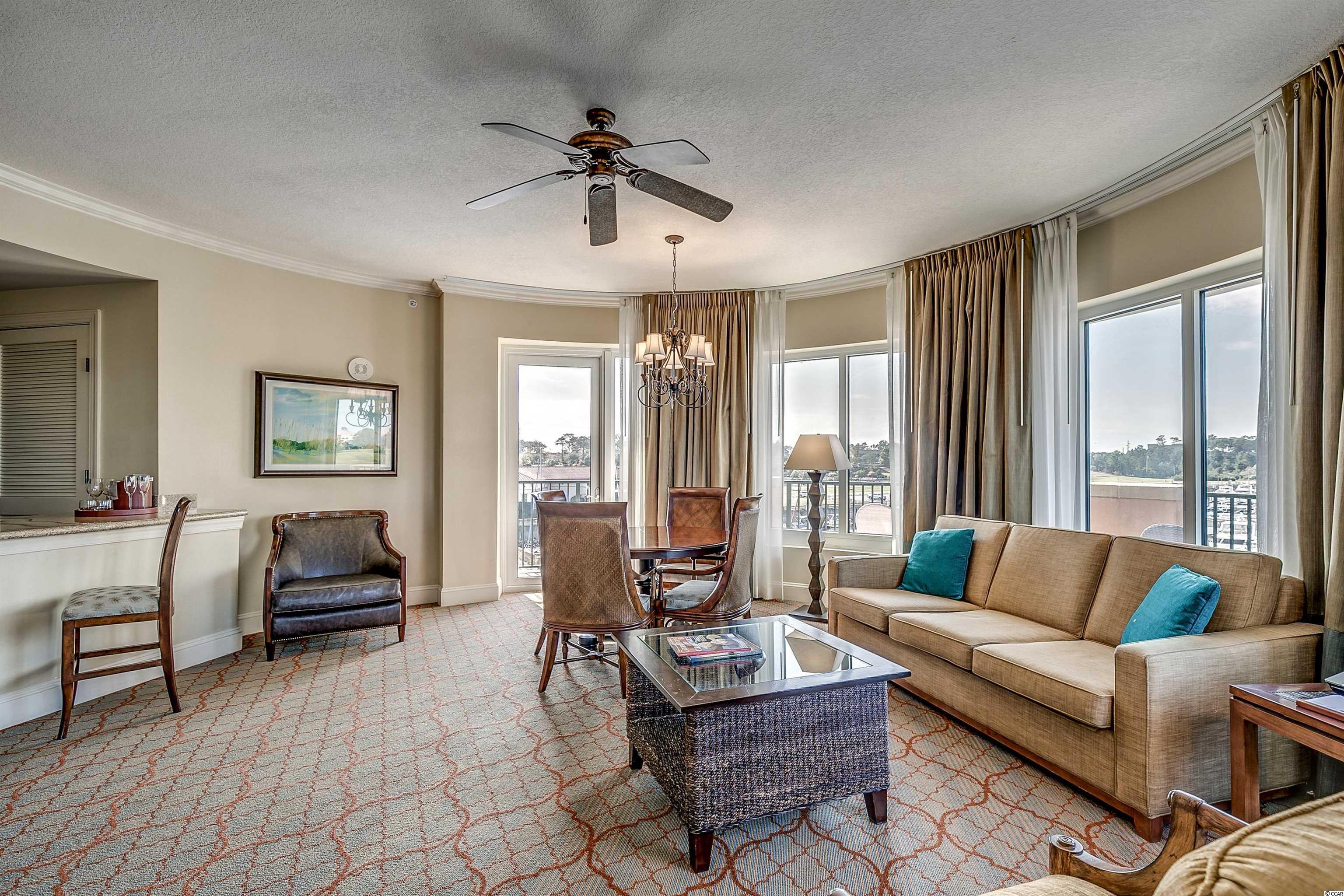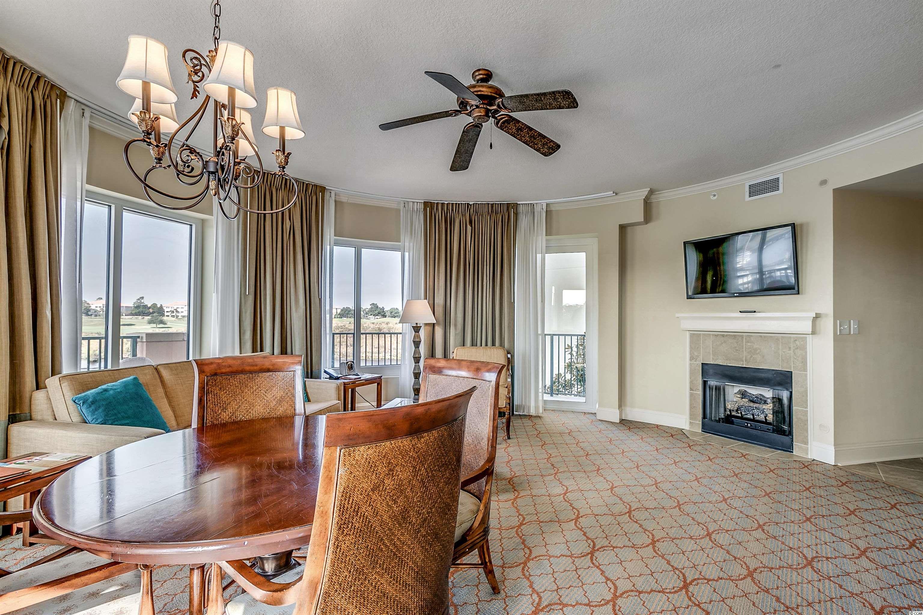 Private wrap around Balcony with Panoramic Views of the Pool, Marina and Golf Course. This unit is a rare find at the Marina Inn having the full wrap around balcony. Feels like home with a lovely Fireplace, Beautiful kitchen with a huge oval sized living area. Two Large Tile Bathrooms with Double Sink with Separate Glassed In Showers. Full Kitchen includes full sized refrigerator, Microwave, Full Sink, Oven, Dishwasher & all Utensils. Washer/Dryer. Over-sized Closets in each Bedroom with plenty of storage. This unit has amazing views of the waterway and marina along with the golf course. Absolutely bring all your clients if they are wanting a breathtaking view along with the quiet feeling of home. Currently on the onsite Rental Program at the Marina Inn a first class hotel and convenient to everything that Myrtle beach has to offer. Tommy Bahama Upscale Amenities and near all Myrtle beach attractions like Tanger outlets and Broadway at the beach. Do not miss out on this opportunity. The unit also has full membership included in the HOA for the Ocean Club on the ocean. Unit had HVAC replaced in September 2021.