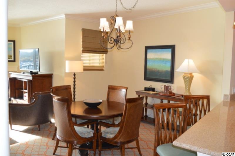 Luxury 2BR/2BA condo at The Marina Inn at Grande Dunes overlooking the yachts in the marina, the Intracoastal Waterway, and the Grande Dunes golf course. Located in the prestigious 2000 acre Grande Dunes master-planned community, The Marina Inn is a AAA Four Diamond rated resort, one of only a handful on the entire Grand Strand. The condo itself is spectacular. The spacious layout includes two private balconies - one off the living room and one off the master bathroom - both with gorgeous views. Interior features include granite counter tops in the kitchen and baths, 9 FT ceilings, upscale designer furnishings, custom cabinets, crown molding, fireplace, ceramic-tiled shower and bath areas, and double vanities in both bathrooms. This is an over-sized 2BR floor plan with a very large dining area and an extra window. Grande Dunes itself is amazing. Dining is available at Ruths Chris, Waterscapes Restaurant and The Anchor Caf perched over the Intracoastal Waterway. Other highlights include several bars, including a seasonal pool bar, a lushly landscaped outdoor pool overlooking the marina, an indoor pool, a fitness facility, lavishly decorated common areas and lobbies, expansive meeting spaces, and an elegant onsite rental management check-in area. The lobby is staffed 24-hours a day and there is 24-hour security. Concierge and valet services are available to guests. The 126-slip Marina at Grande Dunes is one of the finest full-service facilities on the east coast. Ownership at The Marina Inn at Grande Dunes includes membership in the Grande Dunes Ocean Club, featuring an exquisite oceanfront clubhouse with impressive architecture, oceanfront dining, multiple pools and private beach access. Although the Ocean Club is only available to Grande Dunes Owners, guests of the Marina Inn rental management have shuttle access to the oceanfront. Other features of Grande Dunes include two award-winning golf courses and the acclaimed Tennis Club with Har-Tru courts, a state-of-the-art fitness center, pool and more. The Marina Inn is tucked away in the peaceful, upscale north end of Myrtle Beach but is close to major attractions such as Broadway at the Beach, the Tanger Outlet Mall, Ripleys Aquarium, Pirates Voyage, Carolina Opry, Barefoot Landing, and Restaurant Row. The HOA fee includes building insurance, HO6 insurance, unit electric, water/sewer, internet, cable, phone, membership to the Ocean Club, and all maintenance/upkeep of the awesome amenities and common areas. All information is deemed correct, but it is the responsibility of the buyers and their agent to verify all information.