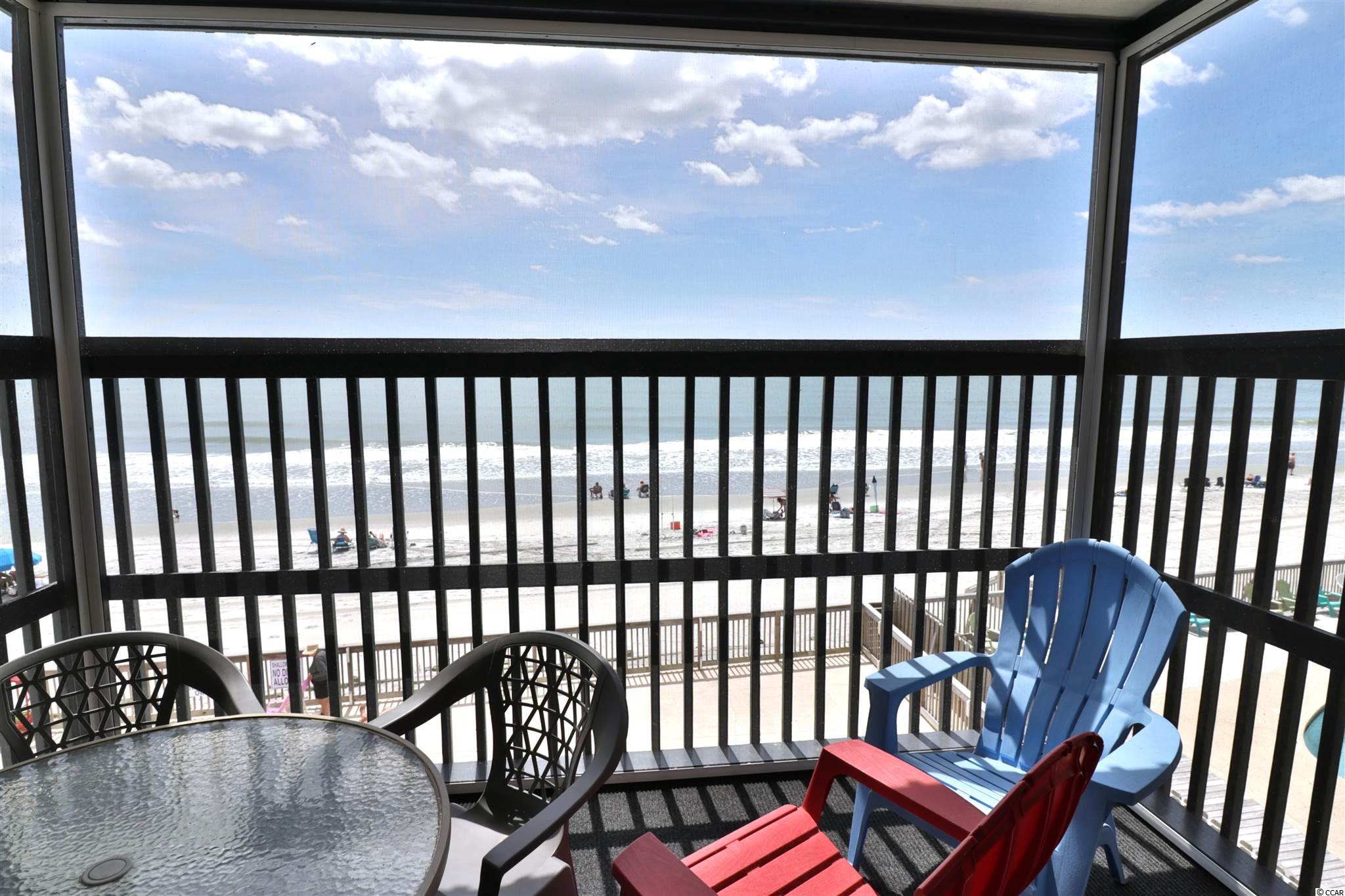 Direct Oceanfront Corner unit for sale in the popular complex Sea Oaks. New updated screened oceanfront balcony with access from living room. Freshly painted & new furnishings convey. Under building parking and private storage unit for your beach gear and golf clubs. This unit has the extra window for rays of sunshine. Covered oceanfront gazebo & oceanfront pool area makes this condo a DREAM come true. come true. Walk to Garden City Pier as only half a mile from condo. Furbabies are welcome and motorcycles (owners only).