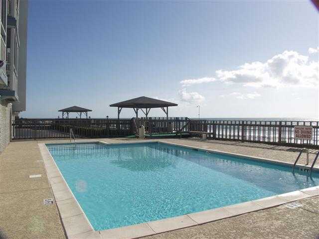 Ocean front, 2 bedroom, 2 bath, corner unit with a private, ocean front screen porch accessible from the living area and master bedroom suite. Condo is nicely decorated complete with stainless steel appliances and for your convenience there is a front load washer and dryer. Complex has an elevator, plenty of parking and an large ocean front pool with decking and gazebos. Don't miss seeing this one!
