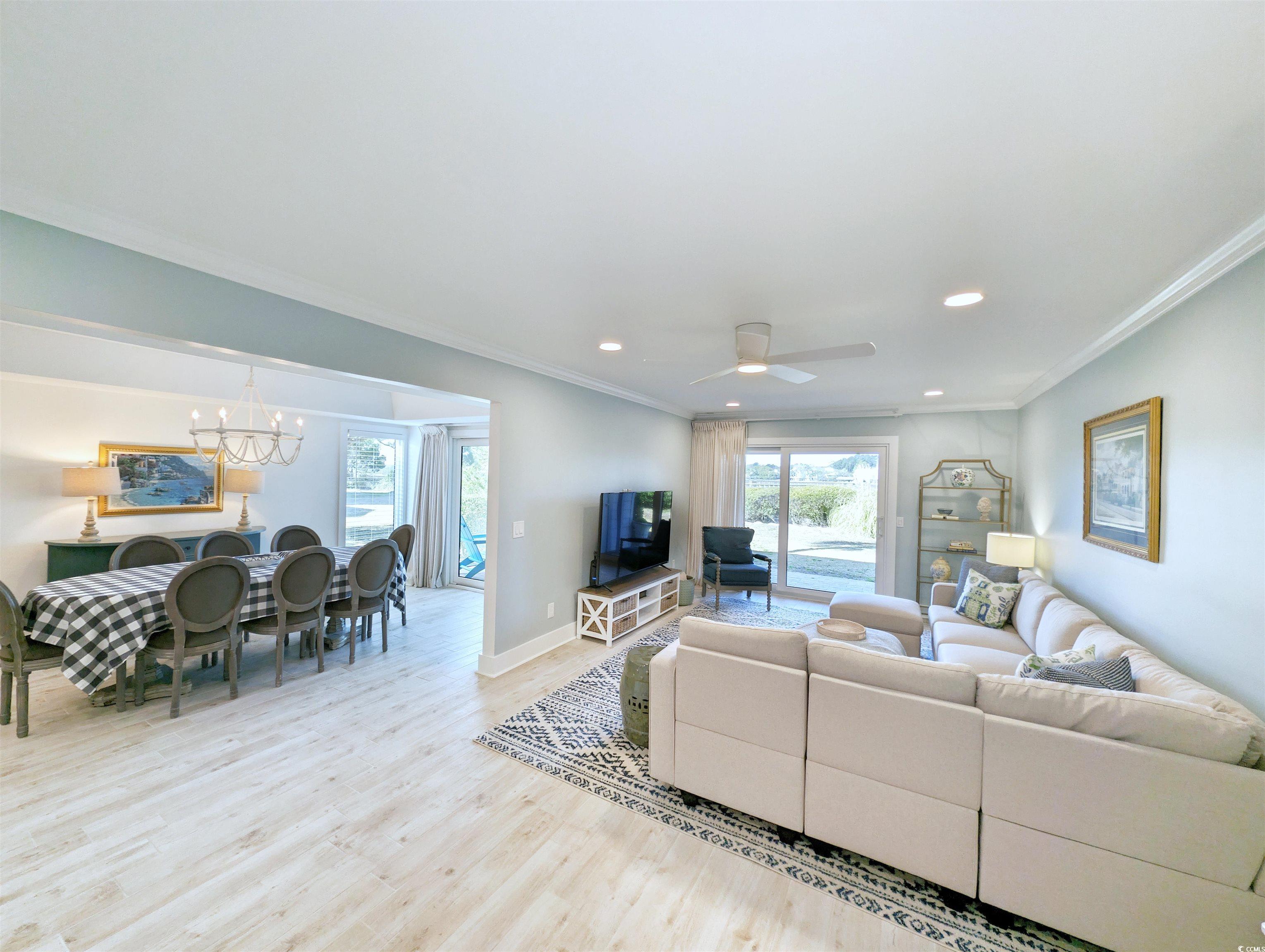 Extremely well maintained, marsh front villa, located in desired gated Inlet Point in Litchfield Beach. You will notice the pride of ownership immediately as you enter this 3 bedroom, 2 1/2 bathroom updated villa. Views of the marsh and salt creek from the great room, kitchen, dining room, upstairs marsh front bedrooms, multiple covered (and screened-in) porches, and patio areas. Comfortable great room with large screen TV and plenty of seating, dining room with seating for 8, wet bar, kitchen with granite counter tops, stainless steel appliances, and breakfast bar. Two closets in each bedroom and extra storage space under the stairway with 2 access points. Recent updates to include new exterior siding, roof, HVAC, and windows (2023) and White Oak Stairway in 2022. Inlet Point Villas offer private beaches, 2 swimming pool areas, playground, and a fishing and crabbing dock. Inlet Point has 24 hour gated security as well. Inlet Point is close to area restaurants and nightlife, shopping, and area championship golf courses. Murrells Inlet is 2 miles north, Georgetown is 10 miles south, Myrtle Beach is 20 miles north, and Historic Charleston just 75 miles south. Make your appointment today to view this exceptional property!