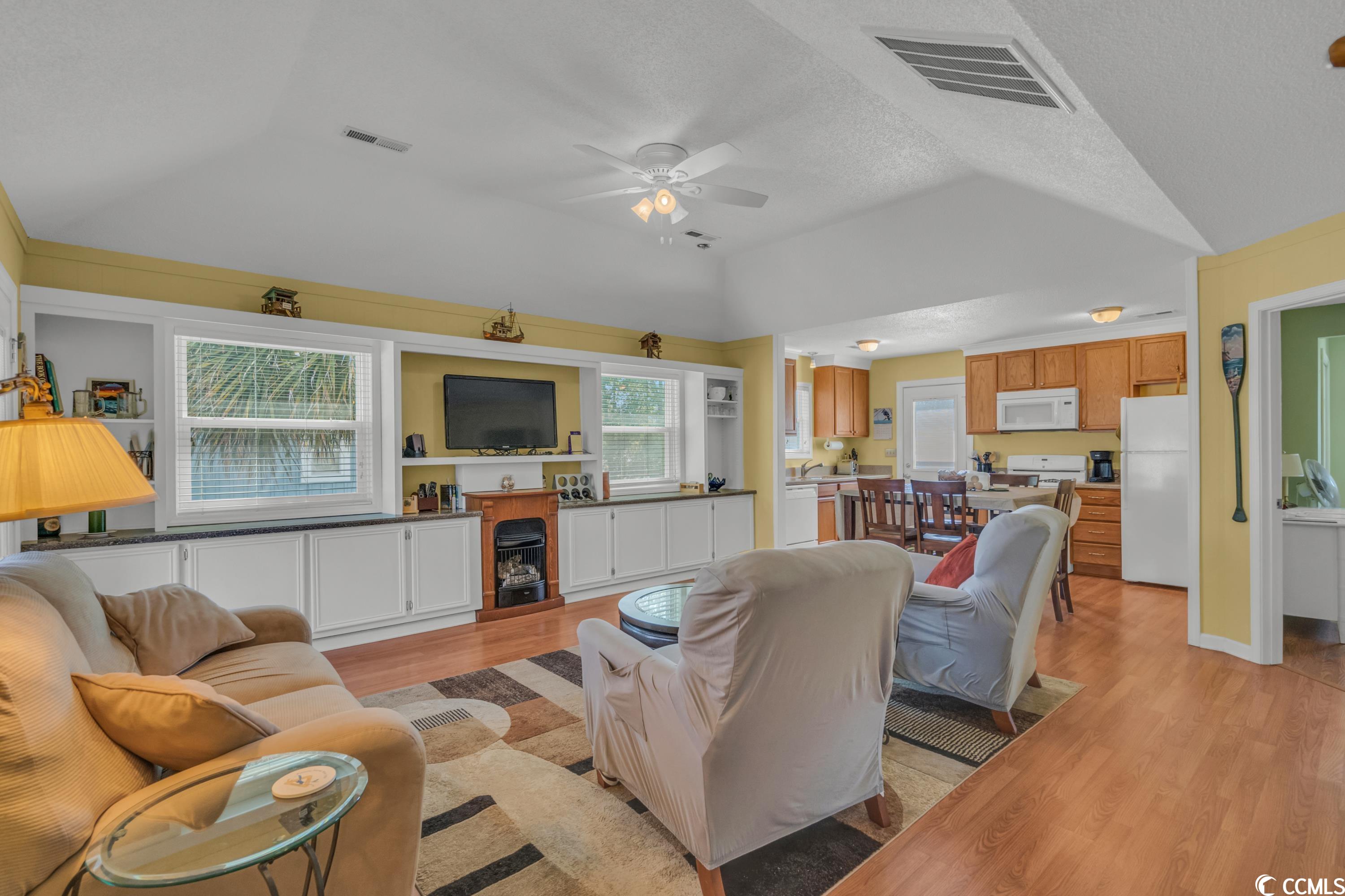 Come see this furnished 3 bedroom, 3 bath raised beach house with large storage area and large screened in porch under home. Walking distance to the beach! Seclusion and privacy throughout this wonderful Willow Creek community! Community pool as well! Located east of Hwy 17 and only a short golf cart ride to the beach! Enjoy the outdoor living in the front or back porch! All brand new siding on home, covered parking area, one full bath and one full bedroom downstairs with separate entrance, gutters, beautiful landscaping, laminate flooring and open floor plan. LOCATION is everything here with an easy golf cart ride everywhere: Walmart, Golfing, Restaurants, the Beach, fast food, CVS, Main Street with the festivals and parades, live music and more! Property also features a gas fireplace and tankless hot water heater! Short term Rentals of 120 days or longer are allowed.