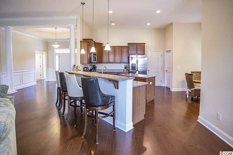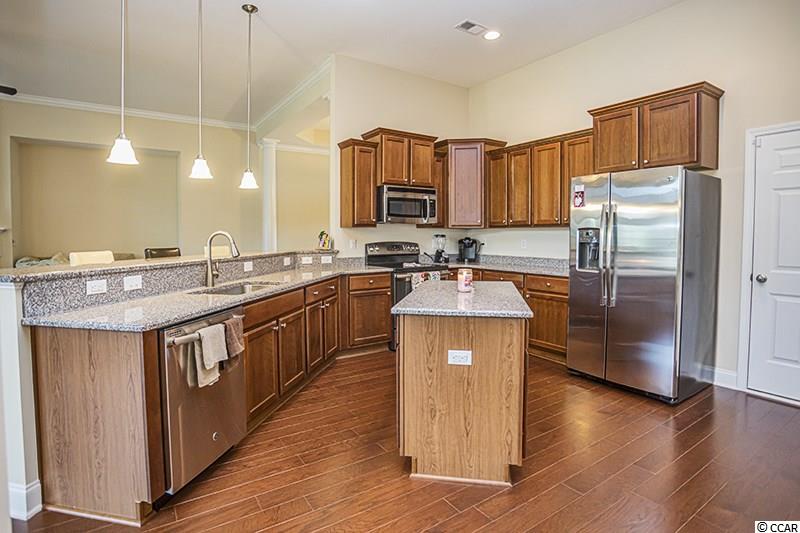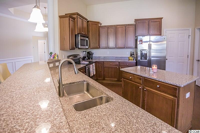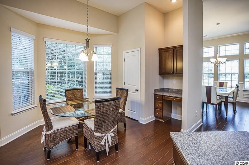 Better than new! Welcome home to this beautifully upgraded and move in ready 3 bedroom, 2.5 bath home in the desirable Lakes community! This highly sought-after Cumberland model home features an open floor plan with 11 ft ceilings, crown moldings and hardwood flooring throughout the living room, sun room, kitchen and dining areas. The foyer and formal dining area of this home features beautiful wainscoting! Beautiful floor to ceiling trim work surround the gas burning fireplace in the family room! The bright and airy sun room features an upgraded ceiling fan and leads to the 12x12 patio! The 20x16 kitchen features granite counter tops, stainless steel appliances, pendant lights, pantry and work island! A breakfast nook just off the kitchen features a bay window and built in desk with granite counter top! The master bedroom of the home features a tray ceiling with ceiling fan and a set of French doors which opens to the spacious master bathroom! The front guest bedroom of the home features a 3 ft extension! The huge 3 car garage has openers and pull down stairs to the attic of the home! The Lakes community is centrally located just a short drive from The Market Common, Murrells Inlet Marsh Walk, area beaches, dining, medical facilities and the Myrtle Beach International Airport. Do not pass up your chance to own this amazing home. Call today to schedule your showing!