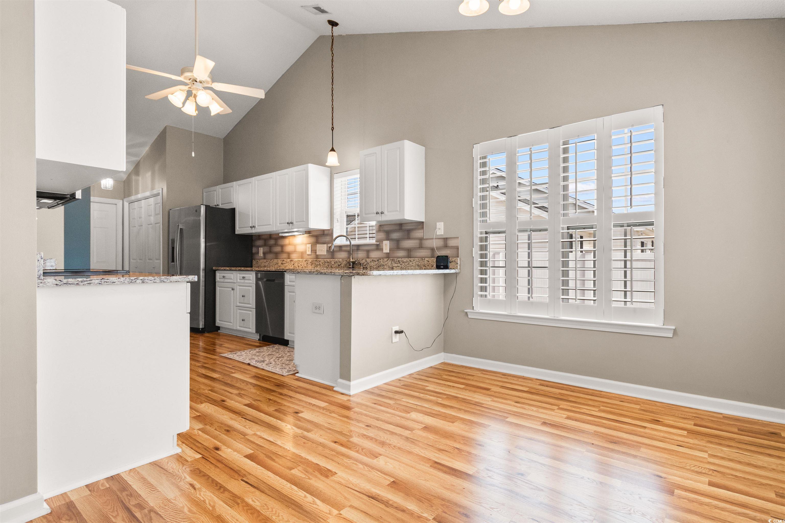 Charming Lakeview Home with Carolina Room & Screened Porch Nestled in a serene setting with breathtaking lake views, this beautifully maintained single-level home offers a perfect blend of comfort and convenience. Surrounded by lush, mature landscaping with fresh mulch, this home is truly a peaceful retreat. Home Features: NEW ROOF INSTALLED MAY 15, 2025 3 spacious bedrooms & 2 full bathrooms, Open-concept living with vaulted ceilings & abundant natural light, Laminate flooring throughout the main living areas, with tile in bathrooms & plush carpet in bedrooms, Custom paint, ceiling fans in every room & stylish plantation shutters/blinds, Expansive 10x13 Carolina Room with pocket doors leading to the living room, 10x11 screened porch with brand-new screening & an inviting patioperfect for relaxing outdoors, New screens on all windows for fresh air & natural light, A galley-style kitchen featuring: Vaulted ceiling & ample windows, Solid surface countertops & stainless steel appliances, White cabinetry & a cozy dining area, Master suite highlights: Vaulted ceiling & ceiling fan, Walk-in closet & spacious vanity, Large walk-in shower, Extra-wide driveway for additional parking, Fenced backyard, lawn sprinkler system & seamless gutters, Convenient walkways from the driveway to the back patio & front entrance. Enjoy stunning lake views from multiple rooms, including the Carolina Room, screened porch, and patio. Prime Location & Coastal Living: This home offers easy access to major highways (501, 707, 544, 17 Business & Bypass, 31, 22, and 9), making travel throughout the area a breeze. You're just minutes from everything the Grand Strand has to offershopping, dining, entertainment, healthcare, and world-class golf courses. Explore Market Common, Broadway at the Beach, Barefoot Landing, Brookgreen Gardens, state parks, piers, marinas, and the scenic Intracoastal Waterway. Best of all, the pristine white sand beaches of the Carolina coast are just a short drive away. Don't miss this incredible opportunity to own your own slice of paradise and embrace the relaxed coastal lifestyle. Schedule your showing today!