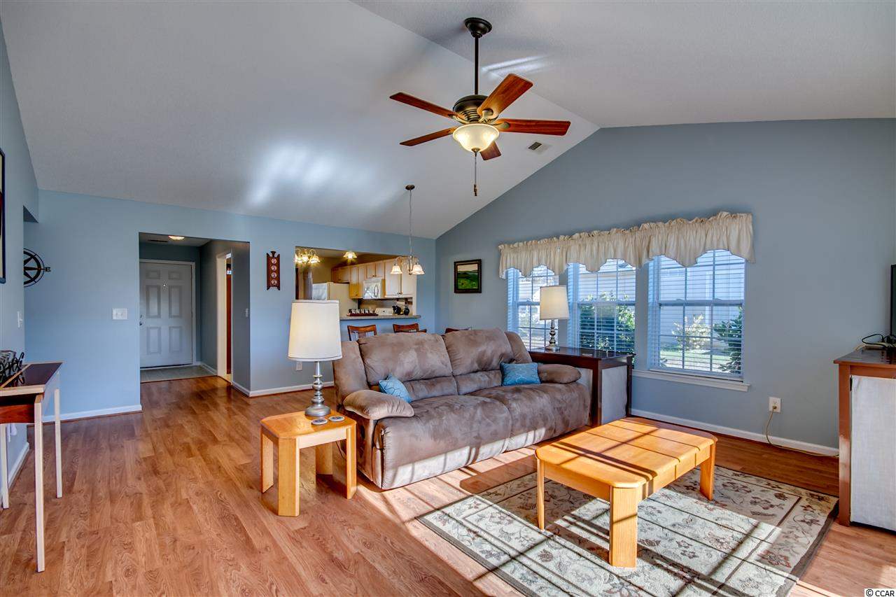 Looking for a move in ready home with a spacious yard. This home has all of that and a great location of Highway 707 with a short drive to the ocean at Surfside Beach Pier. This home shows like a model and you will be able to tell that it has been well cared for. The flooring throughout the entire home is in great shape, with wood laminate in the great room and foyer and new upgraded carpet in all 3 bedrooms. Enjoy how beautifully decorated this home is with a custom paint job throughout and an added pantry cabinet in the kitchen for additional storage. The open floor plan offers vaulted ceilings in the great room and master bedroom. A new hot water heater has been recently installed. The home also offers mature landscaping with complete irrigation system. You will definitely want to set an appointment to see this home. All information is deemed reliable but not guaranteed.