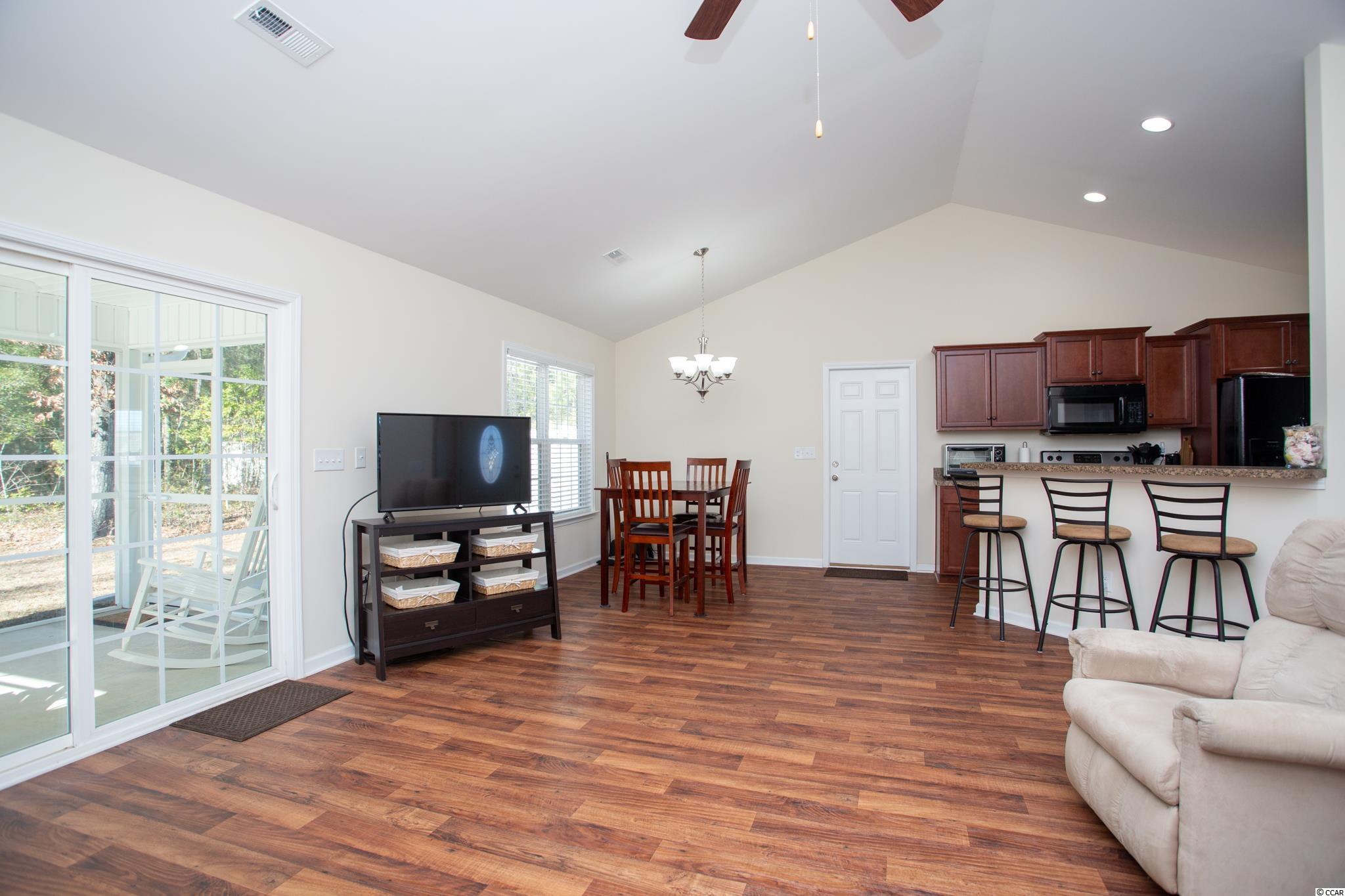 Like new home in the private gated community of Yauhanna Landing. Used only as a second home by the original owners this house is immaculate inside and out. There are vaulted ceilings in the living room and there is luxury vinyl plank flooring throughout the entire home. The breakfast area has a bay window with a nook and the kitchen comes with all of the appliances. The master bedroom has a tray ceiling, a large walk-in closet and a fan. The master bath has a extended vanity, a jetted tub and a high boy toilet. All of the window treatments are included along with the washer, dryer and chest freezer. This home does come partially furnished. There is a screened in porch and a extended patio outside overlooking the large private back yard. There is a small fenced in area if you would like to use it for a dog or whatever you choose. The garage is oversized ,insulated and there is a double driveway. A private community boat ramp is within the neighborhood. Yauhanna Landing is a small neighborhood just over the Horry County line away from the hustle and bustle of tourist season but not too far to get to the beach!