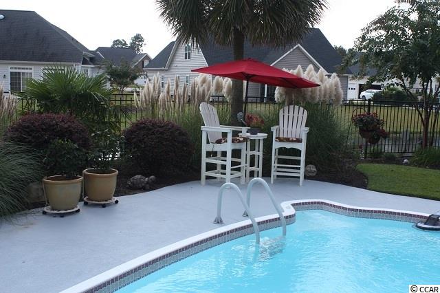 Stunning home located on a quiet cul-de-sac in Waterford Plantation. The main floor is spacious with both a formal dining room and an eat in kitchen with hardwood floors and custom tile work throughout. An eight-speaker custom sound system provides great entertainment both inside and on the patio. The kitchen has 42-inch custom cherry wood cabinets and black Silestone counters. The master suite is large with a separate shower and garden tub. In addition to two guest rooms, the main floor has an office/den that overlooks the pool. The kitchen and laundry appliances are all new. Upstairs is a spacious bonus room equipped with a built-in home theatre system. The garage floor is custom epoxy finish and has cable TV and two speakers from the whole home sound system. All windows are highlighted by Hunter Douglas blinds and custom drapes and the lights & fans are all designer quality. The landscaping was professionally designed and has been maintained to the highest standards to create an outside paradise. The in-ground pool is heated (in ground gas tank) and has a salt water system and the irrigation system in supplied by a separate well pump. The patio is shaded by a retractable awning and overlooks a pond. A central vacuum cleaner system makes housekeeping a breeze and the house is fully alarmed! This house is truly move in ready! The reasonable HOAs cover community pool gym, tennis courts and beach volley ball along with an active social committee.