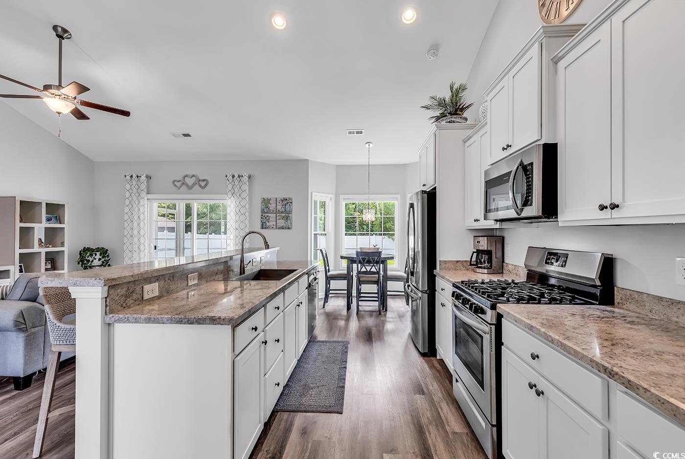 Welcome to this beautifully appointed single-story home nestled on a private wooded lot in one of the area's most highly desired communities (and this lot is big!). Enjoy the charm of wide streets and sidewalks perfect for evening strolls and neighborly connection, all within a community that offers a refreshing pool and reasonable HOA dues. Curb appeal shines with sleek white siding, upgraded landscaping, and a painted driveway, setting the tone for what awaits inside. Step into an open-concept layout featuring hard-surface flooring throughout, white cabinetry, and a modern kitchen with natural gas cooking and stainless steel appliancesperfect for everyday living and entertaining alike. Privacy and space are hallmarks of this property, with elbow room between homes, privacy fencing, and a wooded buffer at the rear offering peace and seclusion. The huge screened-in porch invites you to relax outdoors year-round. Additional highlights include upgraded blinds throughout and a remote-controlled blind on the rear sliding door. And with no stairs to navigate, this home is ideal for those seeking convenience and accessibility. Don't miss this rare opportunity to own a home that combines modern comfort, style, and privacyall in a welcoming community setting!