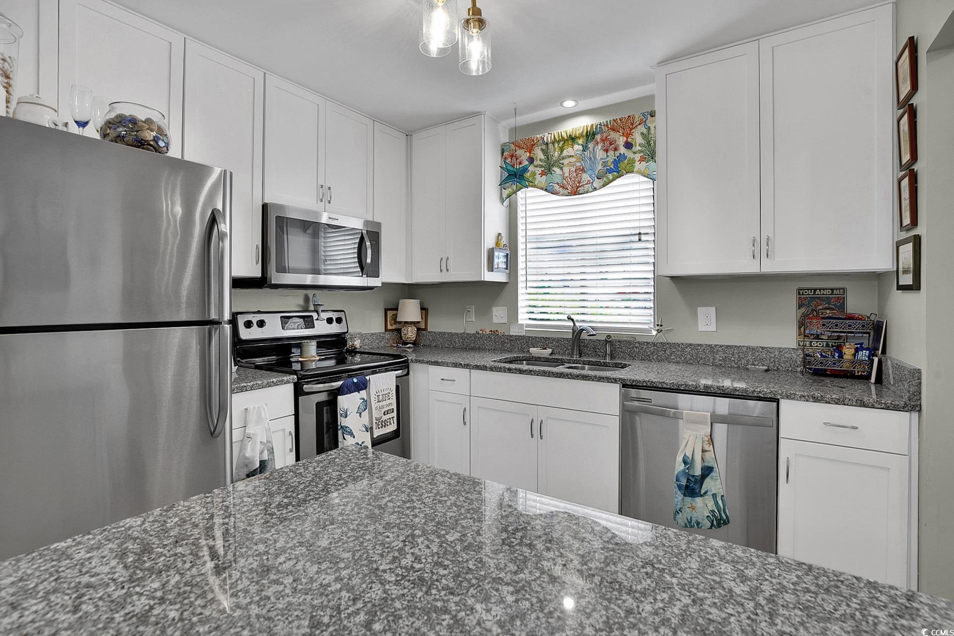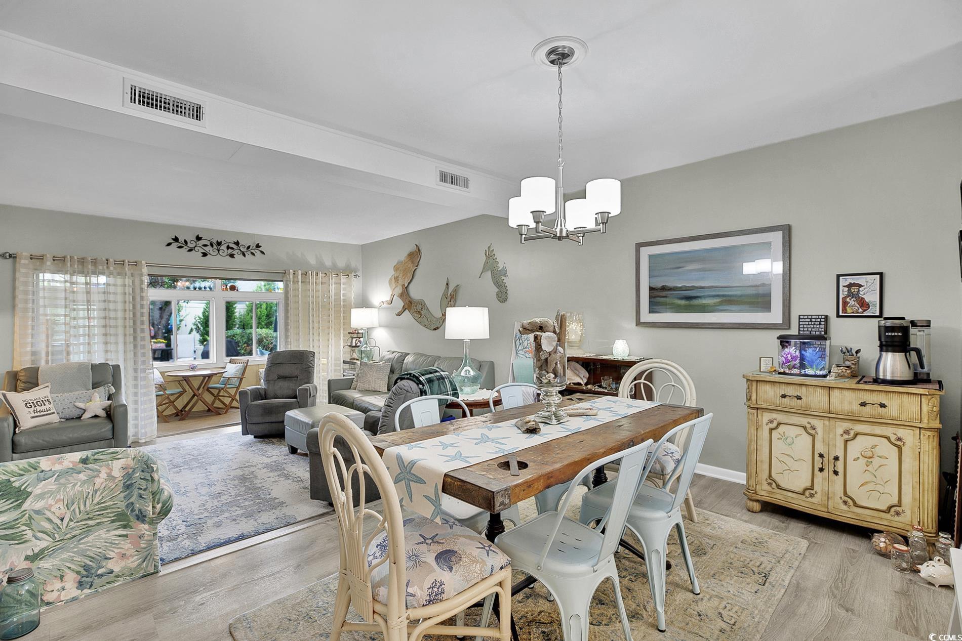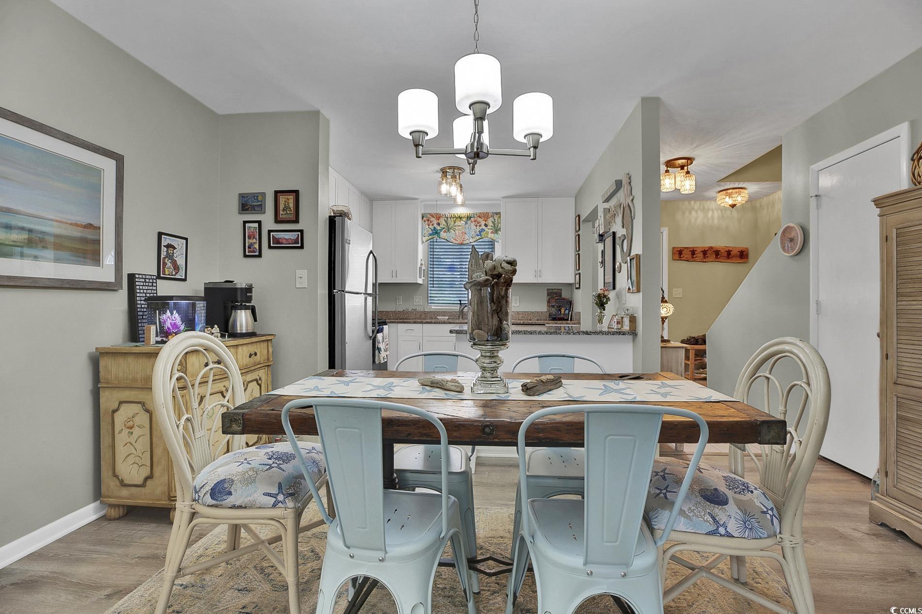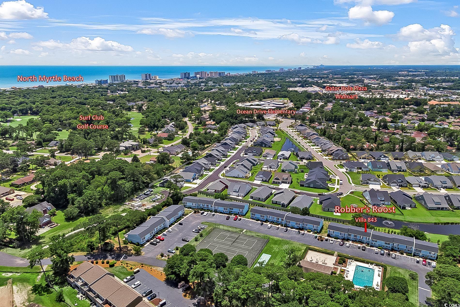 Welcome to 843 Villa Drive, a beautifully upgraded 2-bedroom, 2.5-bath townhome in the highly sought-after Robbers Roost community, ideally situated east of Highway 17 in the tranquil Tilghman Estates of North Myrtle Beach. This thoughtfully designed condo offers an open-concept floor plan, featuring a spacious kitchen that flows seamlessly into the living and dining areas, a convenient half bath, and a bright sunroom with sliding glass doorsperfect for year-round enjoyment. The private laundry area is located off the Carolina room. Upstairs, youll find two well-appointed bedrooms each with their own full bath. The master bedroom boasts a large private deck overlooking serene, landscaped surroundingsideal for morning coffee or evening relaxation. Recent upgrades throughout highlight modern living, making this home move-in ready. Robbers Roost is a golf-cart-friendly community that allows both short- and long-term rentals, making it an excellent investment opportunity. Just minutes from Cherry Grove Beach, top-rated schools, the new Publix grocery store, Hobby Lobby, TJ Maxx, and fantastic local restaurants with vibrant happy hours and fine dining options. Plus, a public boat launch is only five minutes away, giving you direct access to the beautiful Intracoastal Waterway. Whether youre looking for a rental property, a second home, or your primary residence, 843 Villa Drive offers the perfect blend of comfort, convenience, and coastal lifestyle. Dont miss your chance to make it yours! **New heating and AC unit 2022** **All popcorn ceilings removed 2022** **Updated 2022**