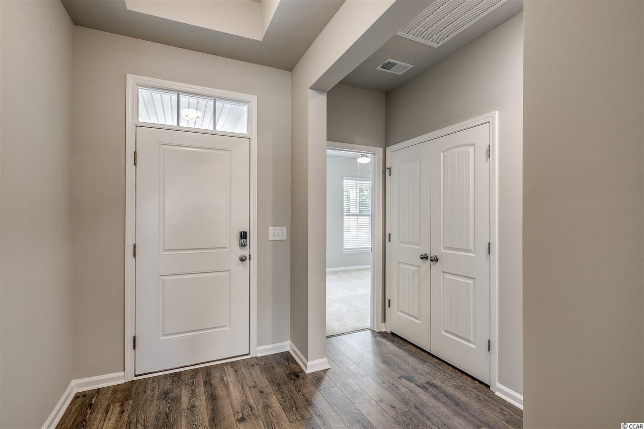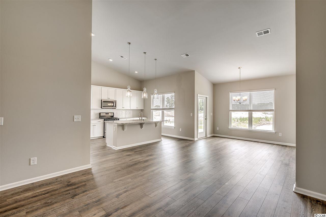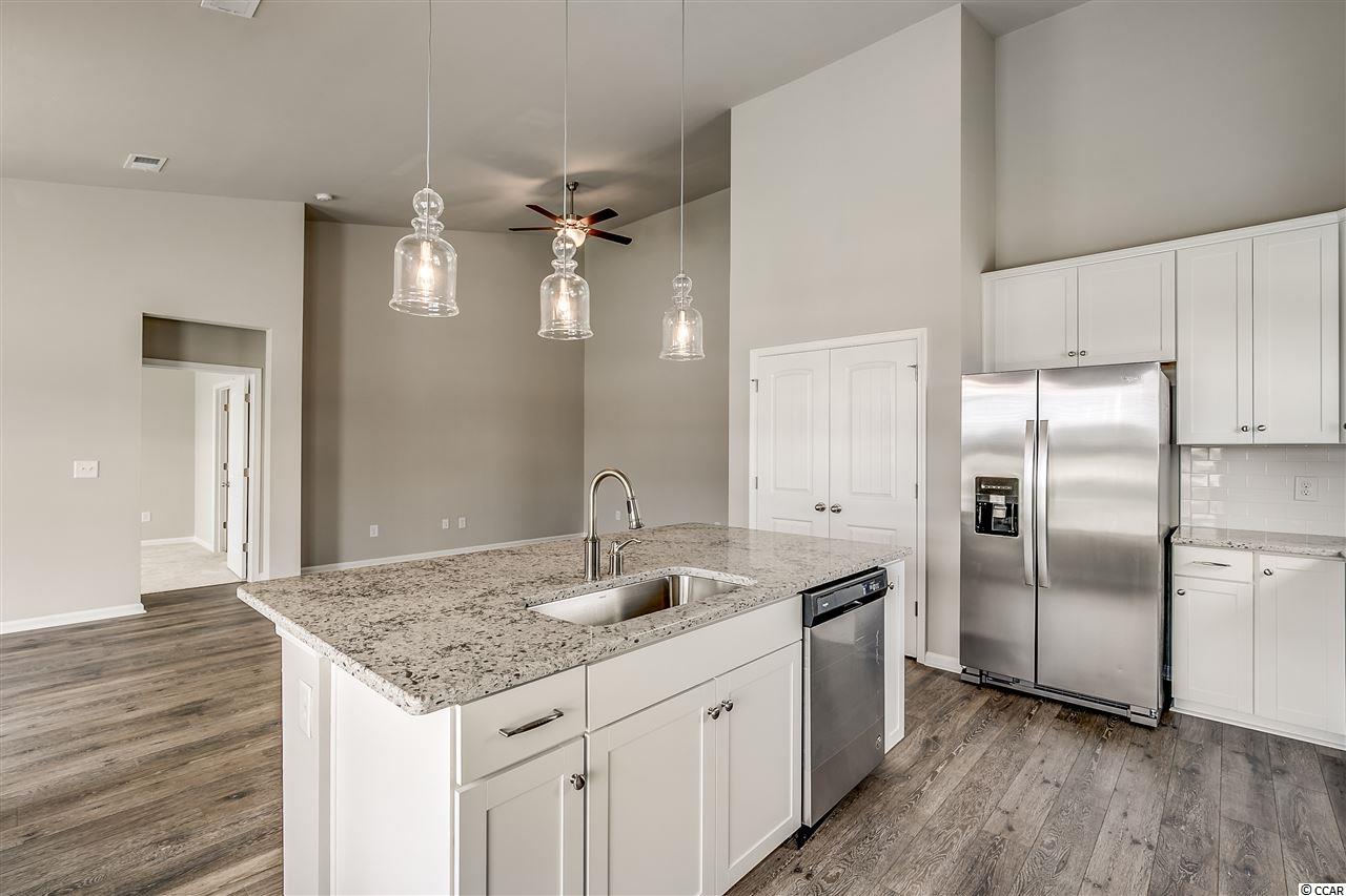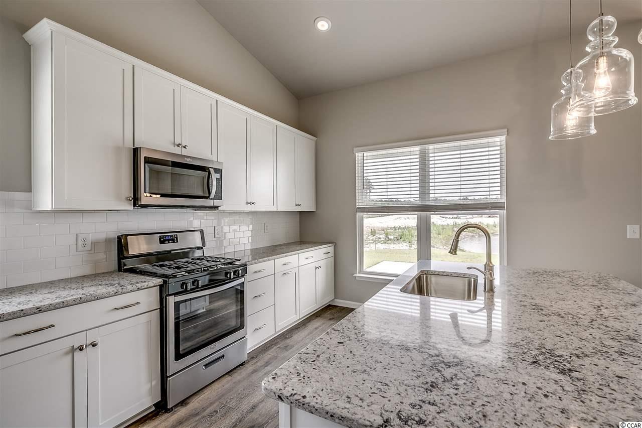 Move in Ready!! Split floor plan, 42"" white kitchen cabinets with quartz counter tops in kitchen, RevWood flooring in main areas, tile in wet areas, Carpet in bedrooms. Ceiling fans in all bedrooms and great room. Refrigerator, Washer/Dryer, Gutters, and blinds on all windows. Master bath has dual raised vanity with tiled shower and large closet! Front porch and back porch with pond view and patio for grilling. Natural Gas community so every home comes with gas range, water heater, and gas furnace! We are only minutes to the beach, Close to shopping and lots of restaurants. At completion our neighborhood will have ONLY 180 homes, featuring a quaint and coastal life style.
