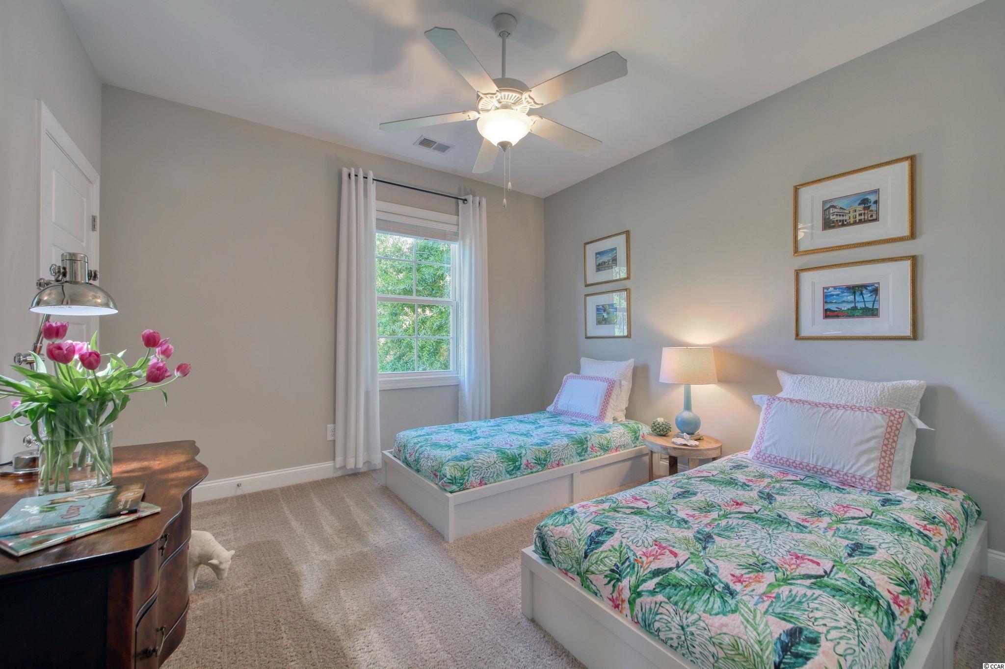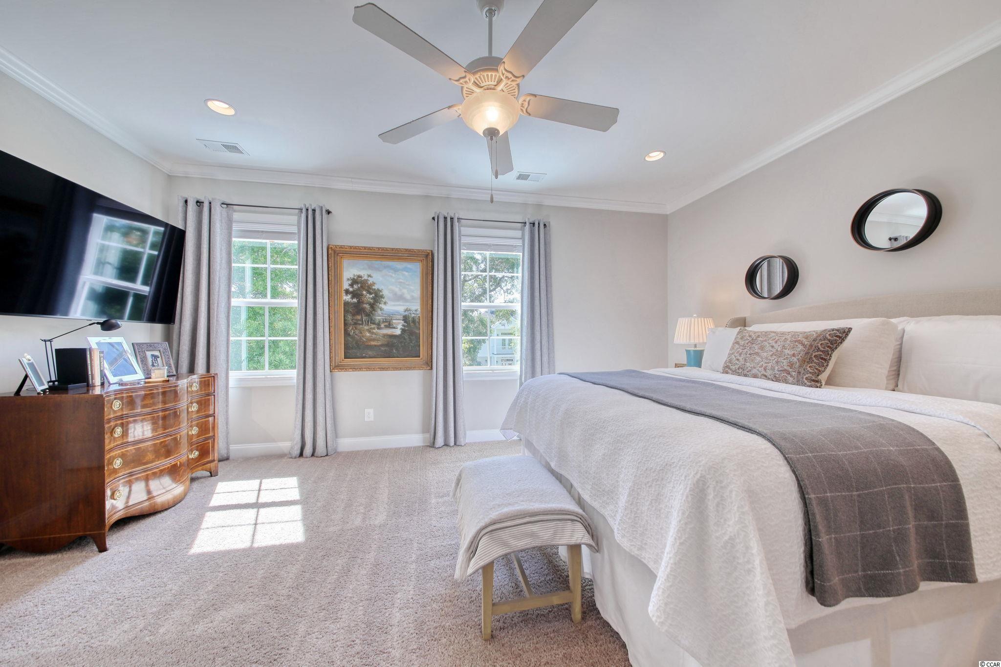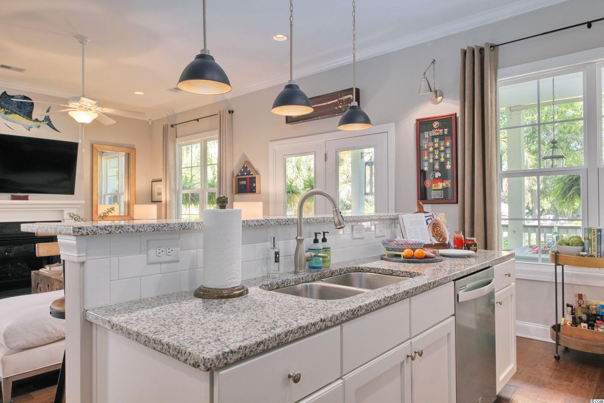 Beautiful raised beach home in the quaint marsh front neighborhood of Litchfield Breezes. Located 70 miles north of Charleston, SC and 20 miles south of Myrtle Beach this small community is convenient to excellent schools, shopping, restaurants, and medical facilities. 85 Windy Lane is a Charleston style home with front and back covered porches and a light filled open floor plan with 10-foot ceilings on the main floor and 9-foot ceilings on the third floor. The main floor has recessed lighting in the living areas and contains a carpeted and tiled master suite with 2 walk-in closets, a garden tub, walk-in shower, and dual sinks with a granite countertop. The remainder of this floor has hard wood flooring. This area consists of a foyer, a half bath, walk-in laundry room, and a large light filled dining room. There is also a spacious 16x29 foot open family room/kitchen area. The kitchen has granite counter tops, stainless steel sinks and appliances, a gas stovetop, hardwood cabinets, a pantry, and an 8-foot breakfast bar. The family room has a beautiful gas fireplace and opens onto a 10x30 foot covered porch with a ceiling fan and wood floors. The second floor has carpet and tile. This floor has a 2nd master suite with a large walk-in closet, a walk-in shower, garden tub, and dual sinks with a granite countertop. Additionally, this floor has a large, open office/media area, 2 more light filled bedrooms, a full bath, and a 2nd walk-in laundry room. The house sits on a beautiful corner lot in the cul-de-sac community. The landscaping contains 22 palm trees, large azaleas, jasmine, live oaks, crepe myrtles, olive trees, and giant African iris. There is inground irrigation and extensive landscape lighting. The large back yard is the perfect spot for a swimming pool! The ground floor of the house is a 3-car garage with a storage room and enough space for a boat and fishing/golf/beach gear. There is also a 10x30 foot covered patio at the back of the garage that provides easy access to the spacious back yard. The home was built with elevator shafts from the garage to the third floor and can be converted to an operational elevator if desired. There is also an on-demand propane water heater so you never run out of hot water!