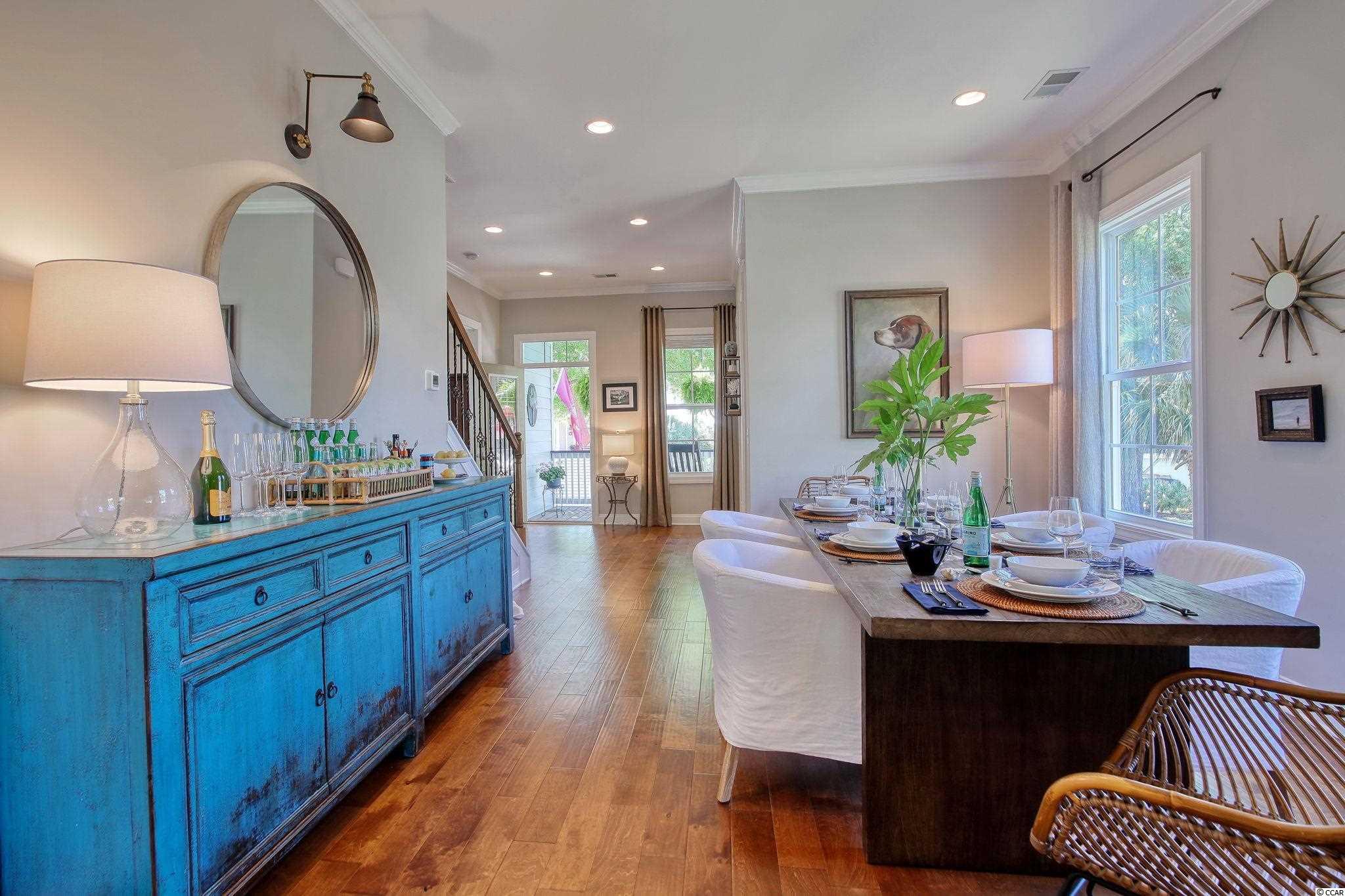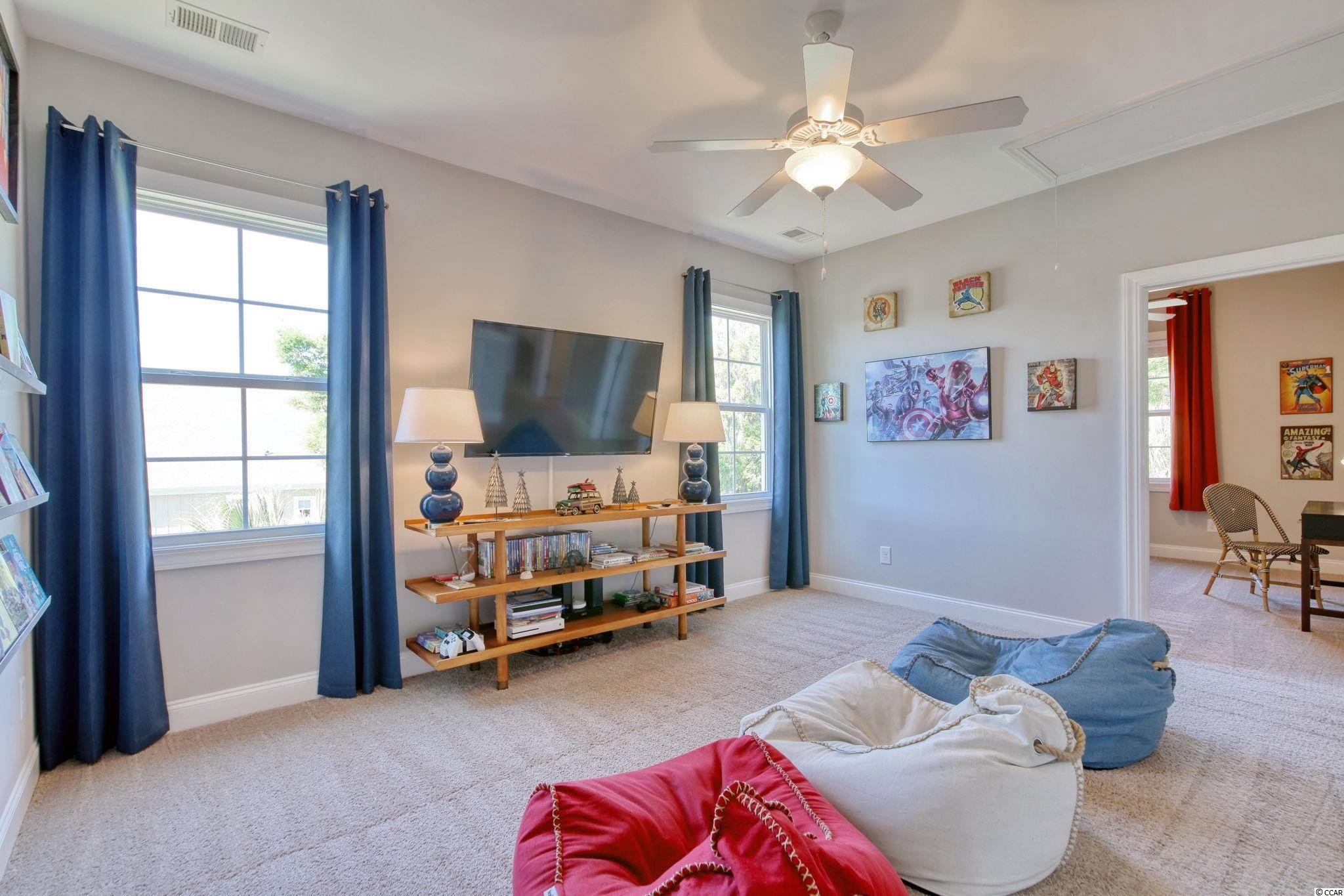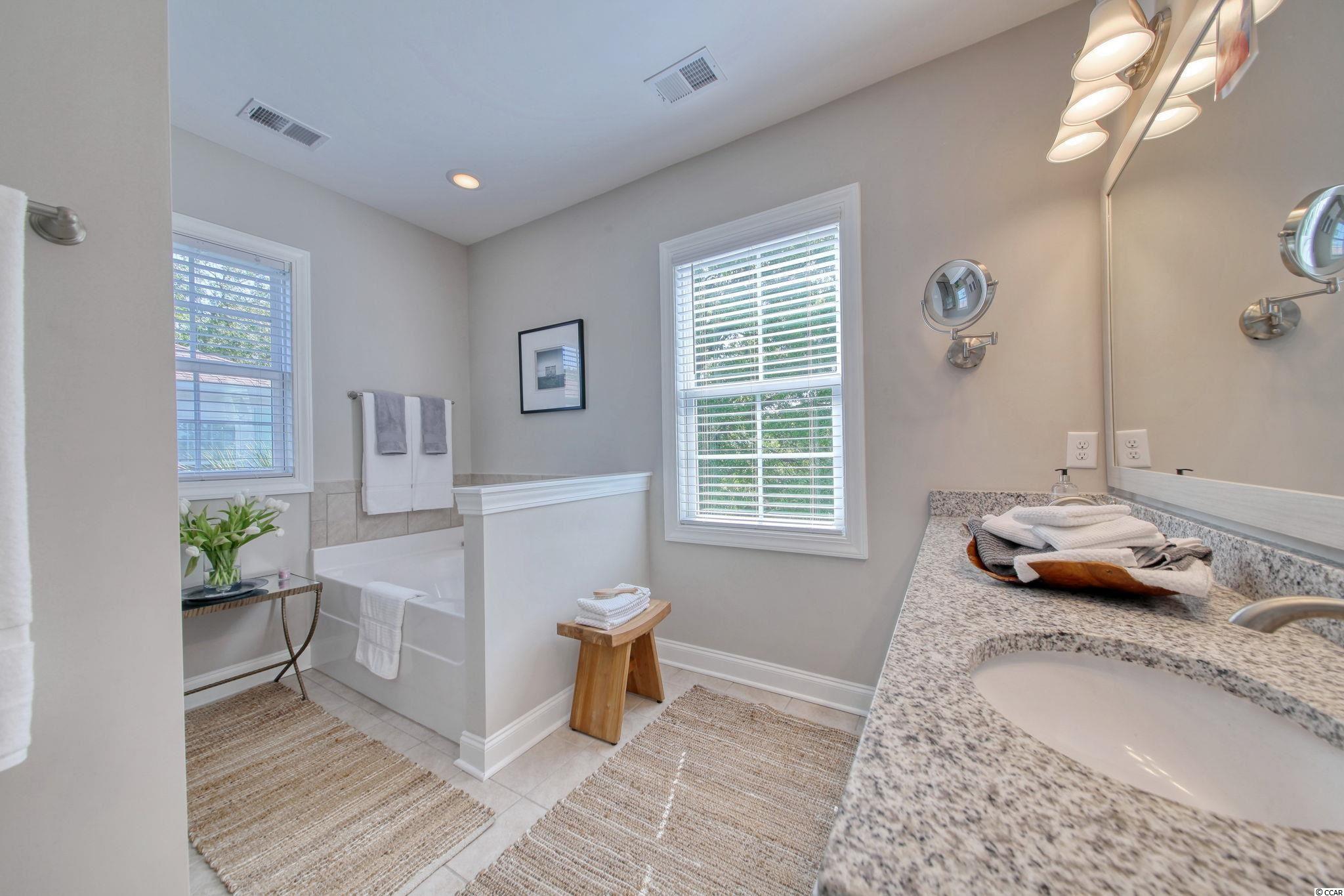 Beautiful raised beach home in the quaint marsh front neighborhood of Litchfield Breezes. Located 70 miles north of Charleston, SC and 20 miles south of Myrtle Beach this small community is convenient to excellent schools, shopping, restaurants, and medical facilities. 85 Windy Lane is a Charleston style home with front and back covered porches and a light filled open floor plan with 10-foot ceilings on the main floor and 9-foot ceilings on the third floor. The main floor has recessed lighting in the living areas and contains a carpeted and tiled master suite with 2 walk-in closets, a garden tub, walk-in shower, and dual sinks with a granite countertop. The remainder of this floor has hard wood flooring. This area consists of a foyer, a half bath, walk-in laundry room, and a large light filled dining room. There is also a spacious 16x29 foot open family room/kitchen area. The kitchen has granite counter tops, stainless steel sinks and appliances, a gas stovetop, hardwood cabinets, a pantry, and an 8-foot breakfast bar. The family room has a beautiful gas fireplace and opens onto a 10x30 foot covered porch with a ceiling fan and wood floors. The second floor has carpet and tile. This floor has a 2nd master suite with a large walk-in closet, a walk-in shower, garden tub, and dual sinks with a granite countertop. Additionally, this floor has a large, open office/media area, 2 more light filled bedrooms, a full bath, and a 2nd walk-in laundry room. The house sits on a beautiful corner lot in the cul-de-sac community. The landscaping contains 22 palm trees, large azaleas, jasmine, live oaks, crepe myrtles, olive trees, and giant African iris. There is inground irrigation and extensive landscape lighting. The large back yard is the perfect spot for a swimming pool! The ground floor of the house is a 3-car garage with a storage room and enough space for a boat and fishing/golf/beach gear. There is also a 10x30 foot covered patio at the back of the garage that provides easy access to the spacious back yard. The home was built with elevator shafts from the garage to the third floor and can be converted to an operational elevator if desired. There is also an on-demand propane water heater so you never run out of hot water!