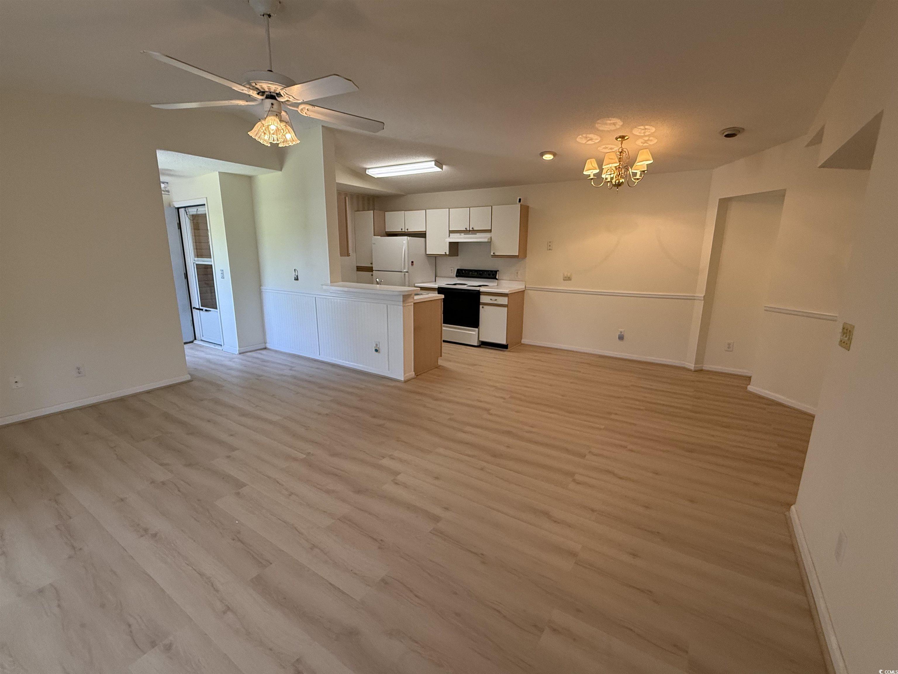 Spectacular view of the serene pond and surrounding tree line from this top floor, spacious 3BD/2BA end unit condo. The open-concept great room flows effortlessly into the dining area, kitchen, and Carolina roomall enhanced with brand-new luxury vinyl plank flooring. The primary suite provides a peaceful retreat with a private ensuite bath, while two additional bedrooms and a full guest bath offer plenty of space for family or guests. A dedicated laundry room accommodates a full-size washer and dryer for added convenience. Enjoy the quiet charm of the community pool without the usual noise. The low HOA fee covers property insurance, basic cable, internet, water/sewer, and trash removaloffering exceptional value. Conveniently situated just off Holmestown Road, you're only minutes from the Surfside Beach oceanfront. Walk to nearby grocery stores or quickly access Hwy 17 Bypass to experience all the Grand Strand has to offer. Embrace the coastal lifestyle in comfort and style!