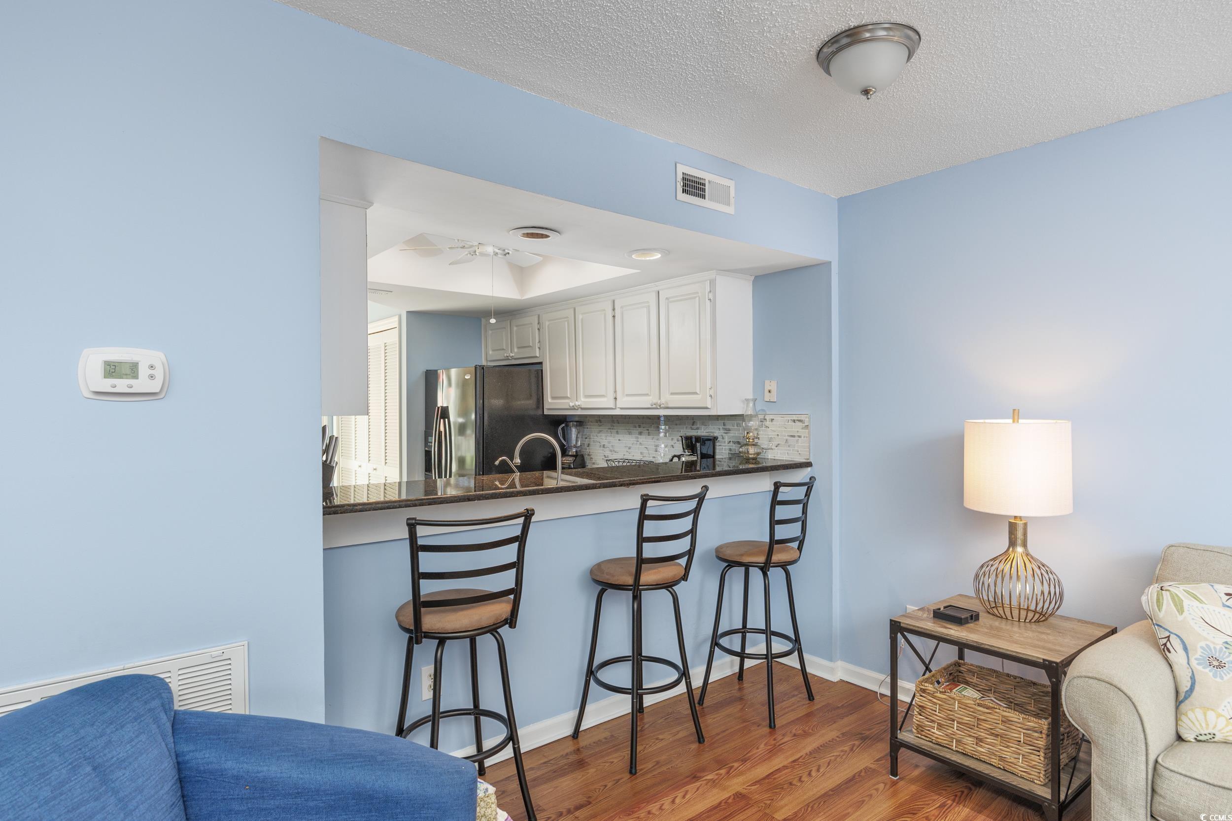 NEW PRICE AND MOVE IN READY!! Located in North Myrtle Beach and the Coastal Town Center North, this well-maintained 2BR/2.5BA unit features plenty of space to finally enjoy that dream beach home this fall and be ready for spring 2026! You'll feel right at home in the kitchen with granite counters, tiled backsplash, and plenty of room for seating guests in the breakfast area and breakfast bar. Of course, there's outside dining on the screened back porch to relax in the evening! Forgot something and need to go to the store? Jump on your golf cart and you'll be right at all the stores that Coastal Town North offers. Custom upgrades in both master and guest bathrooms with tile and vanities. This home is move-in ready so all you have to do is relax and enjoy coastal living!