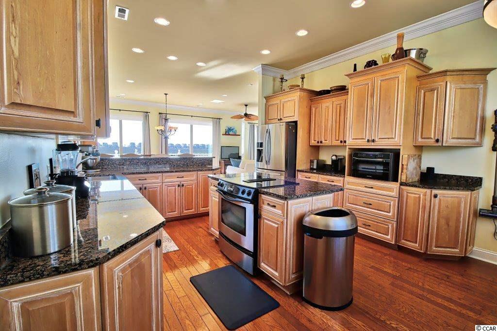 Views, Views, Views! This home was designed to maximize the panoramic views of the salt marsh, Clubhouse Creek, the waves breaking through the jetties between the Litchfield Peninsula and historic Pawleys Island, and the Atlantic Ocean beyond From your oversized garage, take your in-home elevator to the master suite level, which features ocean and salt marsh views, or up one more level to your open living area and kitchen with expansive, permanent, awe-inspiring views of the Atlantic Ocean. The open concept living/dining/kitchen makes entertaining your friends and family a breeze, and around the corner you will find a second master suite with private balcony, providing luxurious (and separate!) accommodations for overnight guests. The large kitchen features an island, upgraded cabinetry, granite countertops, and a down-draft Jenn Air range. The master suite level contains two additional bedrooms, a laundry room, and a third full bath. The master bedroom features walk-in closet, jetted tub, double vanity, separate shower, and French doors leading to the second-floor deck which runs the length of the home. The two large porches across the back of the house provide the perfect place to sit and take in the beauty of the salt water marsh, where you can see and hear the waves of the Atlantic Ocean. A photographers dream, the marshland provides a natural sanctuary for dozens of species of birds. The massive two bay garage features 2 lockable rooms for storage. The garage is also double-depth on one side, allowing for enclosed tandem parking for that third beach vehicle/jeep/convertible or boat. All bedrooms have new carpet, and there are many recent updates including garbage disposal, dishwasher, microwave, and upgraded water heater in 2016, as well as a new top story HVAC unit in 2017. The exterior of this home is immaculate and features a late 2018 refresh (including new paint, caulking, and exterior light fixtures) by one of the areas preeminent paint contractors. Large panel sliding doors featuring UV-coated glass were installed shortly thereafter to minimize glare and maximize long-range views. Beautiful landscaping and gardens make the home feel warm and welcoming, and the back yard has plenty of room to add a pool if you so desire. Litchfield Breezes is a beautiful, hidden community featuring a low monthly HOA which includes digital cable and high speed (200 mbs) internet. No rental restrictions!