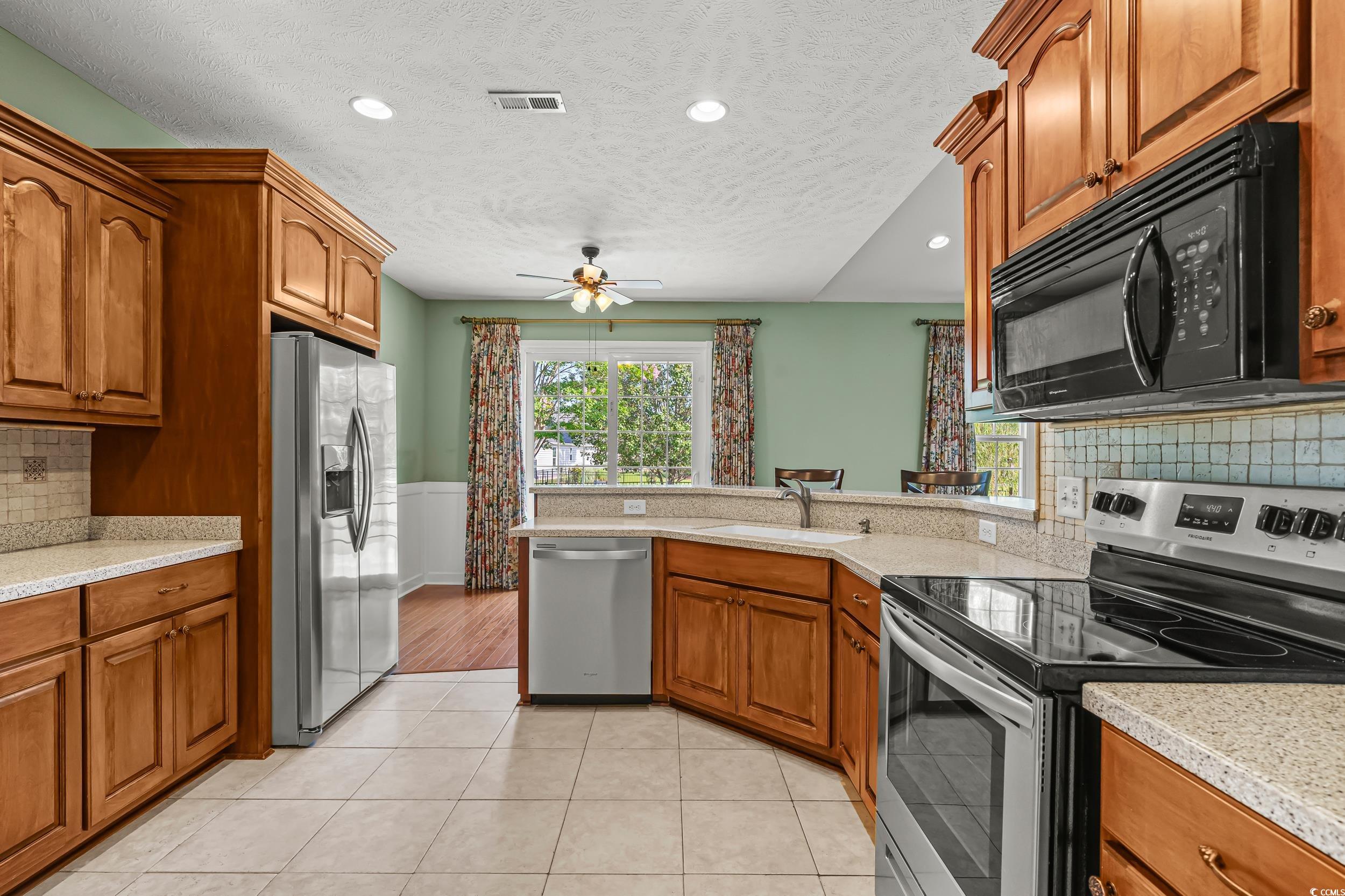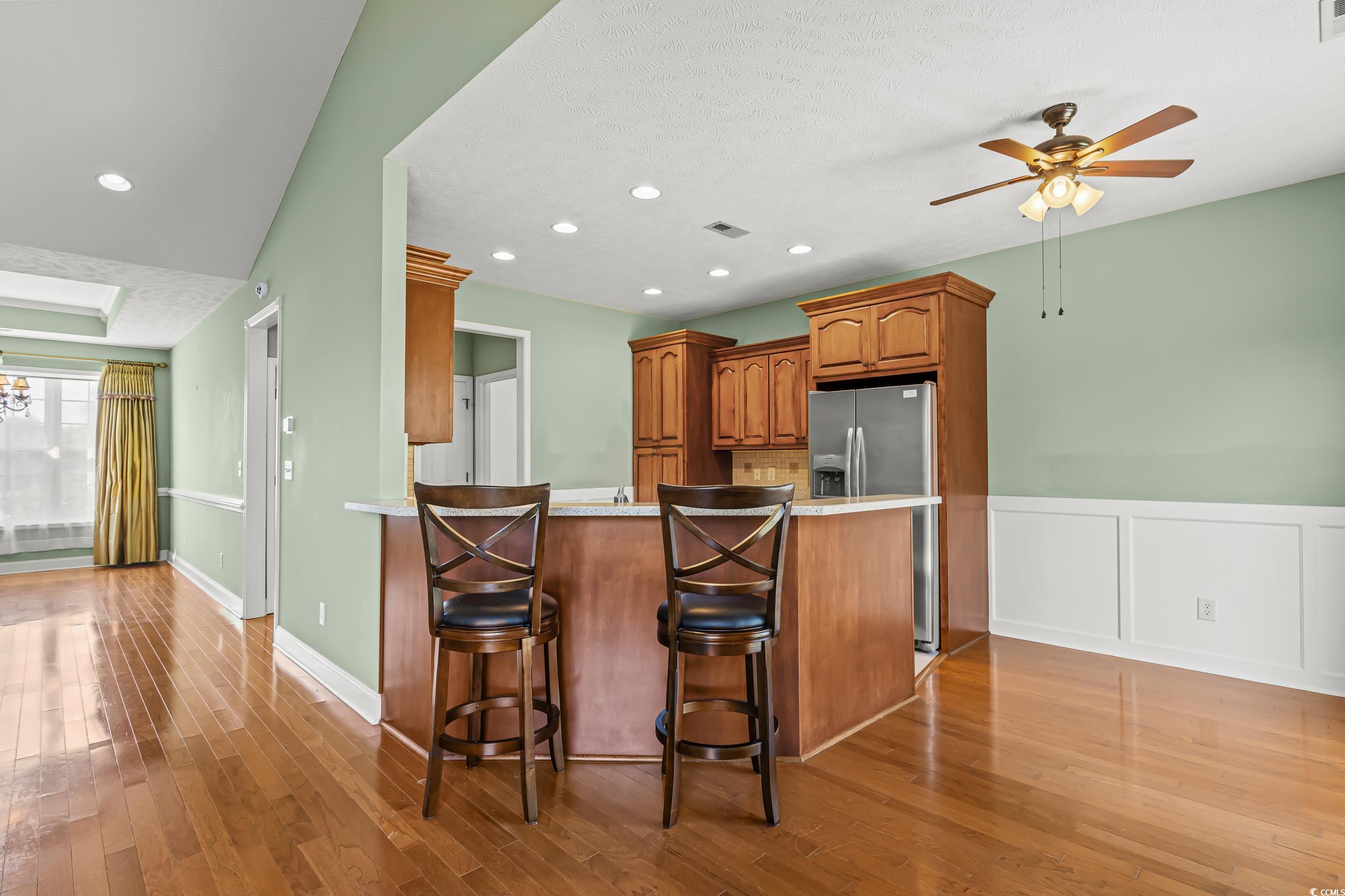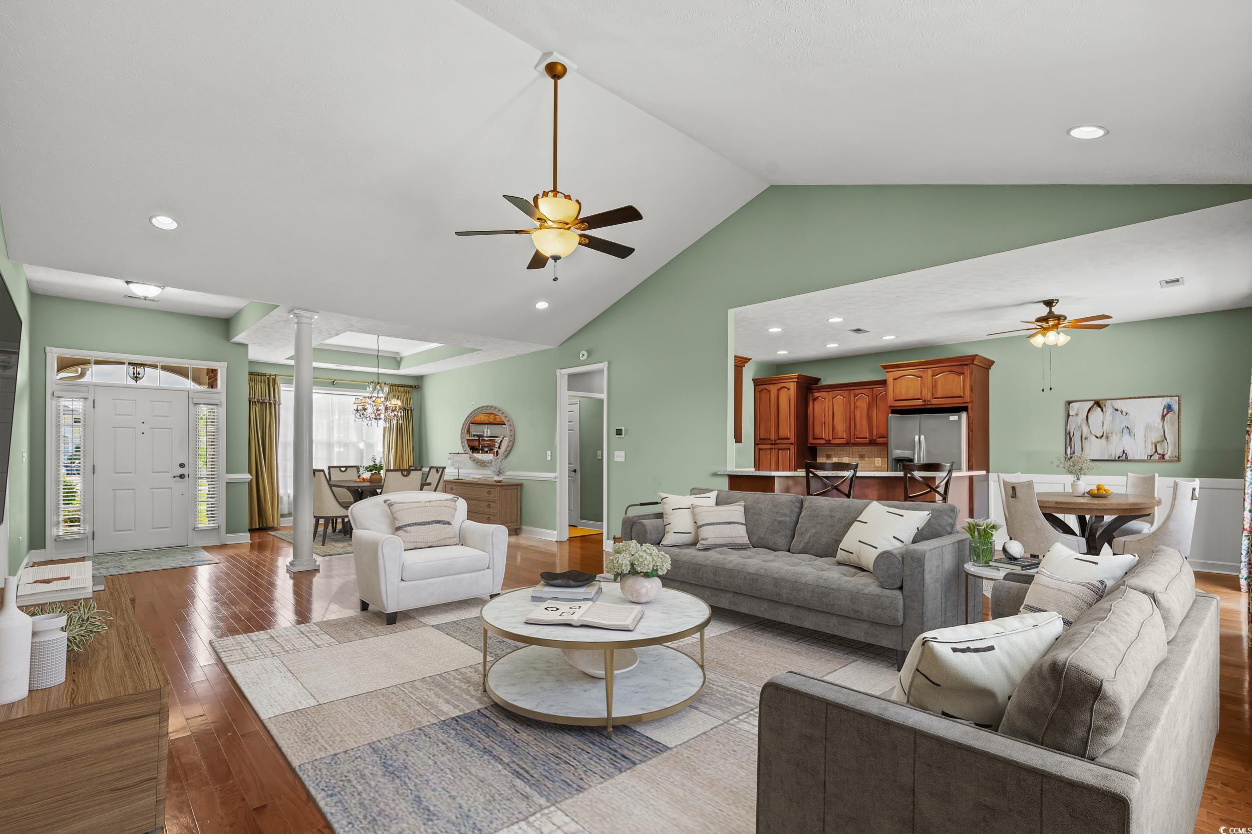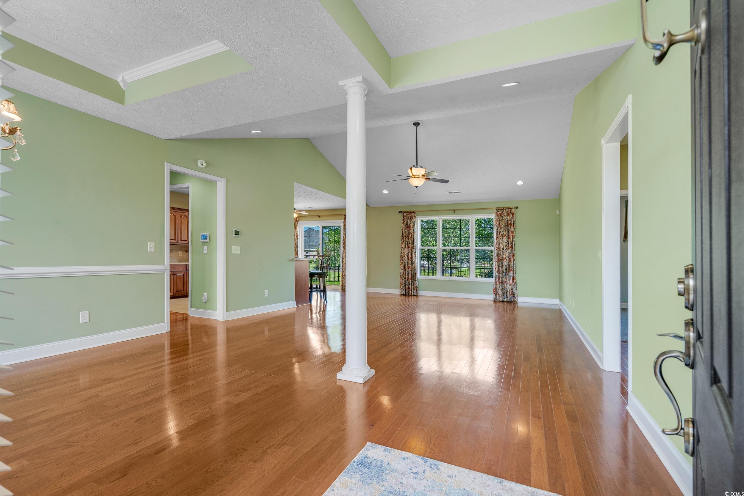 This custom-built 4-bedroom, 2-bathroom home is full of character and located on a quiet cul-de-sac in the highly sought-after Waterford Plantation community. Featuring vaulted ceilings and rich wood custom cabinetry, the home offers both warmth and spaciousness throughout. All bedrooms are generously sized, with the second bedroom functioning as a second master suite complete with trey ceilings, a walk-in closet, and a private ensuite bath. The fourth bedroom is a versatile bonus room that can easily serve as a theater, playroom, home office, or man cave. The oversized garage provides ample storage space, while the extra-wide driveway ensures plenty of guest parking. Outside, enjoy a beautifully landscaped backyard with established trees and plants, plus a relaxing patio that overlooks a fountained pondperfect for entertaining or unwinding. Waterford Plantation offers sidewalks throughout the neighborhood, a community pool, tennis courts, and is located in the award-winning Carolina Forest school district. Just minutes from shopping, dining, golf, Conway Medical Center, Coastal Carolina University, and only a 15-20-minute drive to the beach, this home truly has it all. Dont miss your chance to own this exceptional propertyschedule your showing today!
