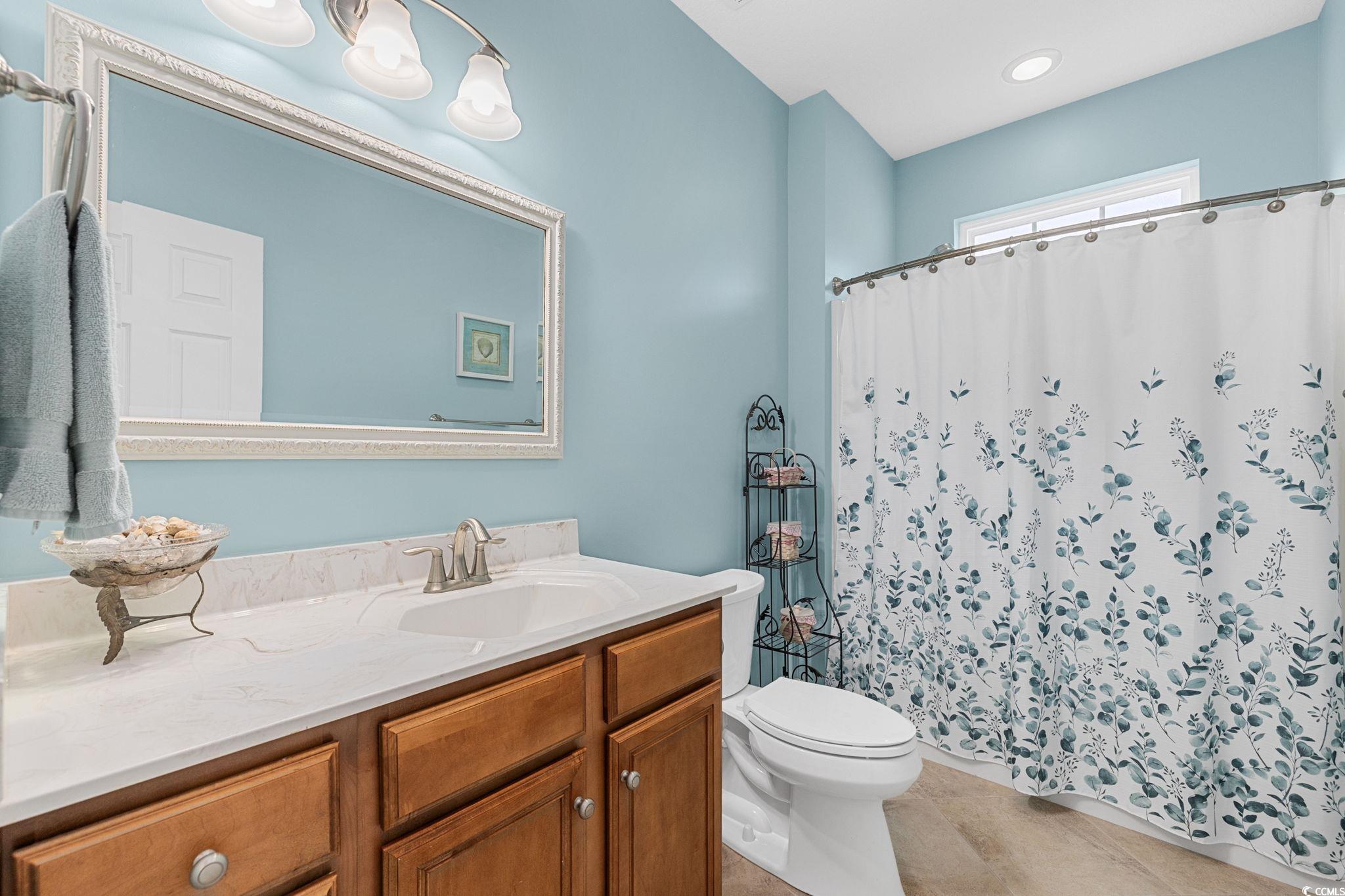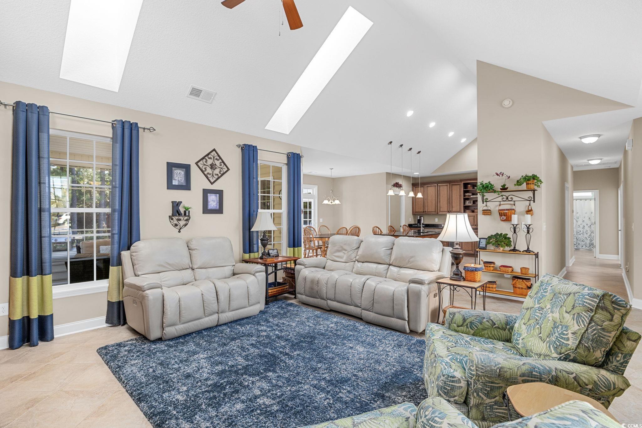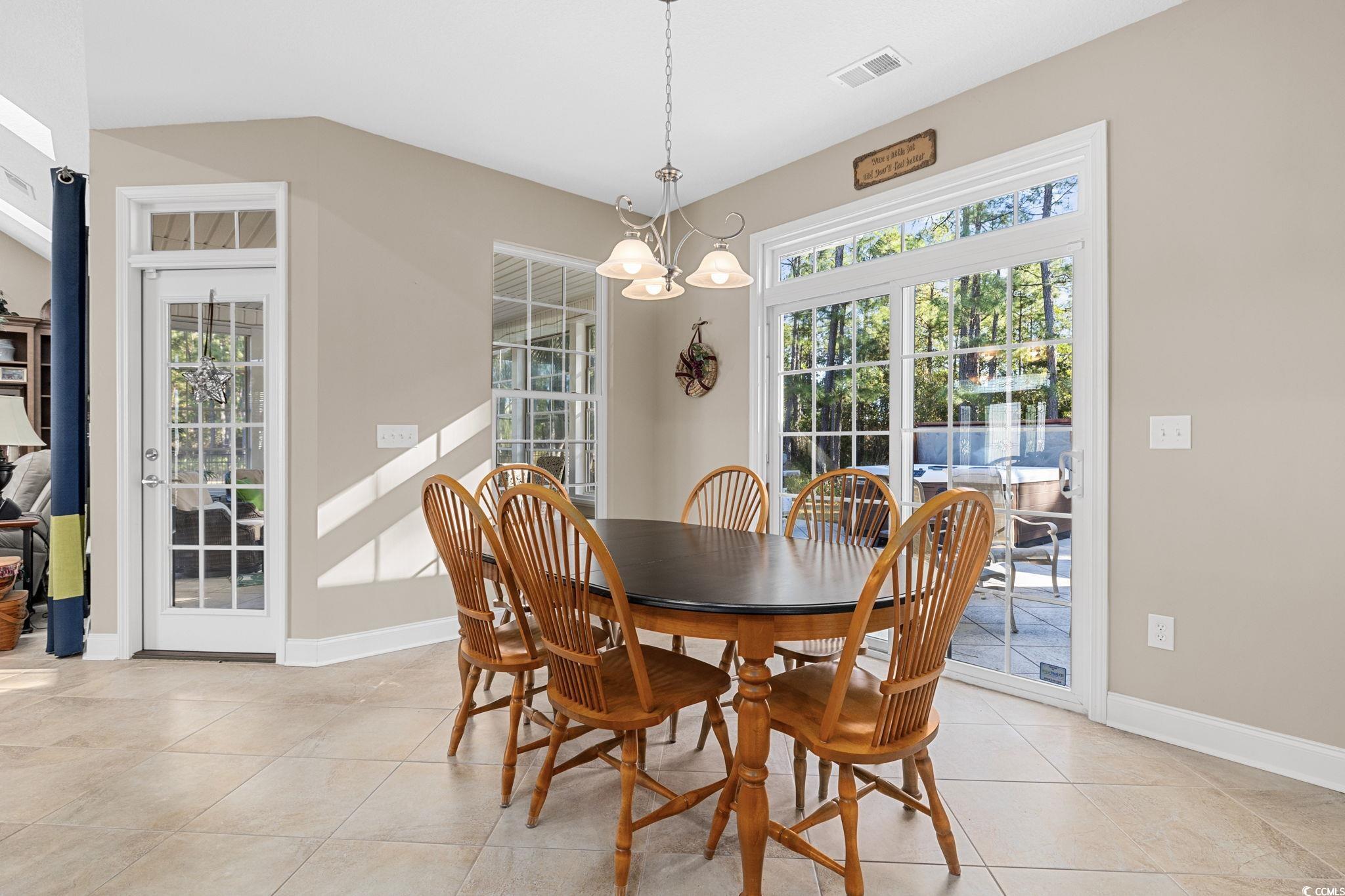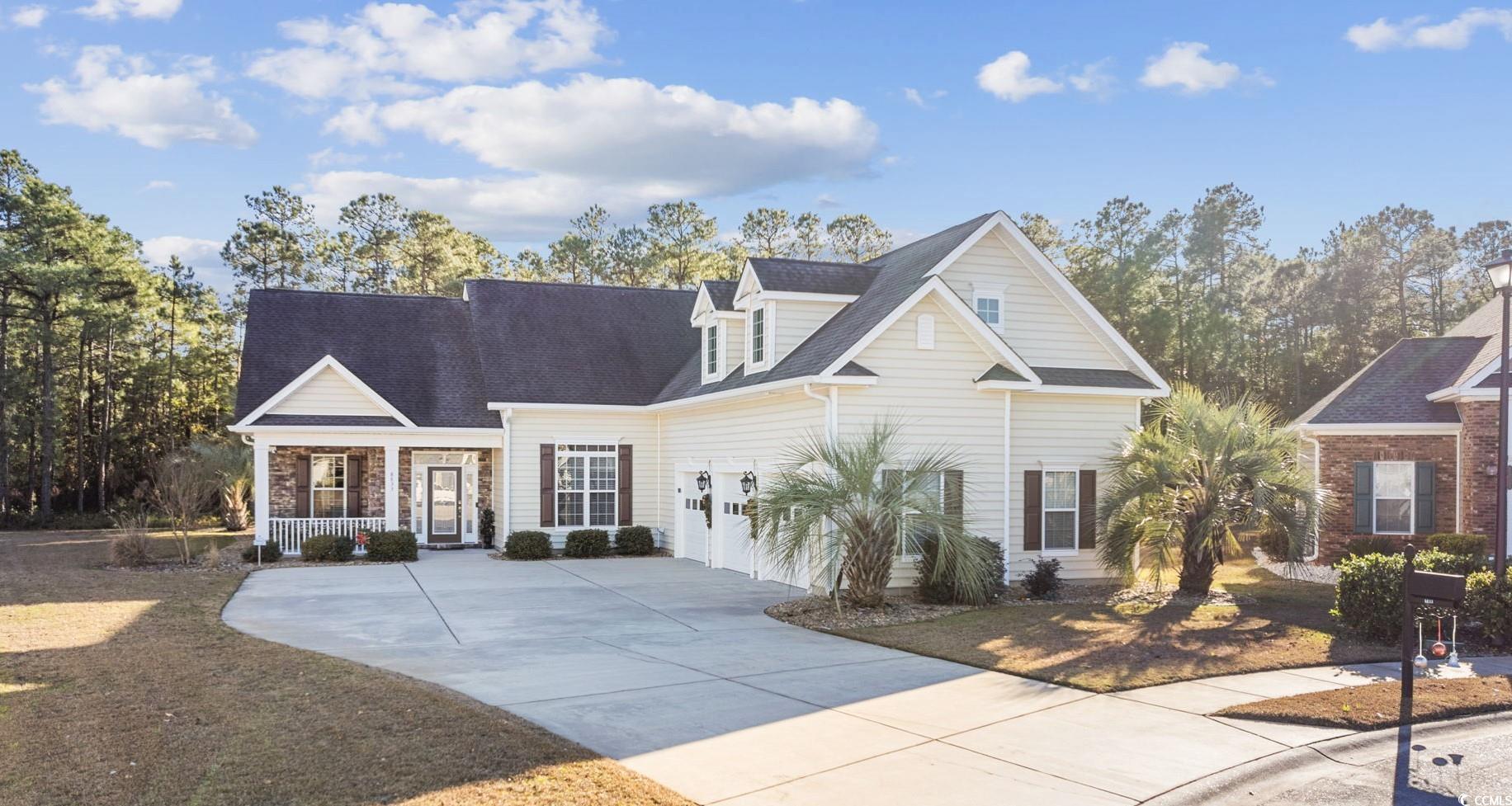 Welcome to Waterford Plantation in Carolina Forest! This lovely home features 4 bedrooms, 3 bathrooms, a sitting room, 3 car garage, E-Z Breeze screened porch, and a stunning patio with a relaxing nature view. As you step inside, you'll appreciate the bright and open floor plan. The living room and kitchen showcase vaulted ceilings and luxury tile flooring, adding a touch of style and character to the space. Skylights in the living room provide ample natural light. The kitchen is a dream with granite countertops, a spacious breakfast bar/workspace island, custom cabinets, pantry and an additional wall of custom cabinetry. The master suite is a true retreat, featuring a walk-in closet, tray ceiling, sitting area, double vanity, and an oversized custom tiled walk-in shower. All three first floor bedrooms have Luxury Vinyl Plank flooring. There are two doorways in the dining area, one leading to the screened porch and the other to the backyard patio. Relax and unwind in the comfortable (EZ Breeze) screened porch or enjoy the roomy hot tub and outdoor activities on the oversized patio with Texture-Krete Coating. Storage is plentiful in this home, with a spacious walk-in attic located off the 4th bedroom/bonus room, additional storage in the three-car garage, an attached storage area located near the patio and a backyard storage shed. Waterford Plantation offers fantastic amenities including a large community pool, club house, playground, basketball court, and tennis courts. Don't miss out on this amazing opportunity! Waterford Plantation is conveniently located in award-winning Carolina Forest school system, easy access to great restaurants, plenty of shopping, medical services, multiple golf courses and best of all 8.7 miles to the beach!