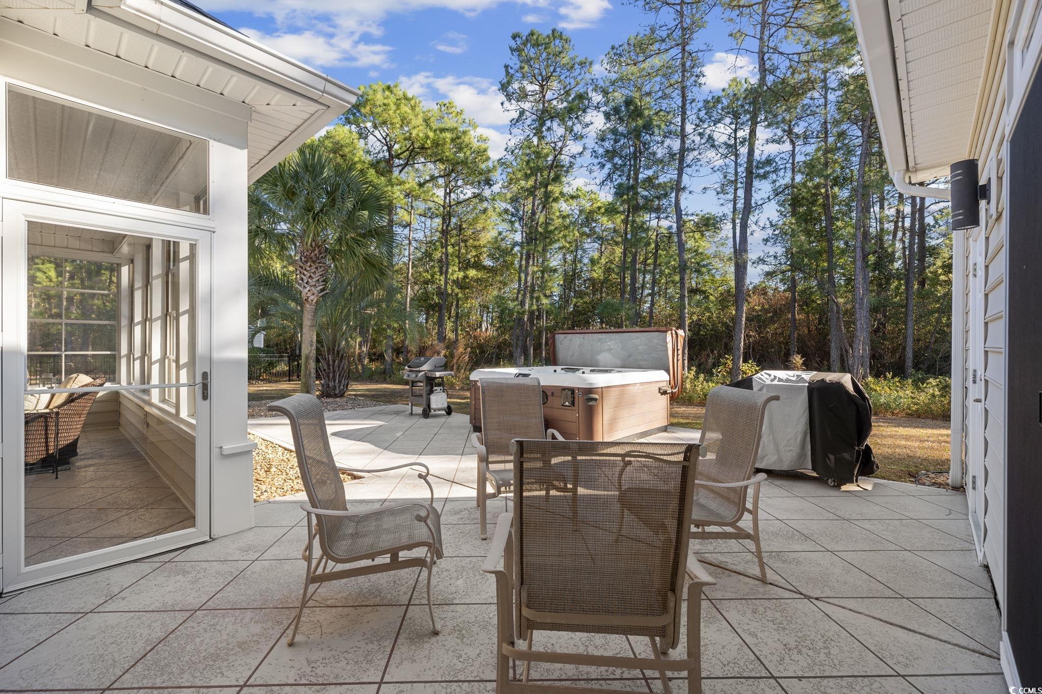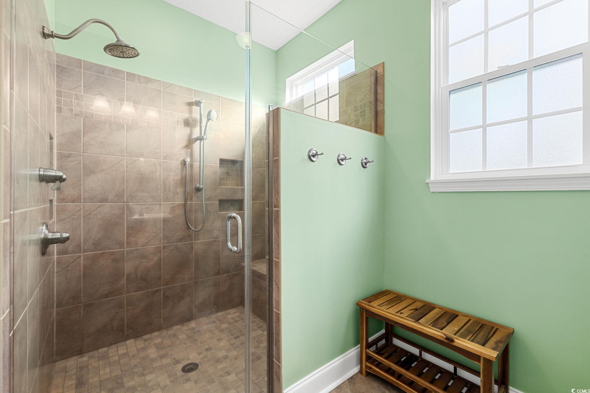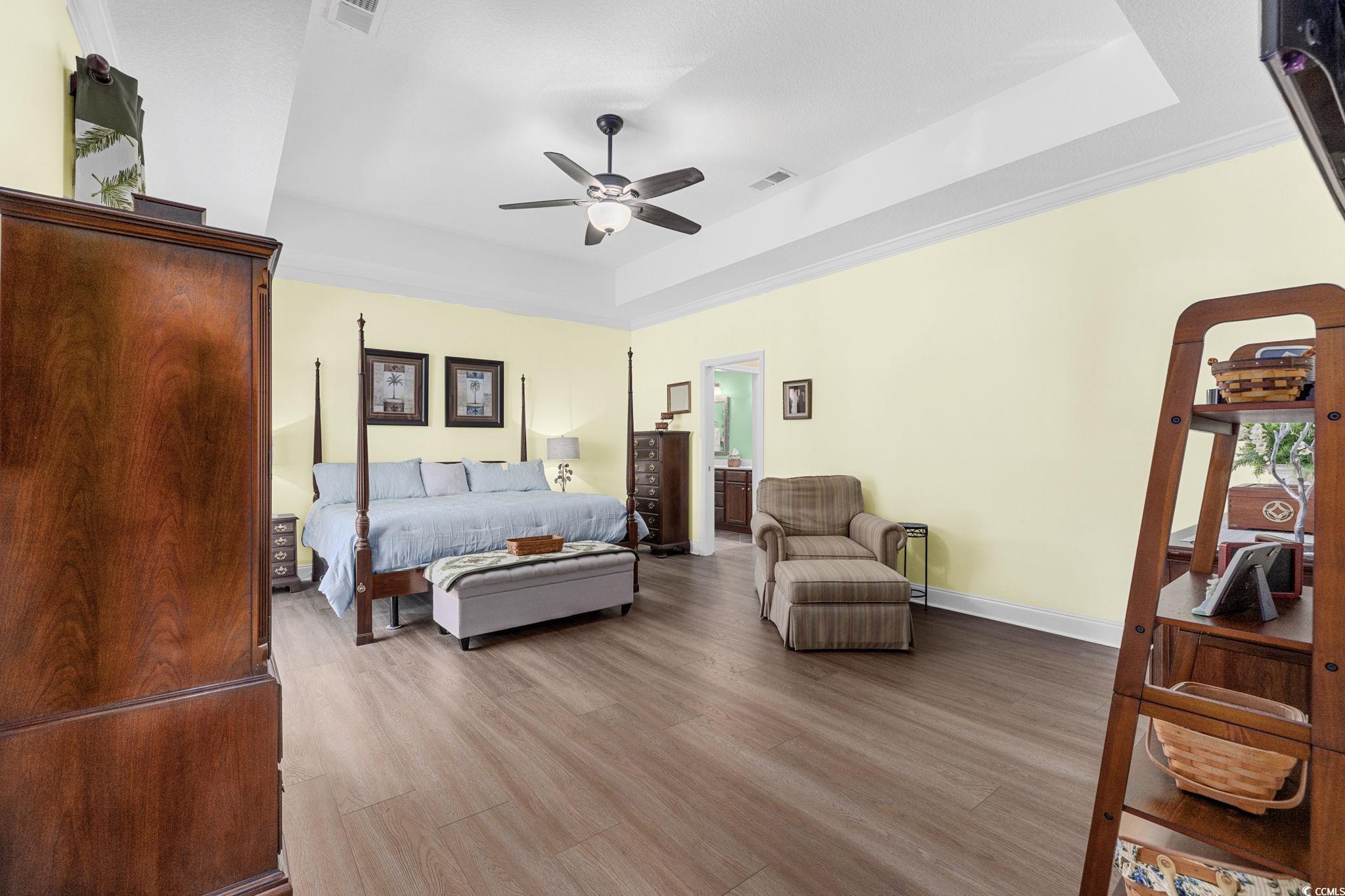 Welcome to Waterford Plantation in Carolina Forest! This lovely home features 4 bedrooms, 3 bathrooms, a sitting room, 3 car garage, E-Z Breeze screened porch, and a stunning patio with a relaxing nature view. As you step inside, you'll appreciate the bright and open floor plan. The living room and kitchen showcase vaulted ceilings and luxury tile flooring, adding a touch of style and character to the space. Skylights in the living room provide ample natural light. The kitchen is a dream with granite countertops, a spacious breakfast bar/workspace island, custom cabinets, pantry and an additional wall of custom cabinetry. The master suite is a true retreat, featuring a walk-in closet, tray ceiling, sitting area, double vanity, and an oversized custom tiled walk-in shower. All three first floor bedrooms have Luxury Vinyl Plank flooring. There are two doorways in the dining area, one leading to the screened porch and the other to the backyard patio. Relax and unwind in the comfortable (EZ Breeze) screened porch or enjoy the roomy hot tub and outdoor activities on the oversized patio with Texture-Krete Coating. Storage is plentiful in this home, with a spacious walk-in attic located off the 4th bedroom/bonus room, additional storage in the three-car garage, an attached storage area located near the patio and a backyard storage shed. Waterford Plantation offers fantastic amenities including a large community pool, club house, playground, basketball court, and tennis courts. Don't miss out on this amazing opportunity! Waterford Plantation is conveniently located in award-winning Carolina Forest school system, easy access to great restaurants, plenty of shopping, medical services, multiple golf courses and best of all 8.7 miles to the beach!