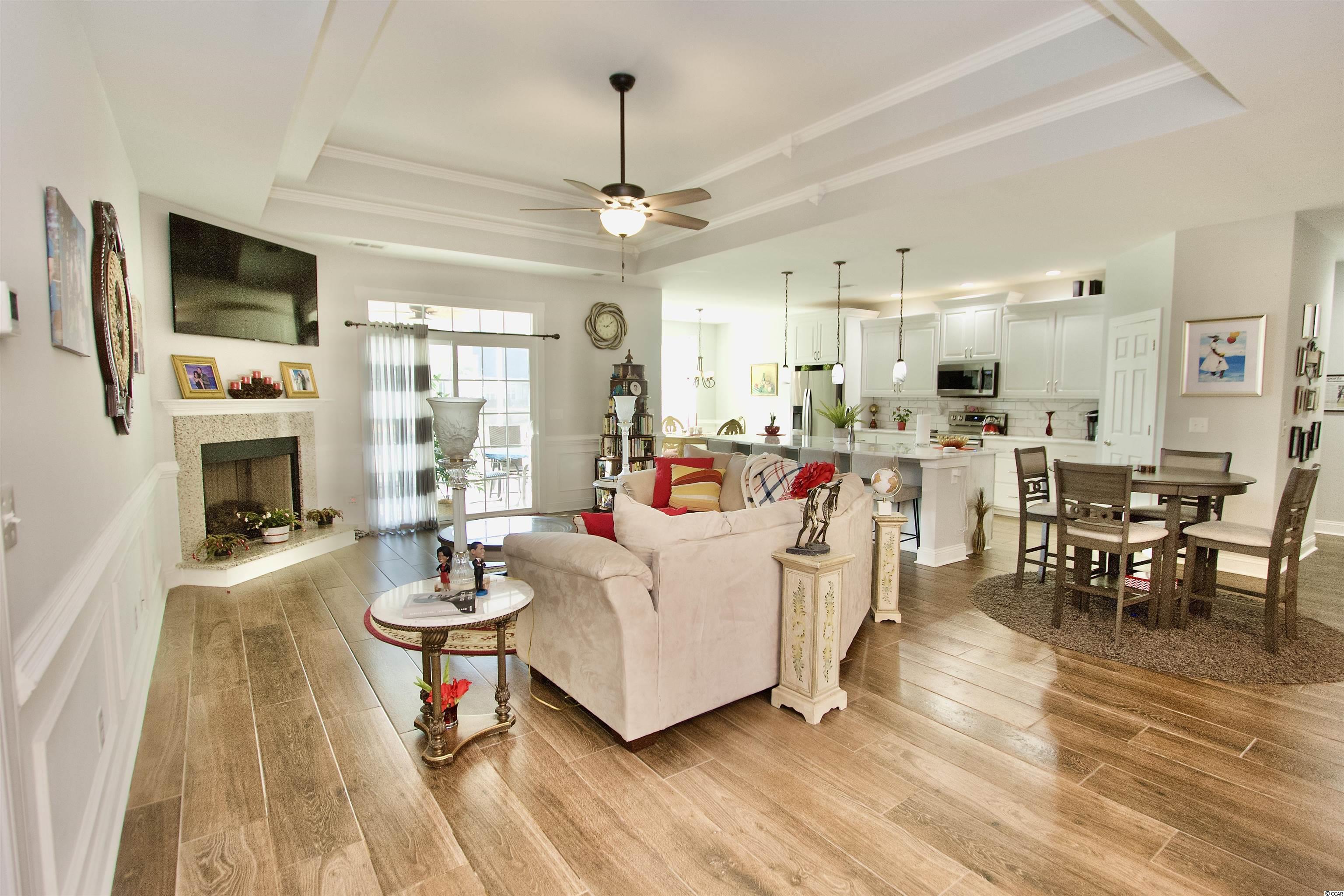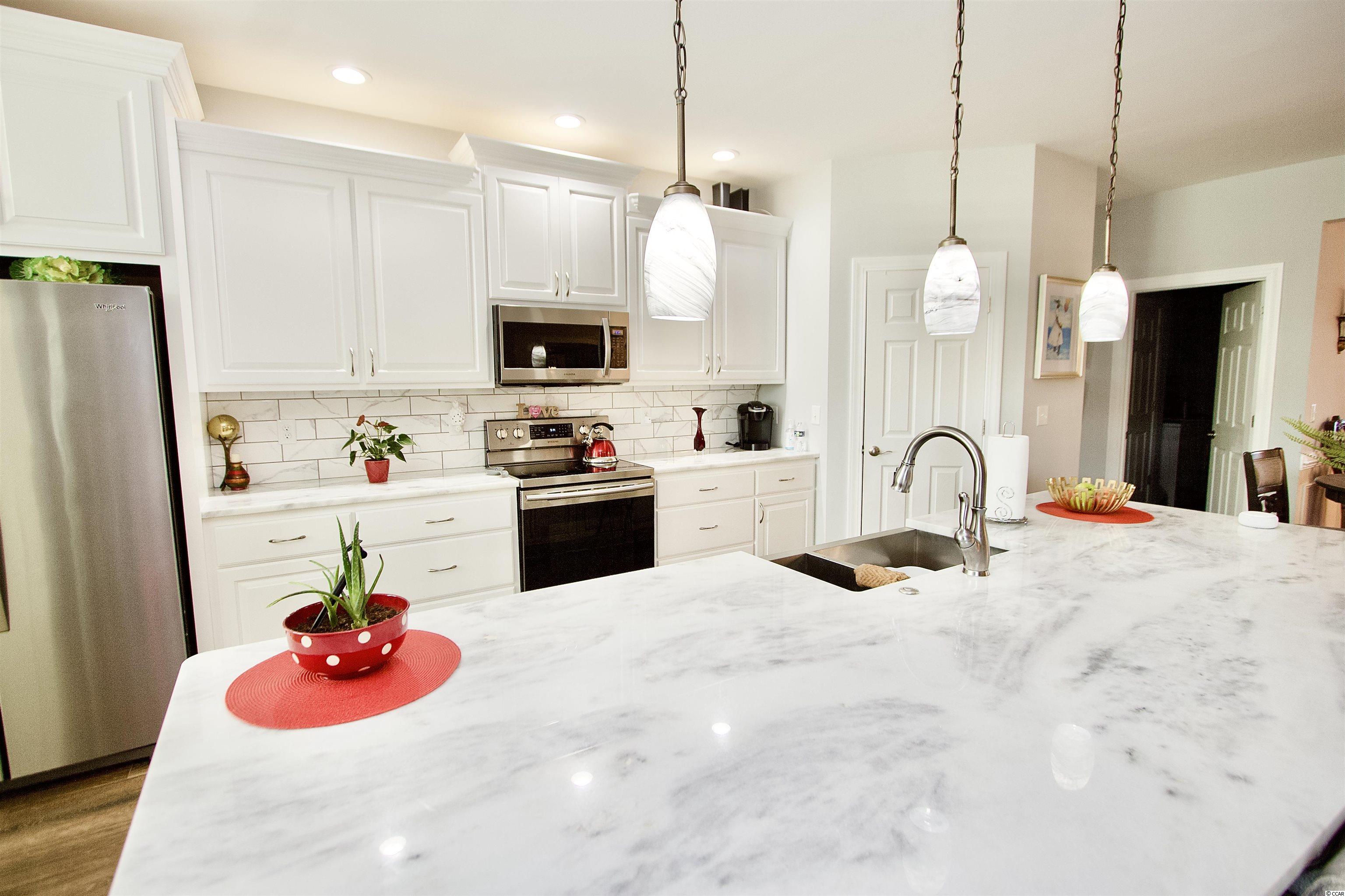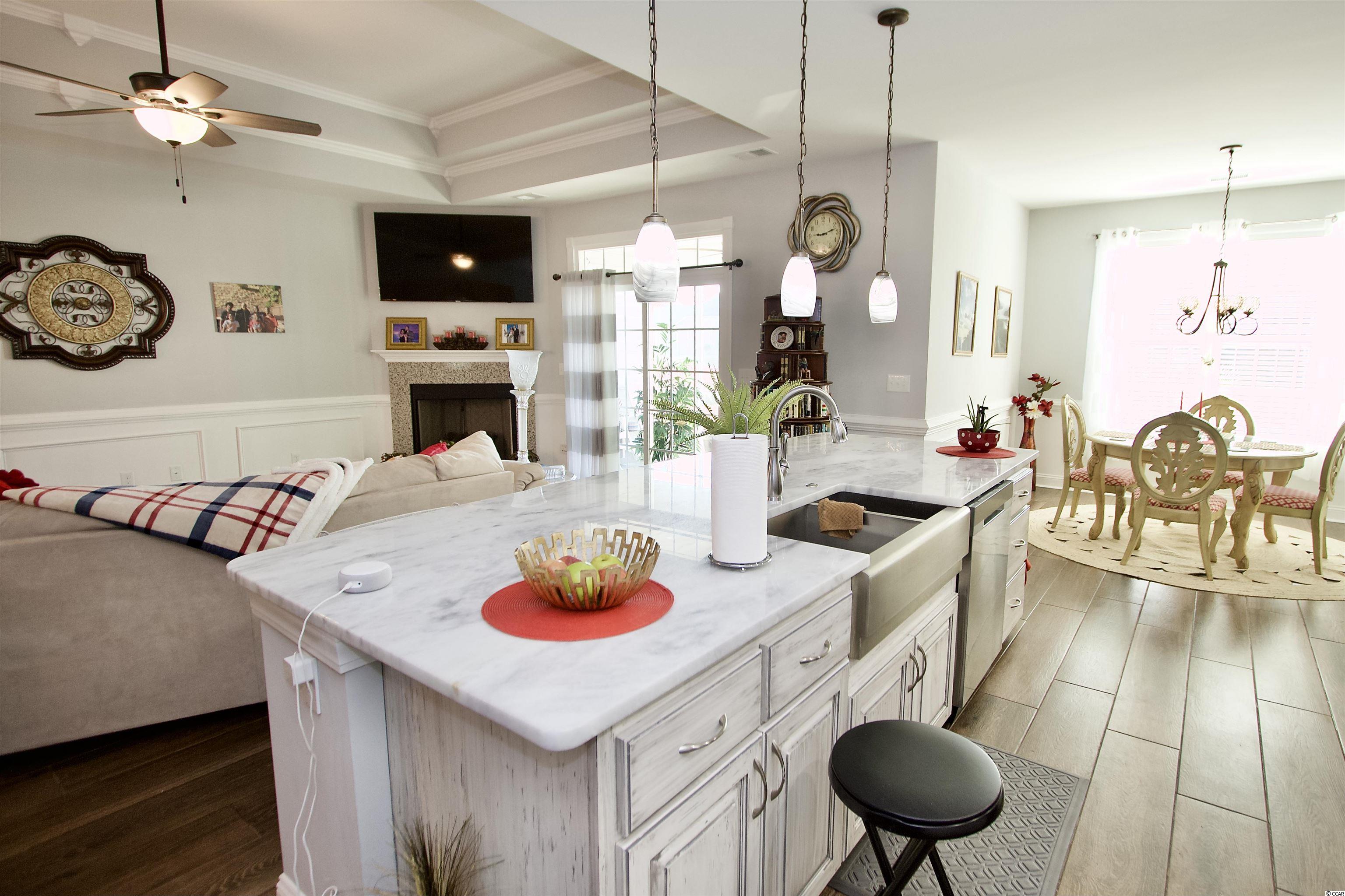 Impeccable 4 bedroom 3 bathroom home in the highly sought after community of Waterford Plantation. This home was built in 2020 by one of the area's premier builders and no expense was spared in the creation of this truly unique and elegant home which features ceramic tile flooring throughout and a carpeted bedroom upstairs. Walk through the foyer and be amazed with the well-thought floor plan which includes a very large open plan living room complete with tray ceiling and fireplace and formal dining room. The kitchen has marble countertops with marble backsplash along with stainless steel appliances, work island that doubles as a breakfast bar and a significant amount of cabinetry perfect for storing your bakeware and kitchen tools! The large master bedroom on the main floor has tray ceilings, its own ensuite bathroom with marble countertops on the double sink vanity, garden tub, shower, water closet/toilet room and an expansive and true walk-in closet. Upstairs is another full bedroom with closets and its own full bathroom. The two bedrooms on the other side of the home share a bathroom and the home has a reasonably sized laundry room and extended double garage that can fit two full size SUVs and a pool table! The screened porch at the rear of the home overlooks the pond and it's the perfect spot for your morning cup of coffee and watching the sunrise. This home is being offered furnished with the right offer and is close to all local travel connections (501/Carolina Forest/Myrtle Ridge to 544) as well as a 20 minute ride to the beach and all of the major attractions the Myrtle Beach area has to offer - schedule your showing today! You won't want to miss out on this gorgeous home.
