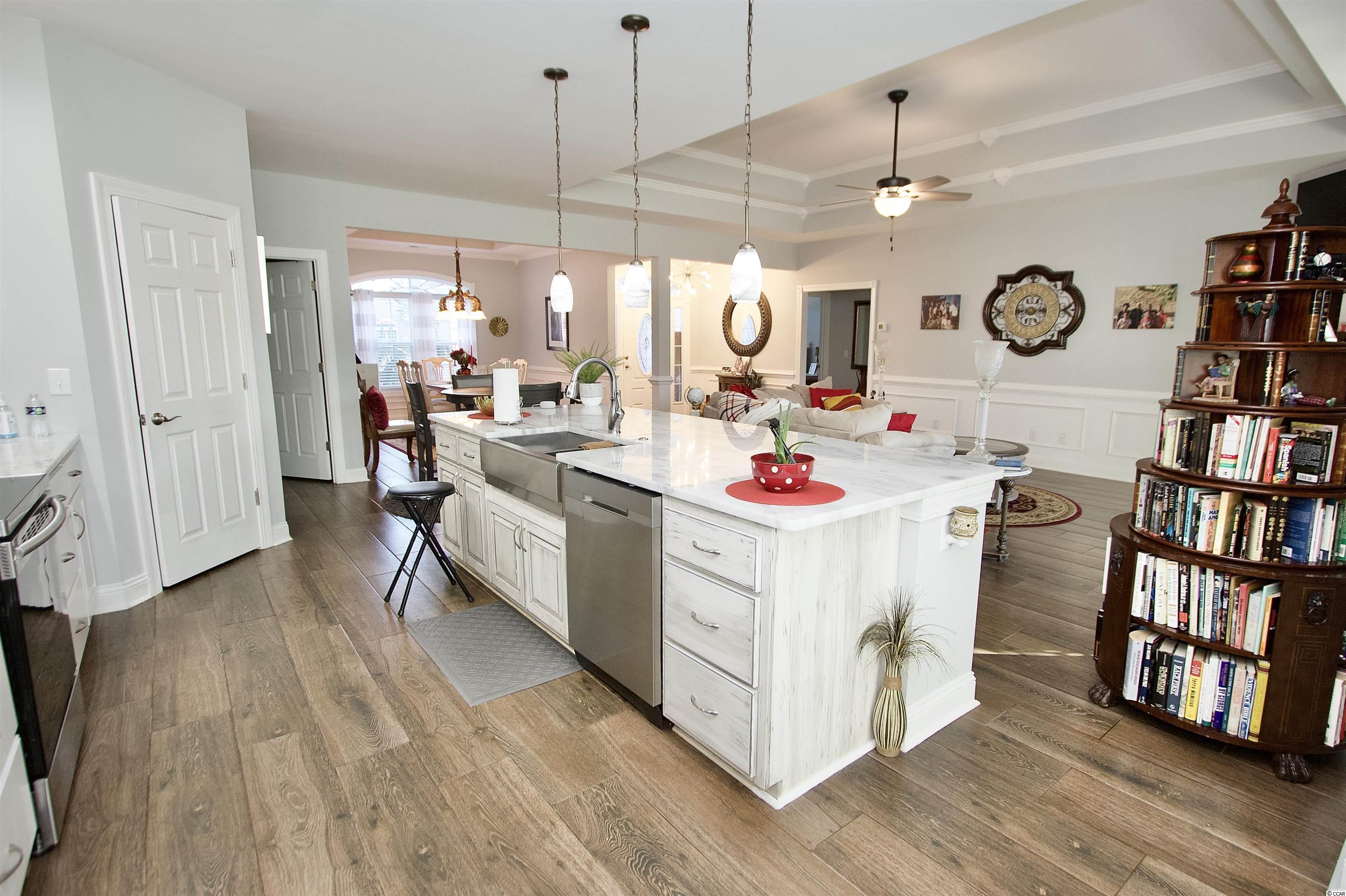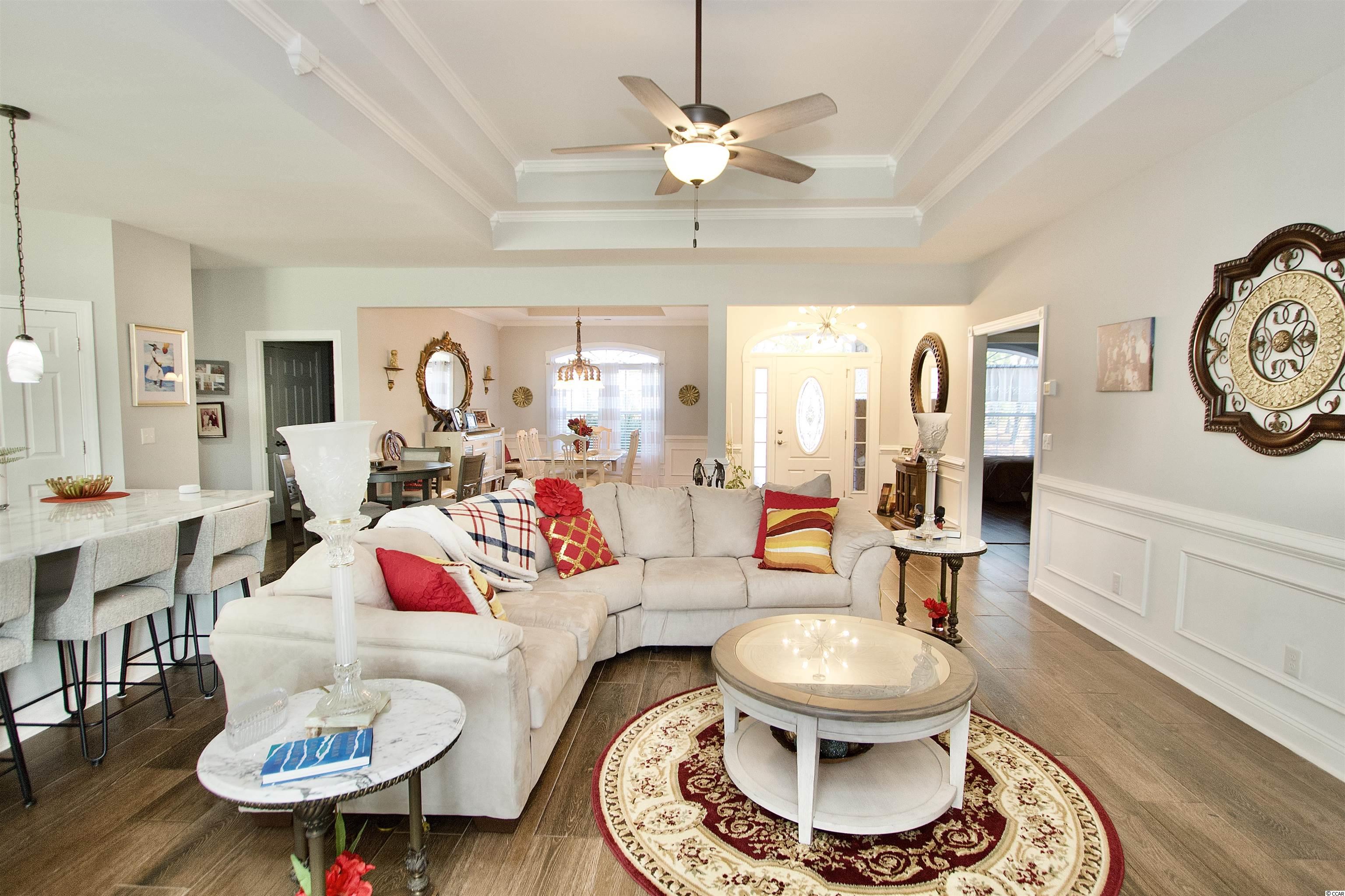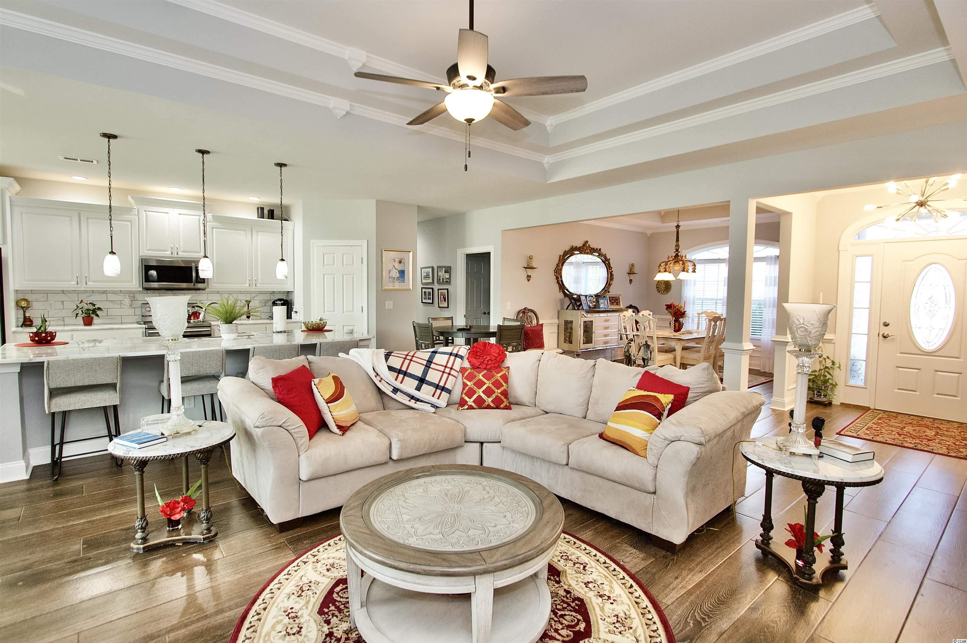 Impeccable 4 bedroom 3 bathroom home in the highly sought after community of Waterford Plantation. This home was built in 2020 by one of the area's premier builders and no expense was spared in the creation of this truly unique and elegant home which features ceramic tile flooring throughout and a carpeted bedroom upstairs. Walk through the foyer and be amazed with the well-thought floor plan which includes a very large open plan living room complete with tray ceiling and fireplace and formal dining room. The kitchen has marble countertops with marble backsplash along with stainless steel appliances, work island that doubles as a breakfast bar and a significant amount of cabinetry perfect for storing your bakeware and kitchen tools! The large master bedroom on the main floor has tray ceilings, its own ensuite bathroom with marble countertops on the double sink vanity, garden tub, shower, water closet/toilet room and an expansive and true walk-in closet. Upstairs is another full bedroom with closets and its own full bathroom. The two bedrooms on the other side of the home share a bathroom and the home has a reasonably sized laundry room and extended double garage that can fit two full size SUVs and a pool table! The screened porch at the rear of the home overlooks the pond and it's the perfect spot for your morning cup of coffee and watching the sunrise. This home is being offered furnished with the right offer and is close to all local travel connections (501/Carolina Forest/Myrtle Ridge to 544) as well as a 20 minute ride to the beach and all of the major attractions the Myrtle Beach area has to offer - schedule your showing today! You won't want to miss out on this gorgeous home.