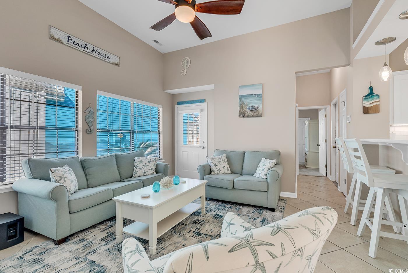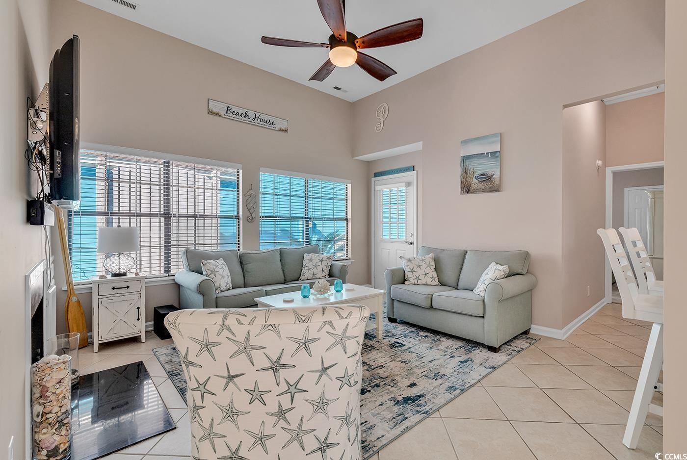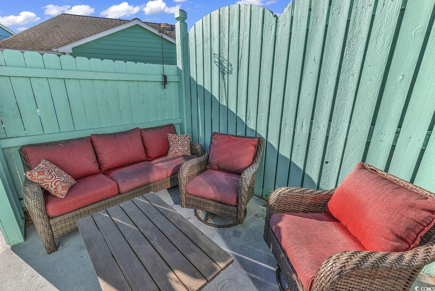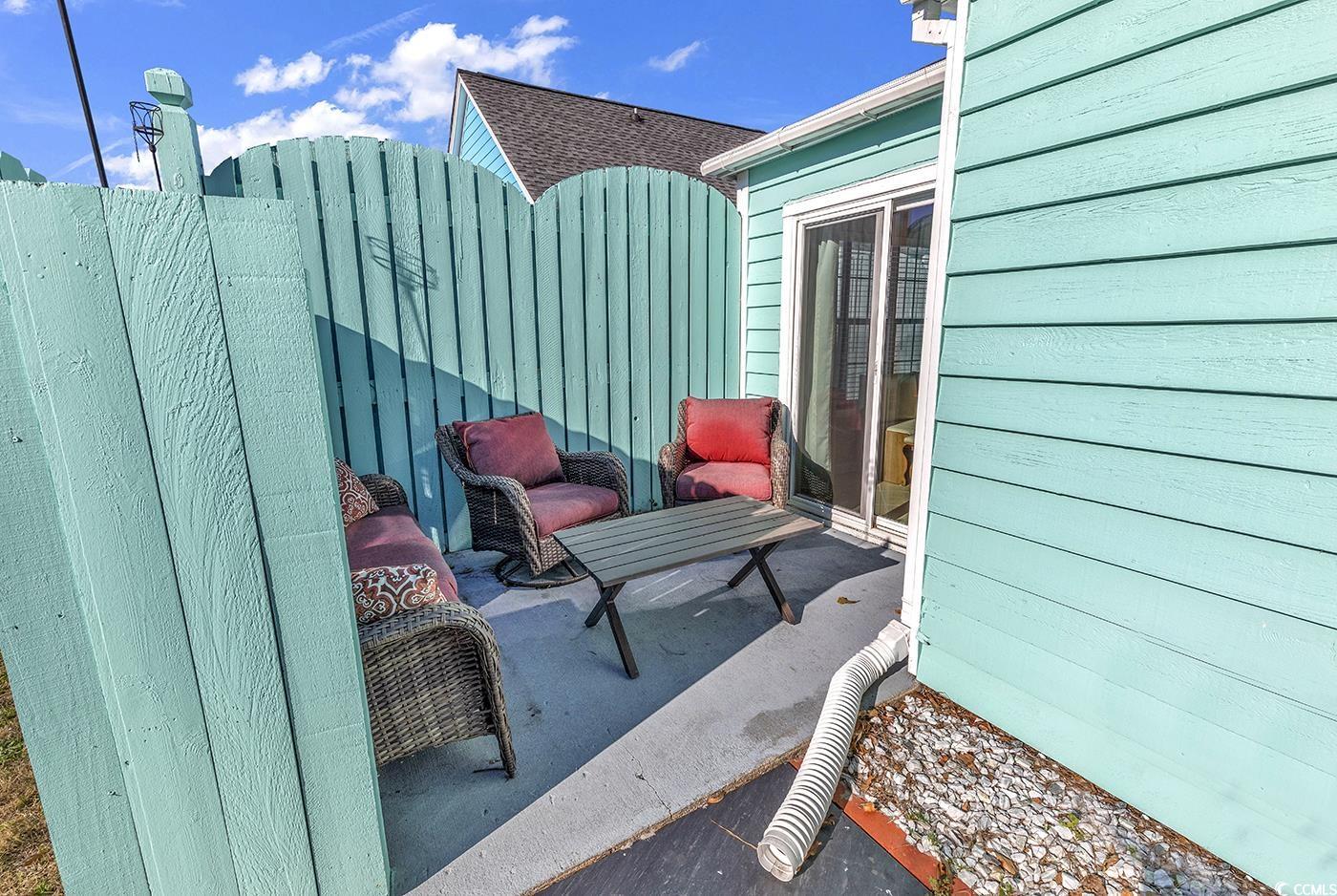 Looking for the perfect coastal retreat that offers privacy and is a golf cart ride to the beach AND intracoastal waterway? Come and see this charming one-story patio home which features 2 Bedrooms, 2 Full Baths, fireplace, and a flex room. The owners currently use this space as a breakfast nook. This home sits on a large lot at the end of a cul-de-sac and there is lots of room for parking. You will love the tall ceilings, ample sunlight and welcoming feel. The kitchen is updated with quartz countertops, beautiful lighting and stainless steel appliances. Relax and read a book on the private patio. Store all of your beach toys as well as your golf cart in the one-car garage. This home has recently been painted inside and outside, new carpeting installed in the bedrooms, new water heater, new outdoor lighting as well as solar lights, landscaping rocks, new TREK decking pad installed in front of the house to rinse your sandy toys and a new WIFI Thermostat so you can control the temperature from anywhere. Heat pump was just serviced in the fall. Owners took pride in their home and it shows. This is the perfect getaway home or primary residence. Quiet small neighborhood with a community pool. Close to Main Street, Barefoot Landing and all major attractions, stores and restaurants in North Myrtle Beach. Don't miss out on this coastal gem!