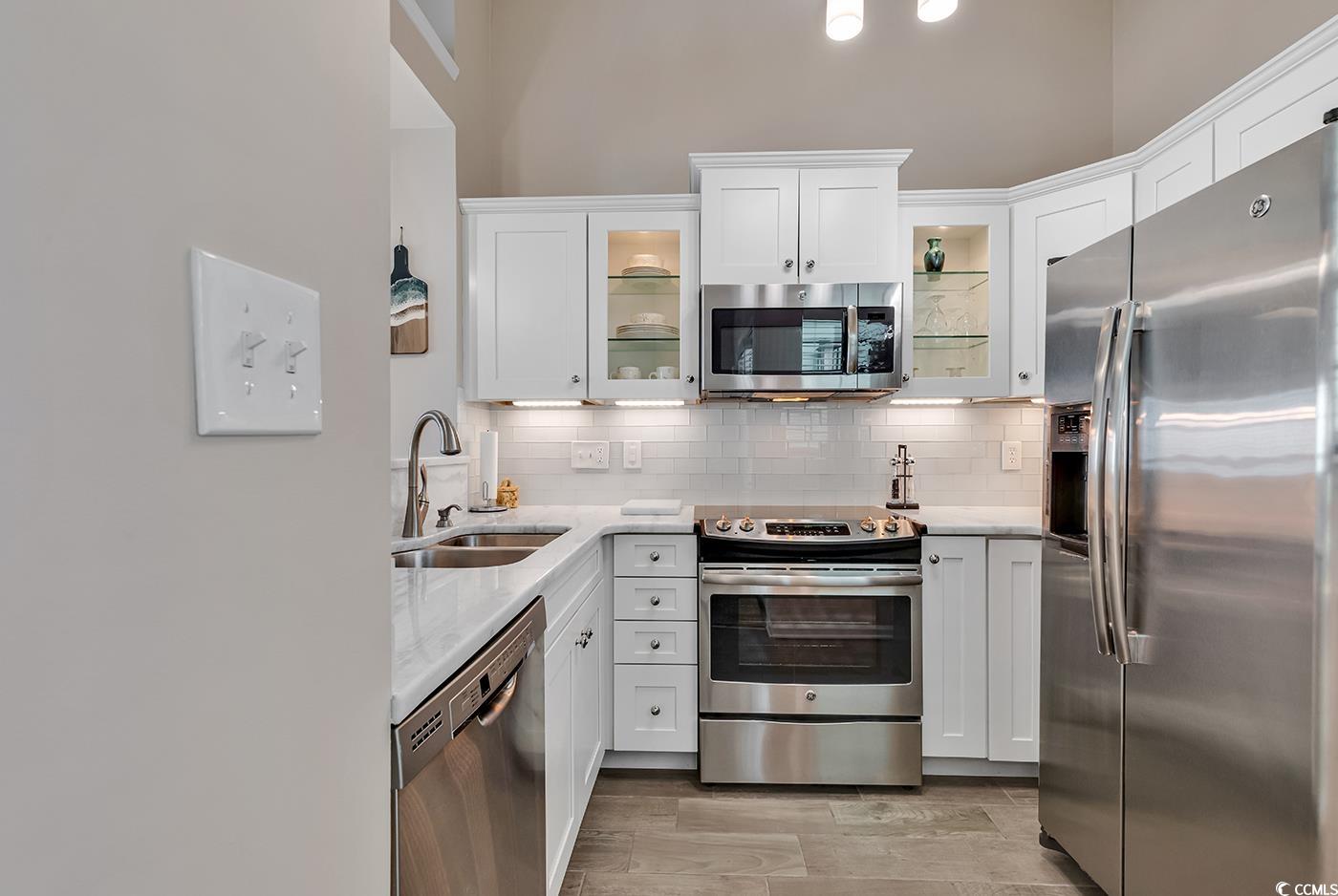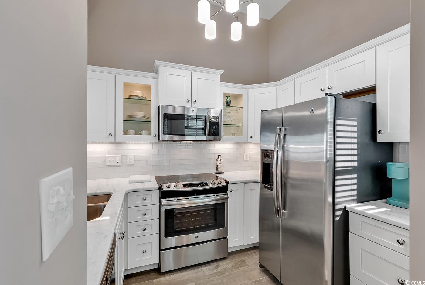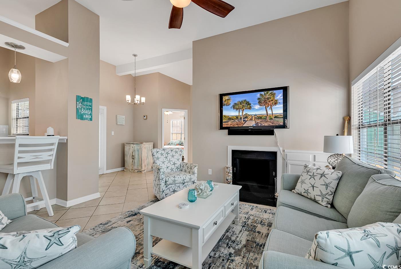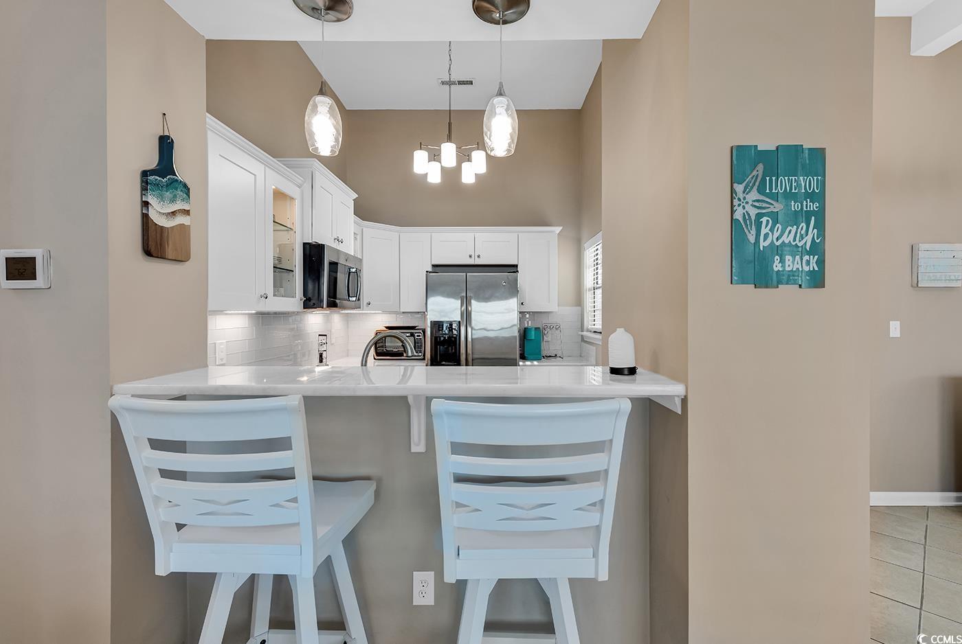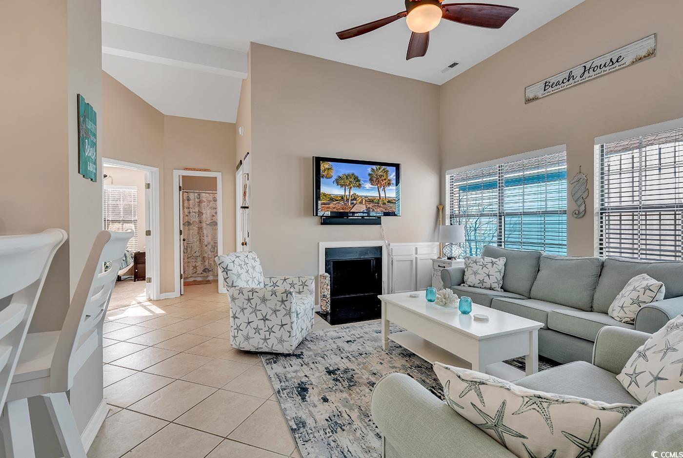 Looking for the perfect coastal retreat that offers privacy and is a golf cart ride to the beach AND intracoastal waterway? Come and see this charming one-story patio home which features 2 Bedrooms, 2 Full Baths, fireplace, and a flex room. The owners currently use this space as a breakfast nook. This home sits on a large lot at the end of a cul-de-sac and there is lots of room for parking. You will love the tall ceilings, ample sunlight and welcoming feel. The kitchen is updated with quartz countertops, beautiful lighting and stainless steel appliances. Relax and read a book on the private patio. Store all of your beach toys as well as your golf cart in the one-car garage. This home has recently been painted inside and outside, new carpeting installed in the bedrooms, new water heater, new outdoor lighting as well as solar lights, landscaping rocks, new TREK decking pad installed in front of the house to rinse your sandy toys and a new WIFI Thermostat so you can control the temperature from anywhere. Heat pump was just serviced in the fall. Owners took pride in their home and it shows. This is the perfect getaway home or primary residence. Quiet small neighborhood with a community pool. Close to Main Street, Barefoot Landing and all major attractions, stores and restaurants in North Myrtle Beach. Don't miss out on this coastal gem!