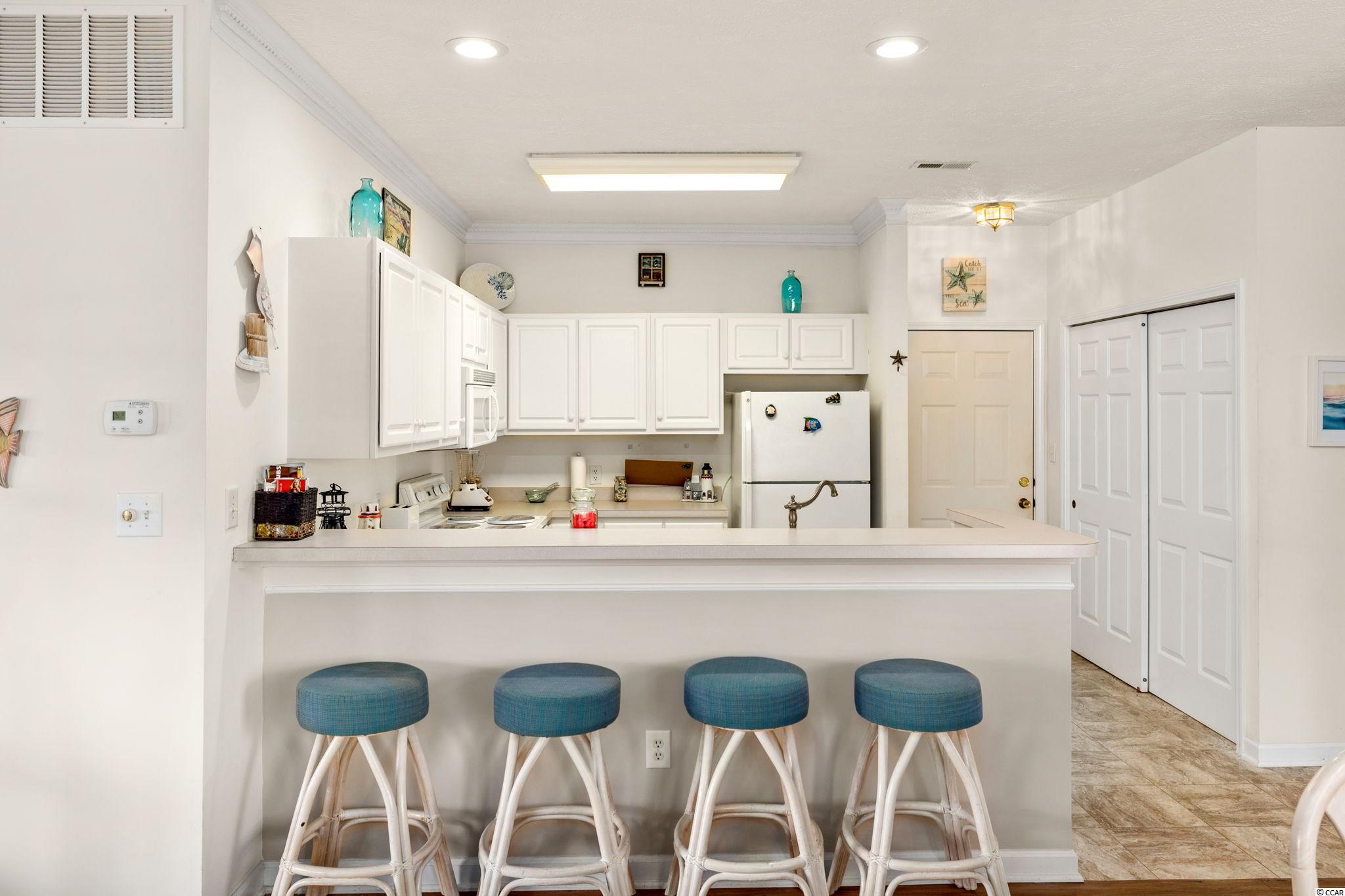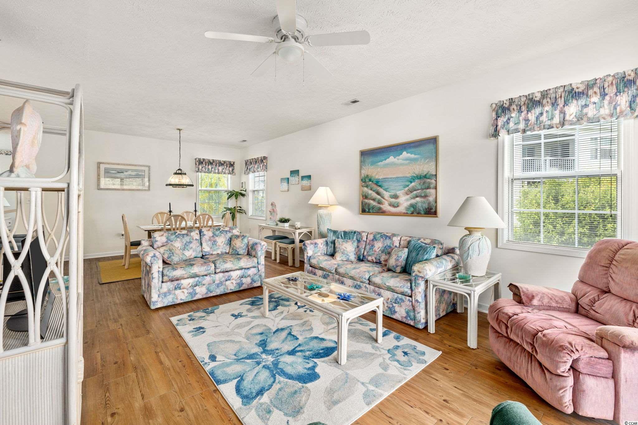 What a fantastic location for your new getaway! This is a beautiful bright and airy 2 bedroom end unit condo that features an additional flex space that is currently being used for a 3rd bedroom. Each room offers that cool beach feel. It comes fully furnished, and 100% turn key ready to go! What better location to be in with a Starbucks walking distance, amazing dining and shopping a short golf cart ride away. Absolutely perfect for you primary residence, second home or even investment as you can rent this short term or long term. You will know the moment you walk in, it has been wall taken care of. This condo has a newer HVAC. This split bedroom open floor plan flows nicely from the kitchen, living room and right out to your private balcony. This beautiful quiet community offers so much. Schedule your showing today!