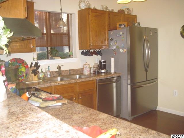 2 Bedroom, 2 Bath ground floor end unit in beautifully Maintained community of Indian Wells. Overlooking Indian Wells Golf Course. Wonderful community pool. Wood and Tile Floors throughout unit. Stainless steel appliances. Sit on the converted all weather Porch and enjoy the Sun Rise over the Golf Coarse. This unit offers comfortable living in a small complex. Close to Grocery Stores and shopping. Easy access into complex and approximate 2.5 miles to the Garden City Pier. All Measurement are approximate and the responsibility of the buyers to verify.