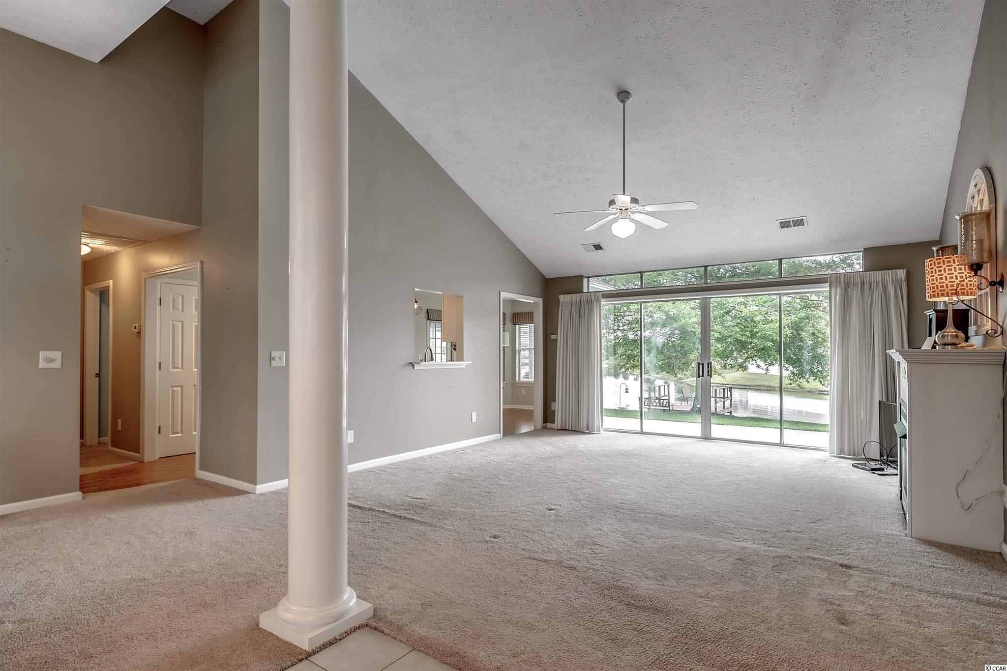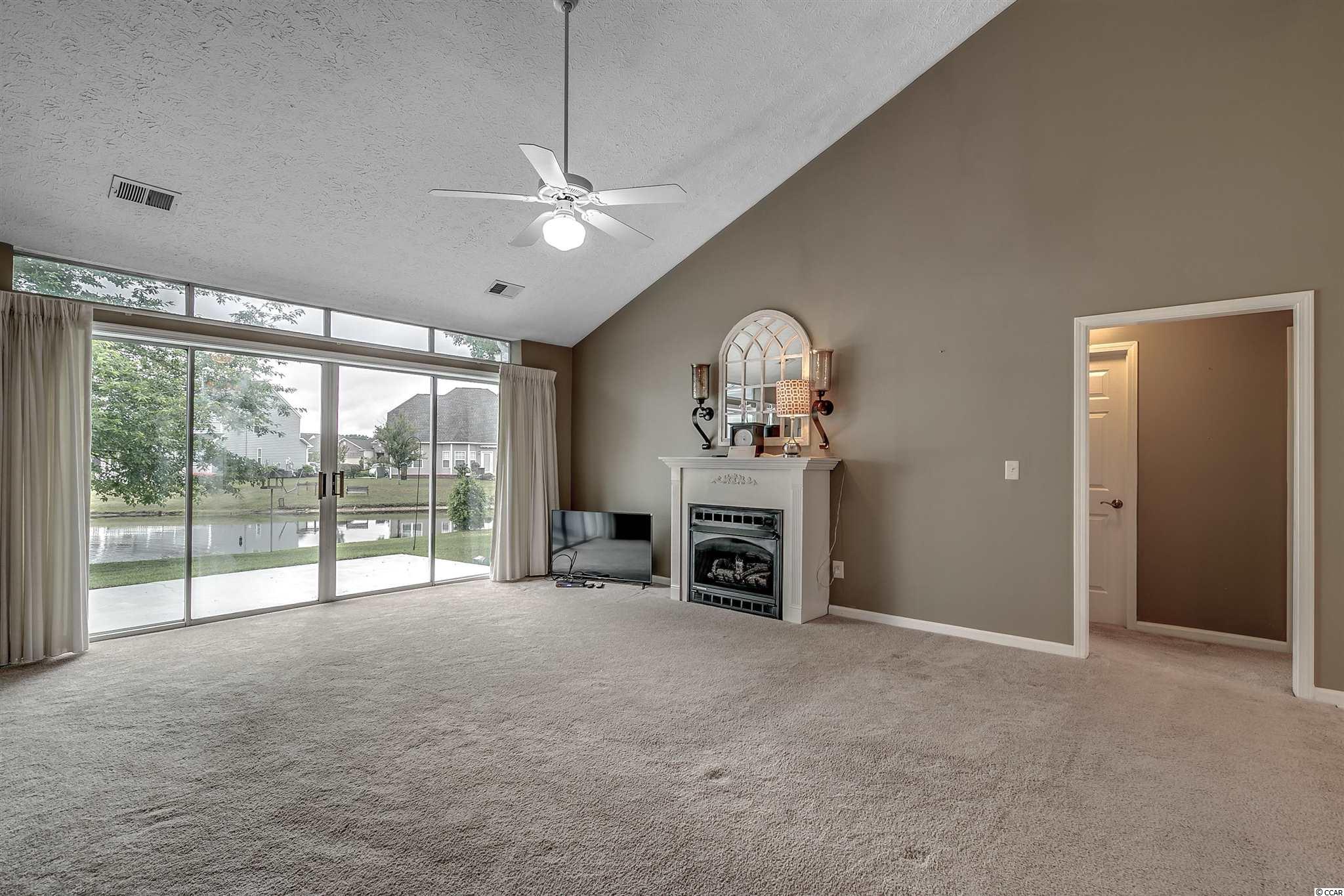 Its all about the view! This beautiful home is situated on a very large lake with views from just about every room. Upon entering this home you are welcomed with an open floor plan as your eyes gaze upon the lake. Living room has vaulted ceilings, fireplace with sliding doors out to the patio. Spacious kitchen with granite countertops, off of the kitchen is a big screened in room. Step outside to the backyard and sit on the dock while relaxing with your favorite beverage. There is a community pool which is separate from the monthly HOA.