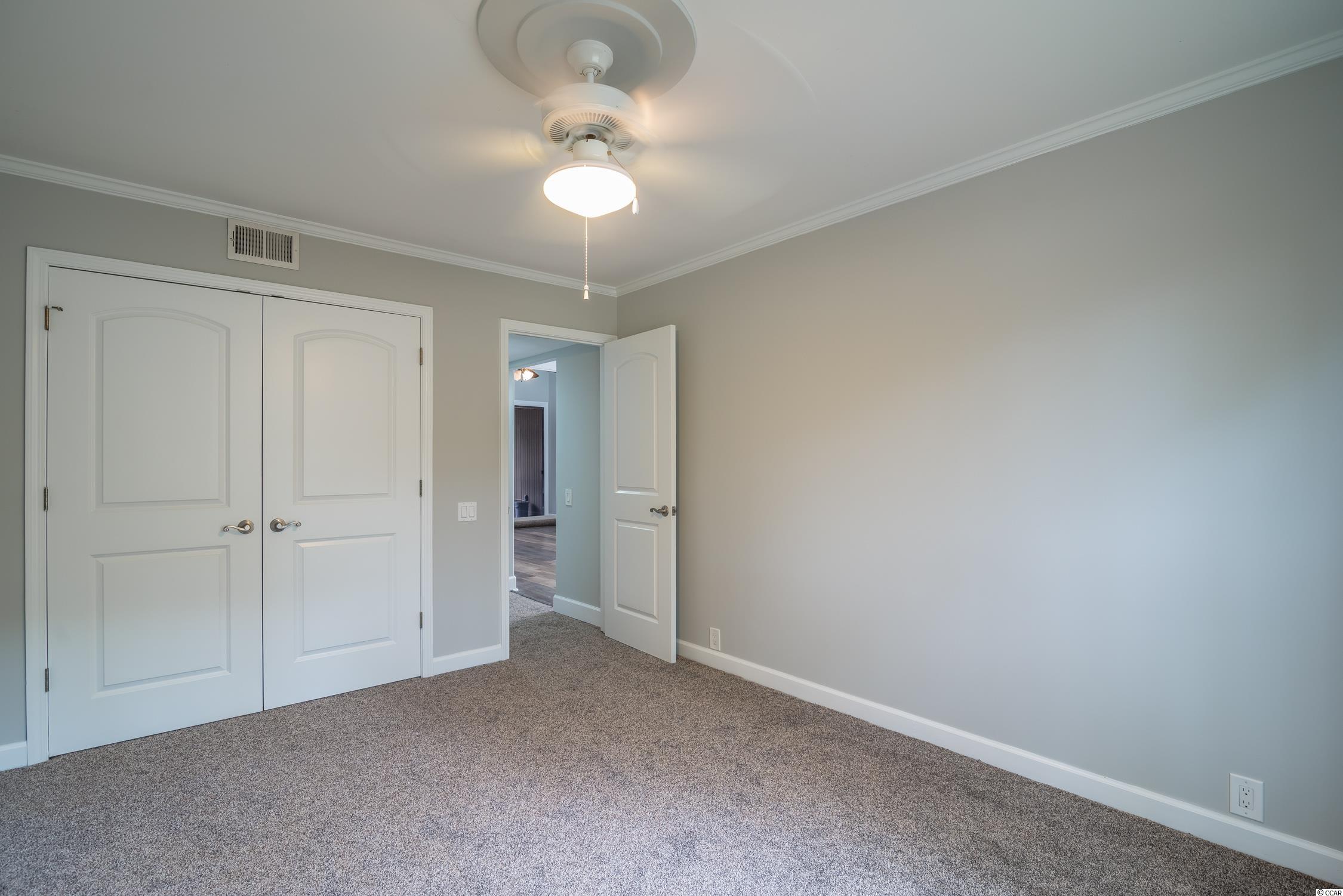 Two bedroom one bath Villa with recent renovations. Fresh paint throughout and new floors. Tucked under live oaks this villa has front and rear courtyards for privacy, covered rear porch , and storage throughout. Wedgefield Plantation offers golf course amenities and properties owners enjoy Black River boat landing.